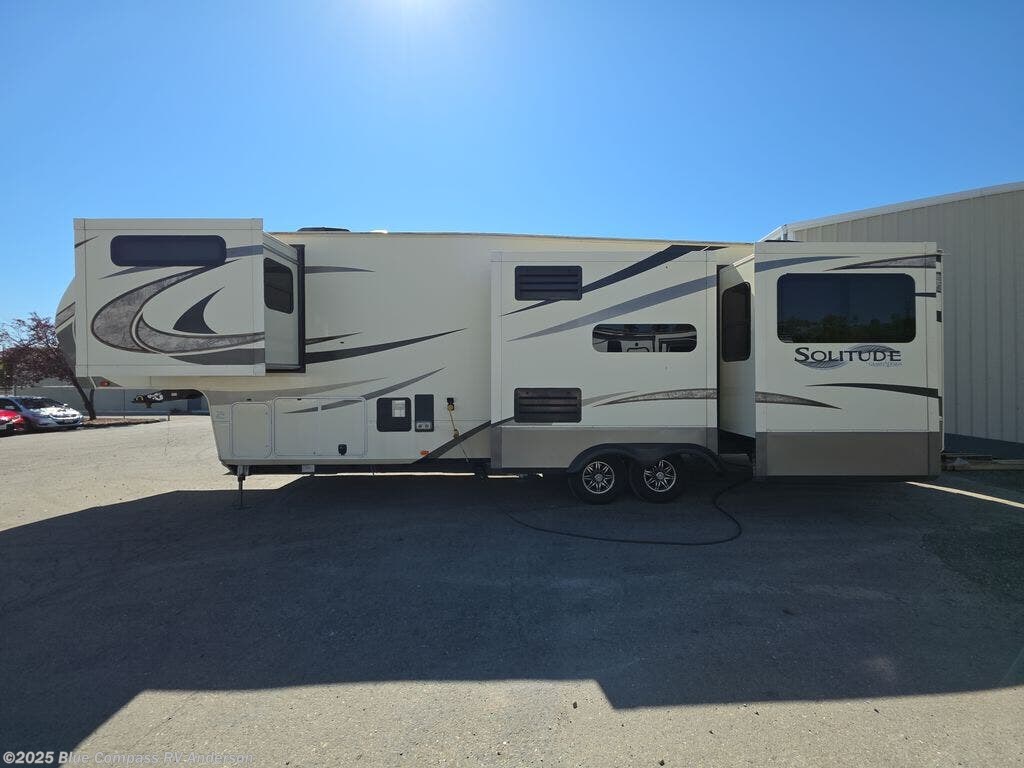 You will find it easy to extend your stay awhile in this Grand Design Solitude fifth wheel model 360RL. This unit features all of the amenities of home including a spacious kitchen with an 18 cu. ft. refrigerator, a kitchen island, an entertainment center with fireplace, and private front master bedroom, plus more!