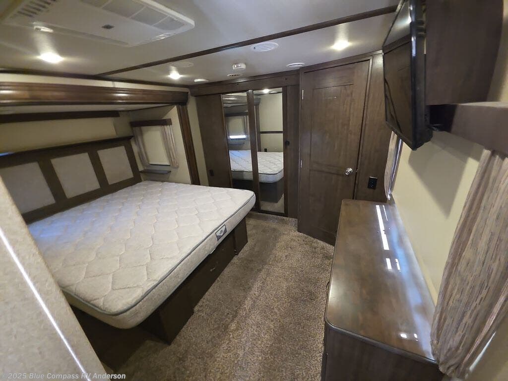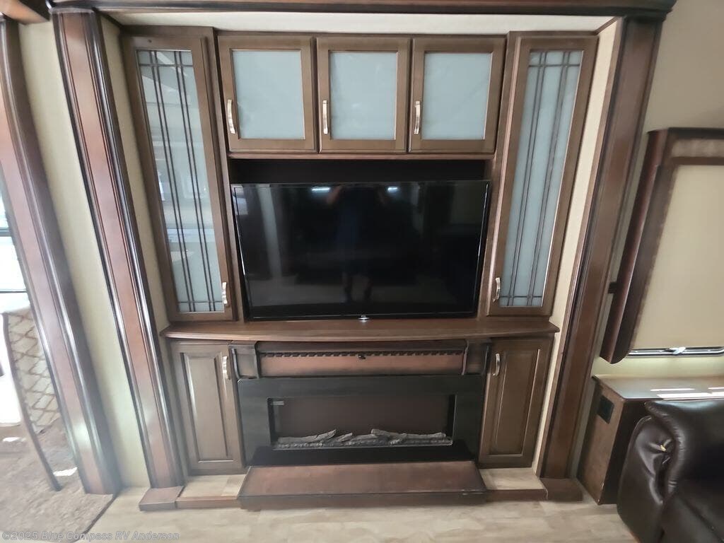 Outside enjoy an exterior LED TV and refrigerator to keep cold drinks handy. You will also love the unobstructed pass-through storage compartment for all of your outdoor camping items, plus universal docking station, and so much more!