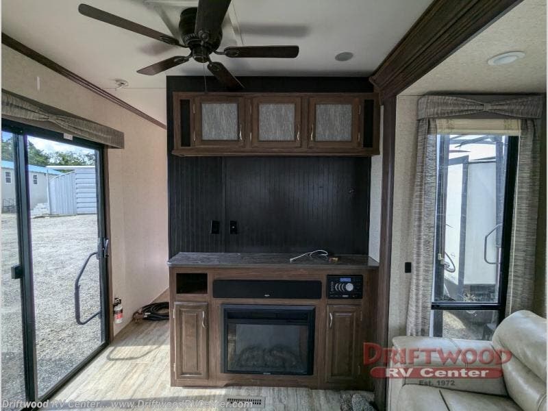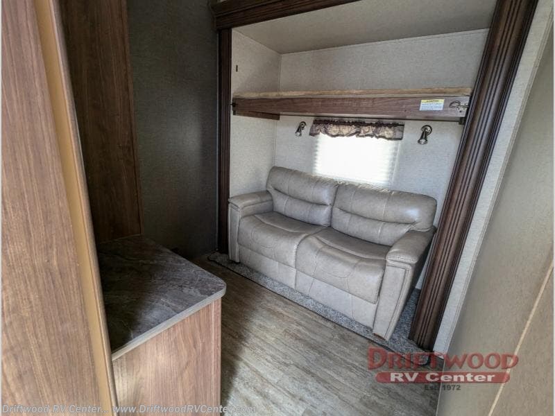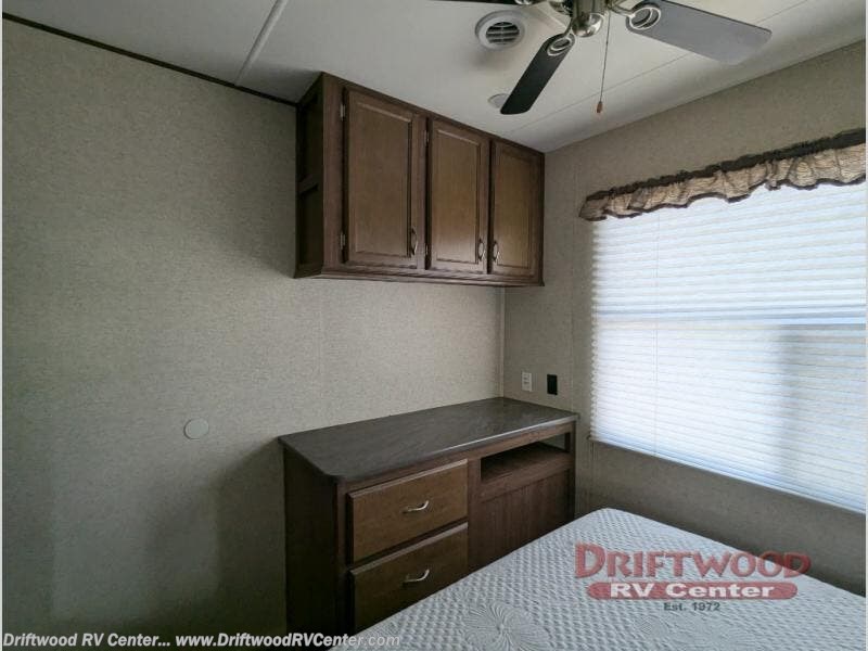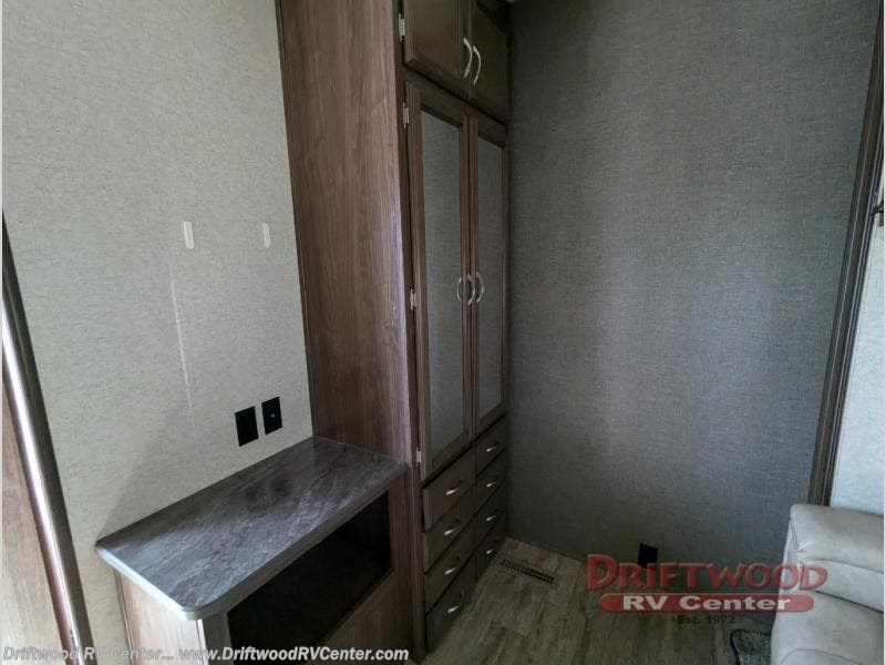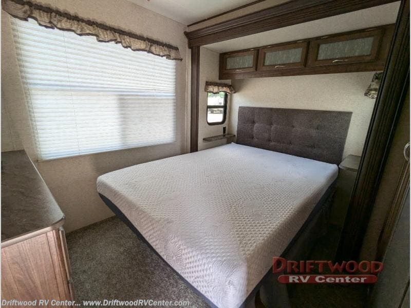 The rear private bedroom has its very own entry/exit door to the outside. Enjoy a king bed slide with nightstands and overhead storage. There is also a large linen cabinet and dresser with storage above, plus so much more!