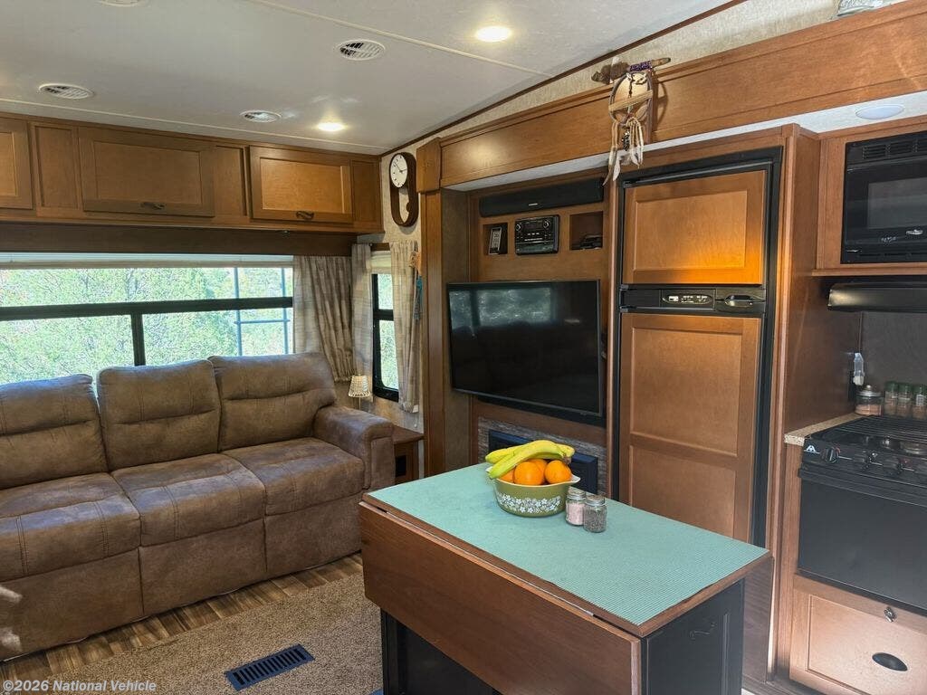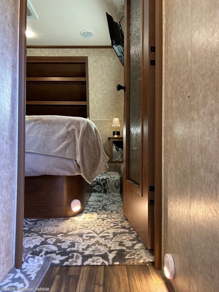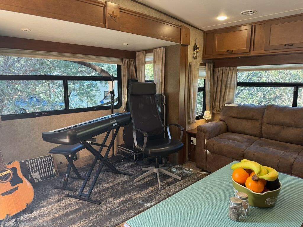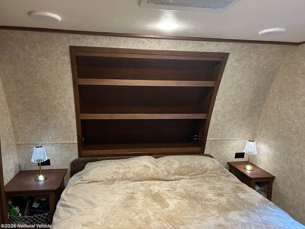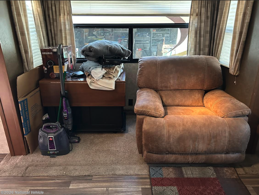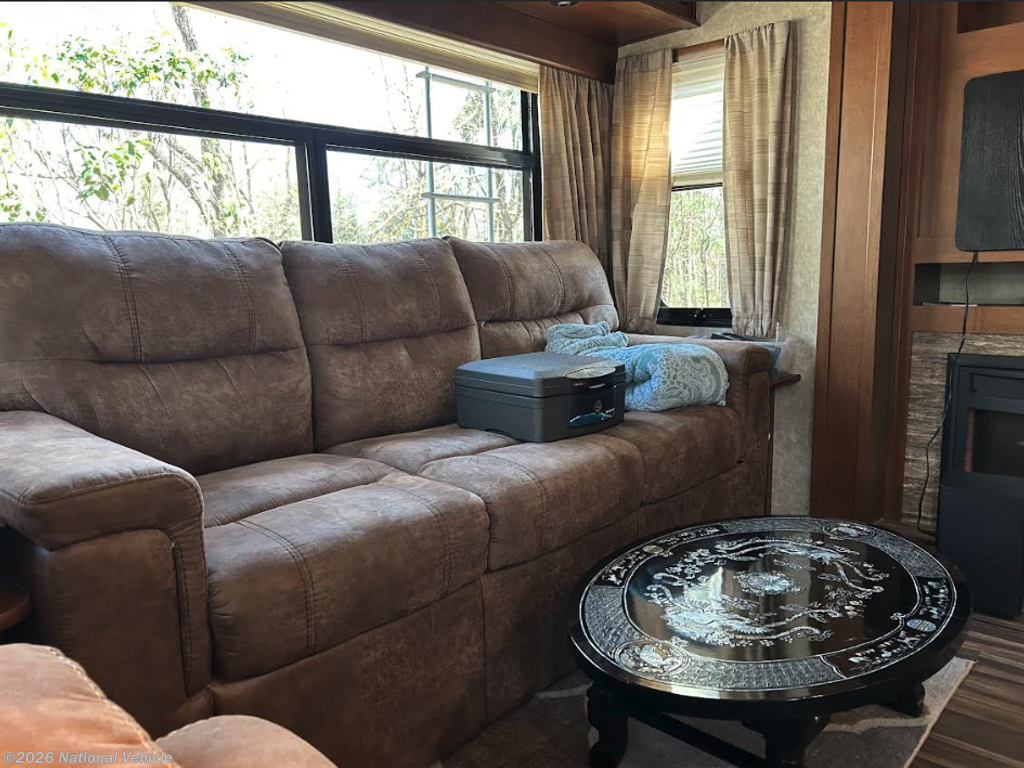 Outside, this fifth wheel turns heads with upgraded chrome wheels, giving it a sleek, premium look. It also features brand new tires for added peace of mind on the road. The new awning provides the perfect shaded outdoor space for relaxing, grilling, or enjoying the view at your favorite destination.