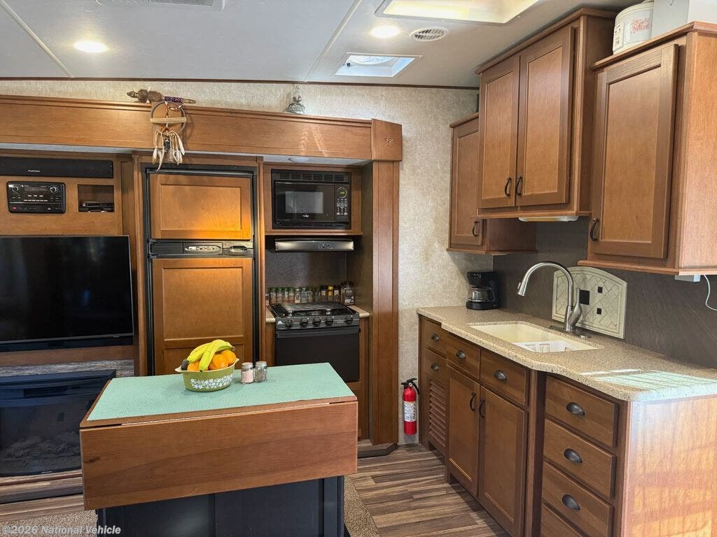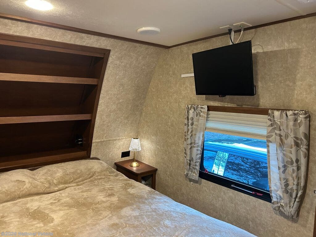 Step inside and you?ll immediately notice the open rear living floorplan, perfect for relaxing or entertaining. The main living area features a beautiful electric fireplace, creating a warm and inviting atmosphere for cool evenings at the campground or extended stays. With two TVs, everyone can enjoy their favorite shows whether you?re lounging in the living room or relaxing in the bedroom.