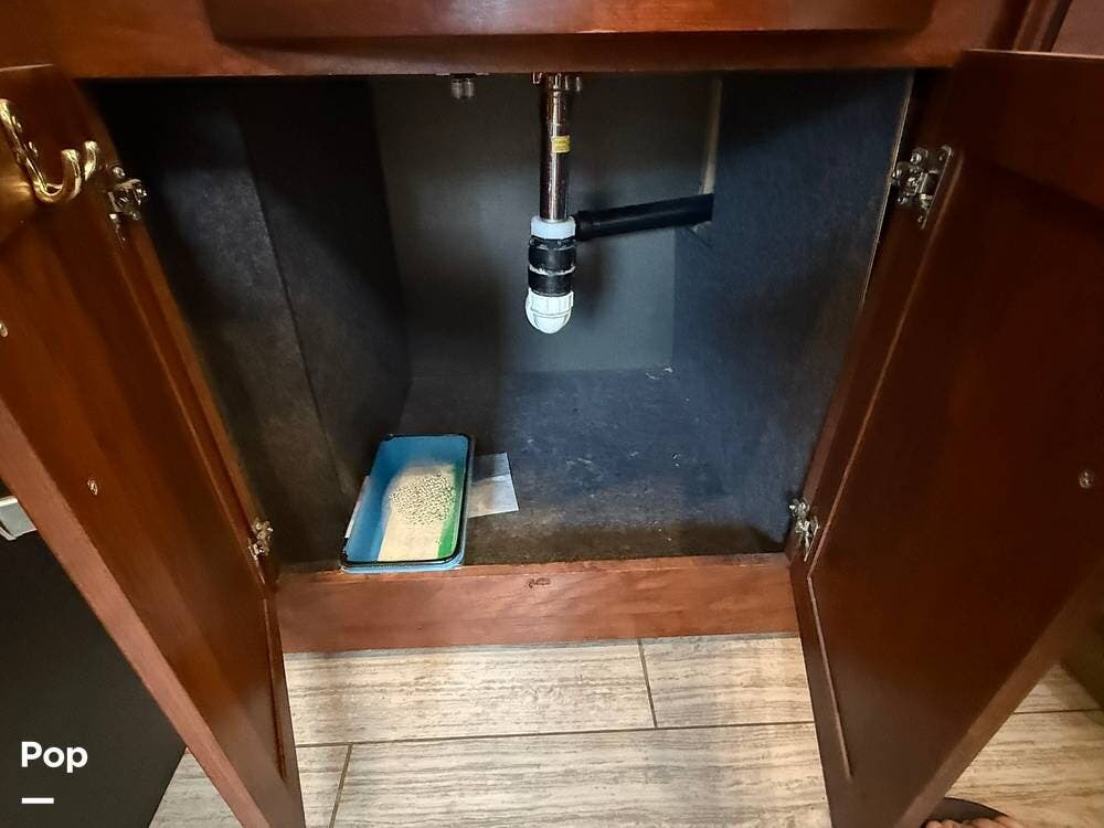 The kitchen is spotless, and a new microwave has been recently installed. There is ample storage in the kitchen, including space under the dinette bench seats.