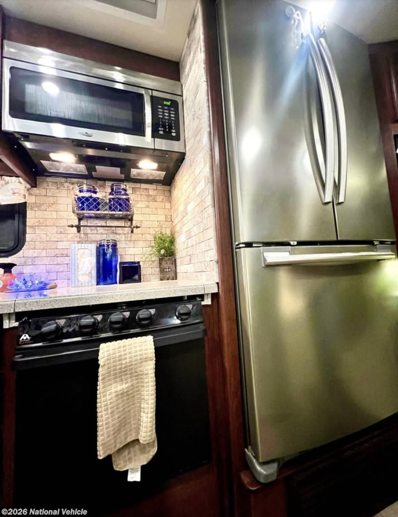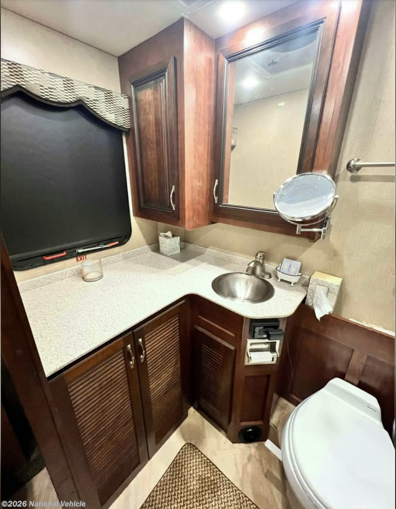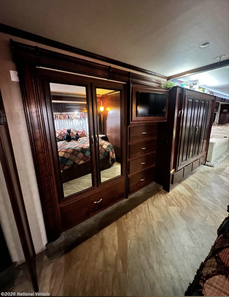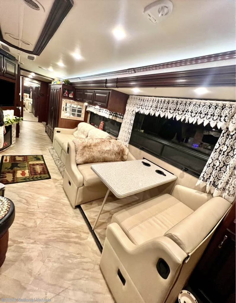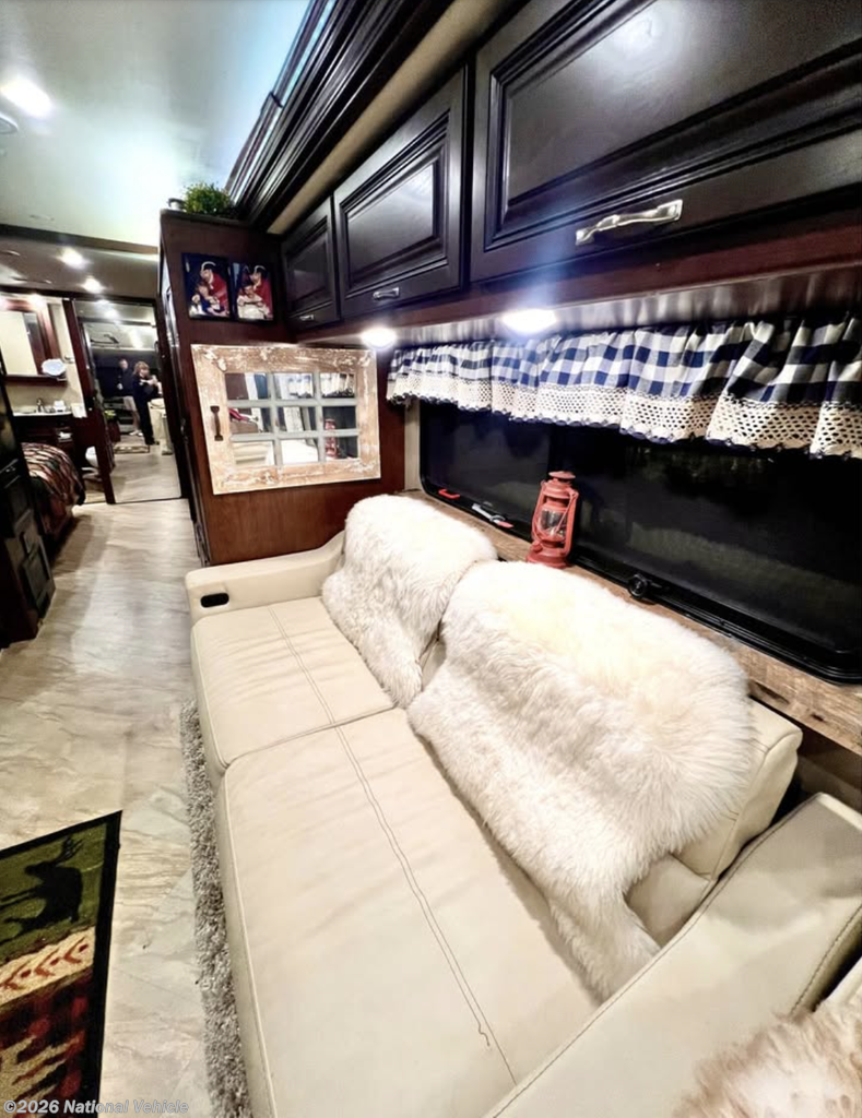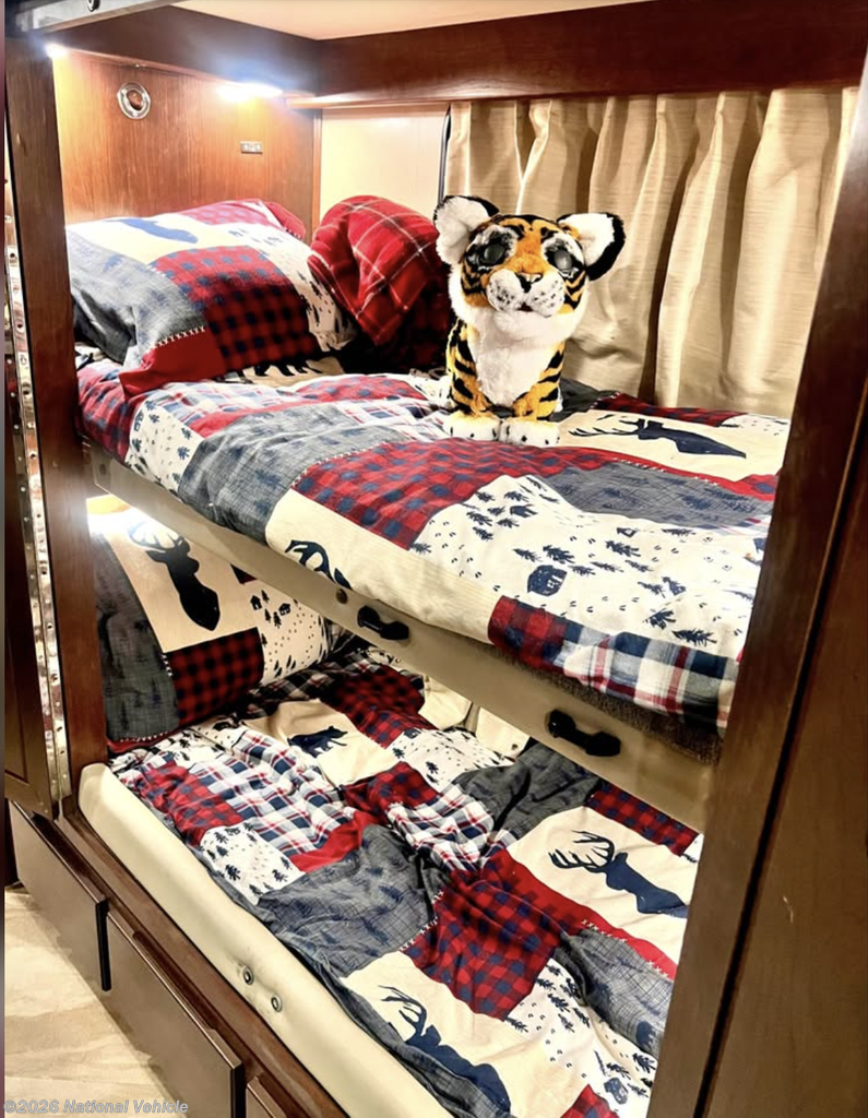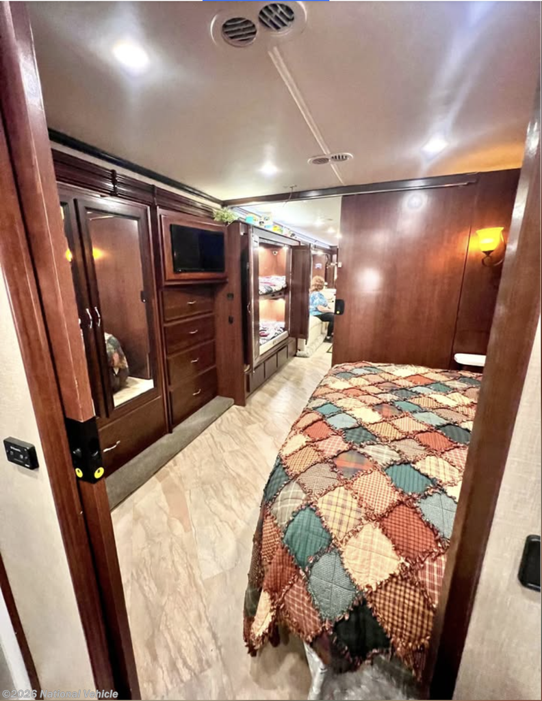 Inside, you?ll find two spacious slide-outs that open up a roomy living area, complete with a residential-style galley, comfortable seating, and a dedicated bedroom with ample storage. The full bath and guest conveniences such as bunk-space options make this coach ideal for families or couples seeking long-haul flexibility. Premium touches?like solid-surface countertops, hardwood cabinetry, and tile flooring?give it a home-like feel with RV-ready durability.