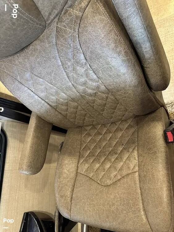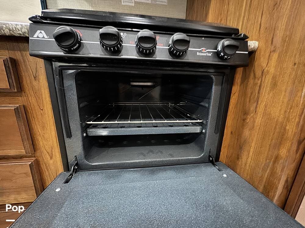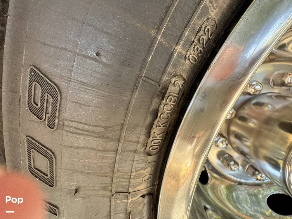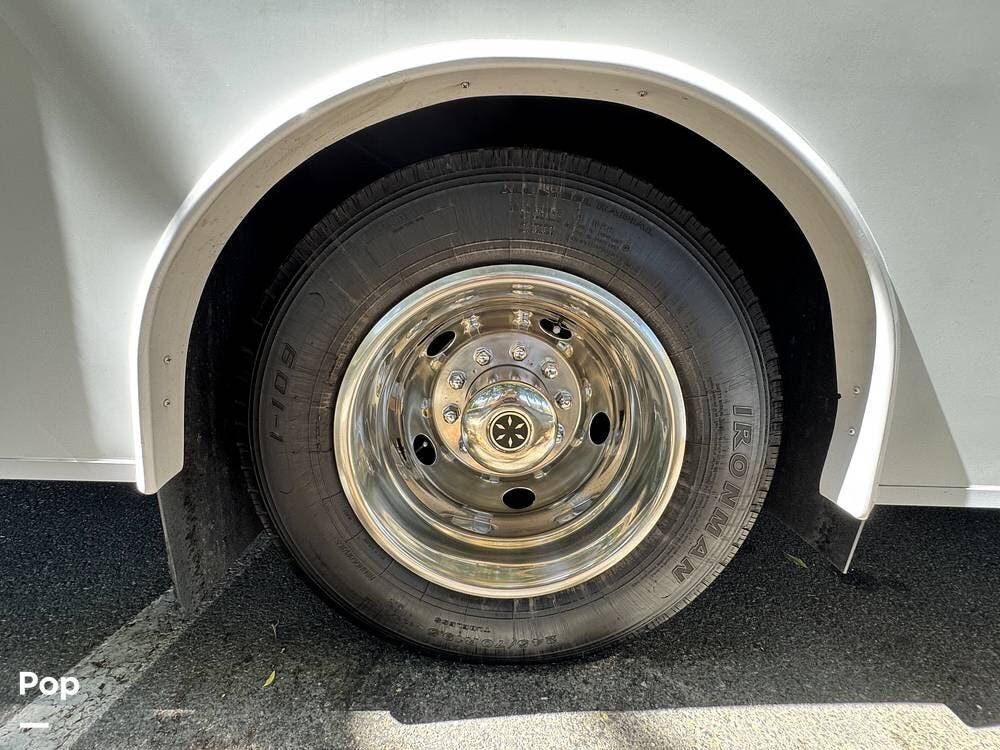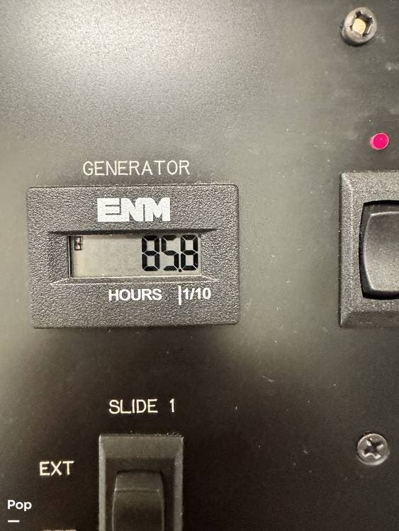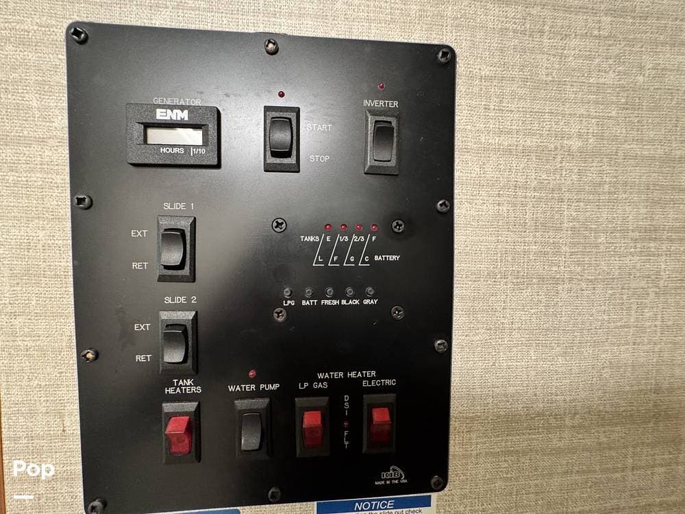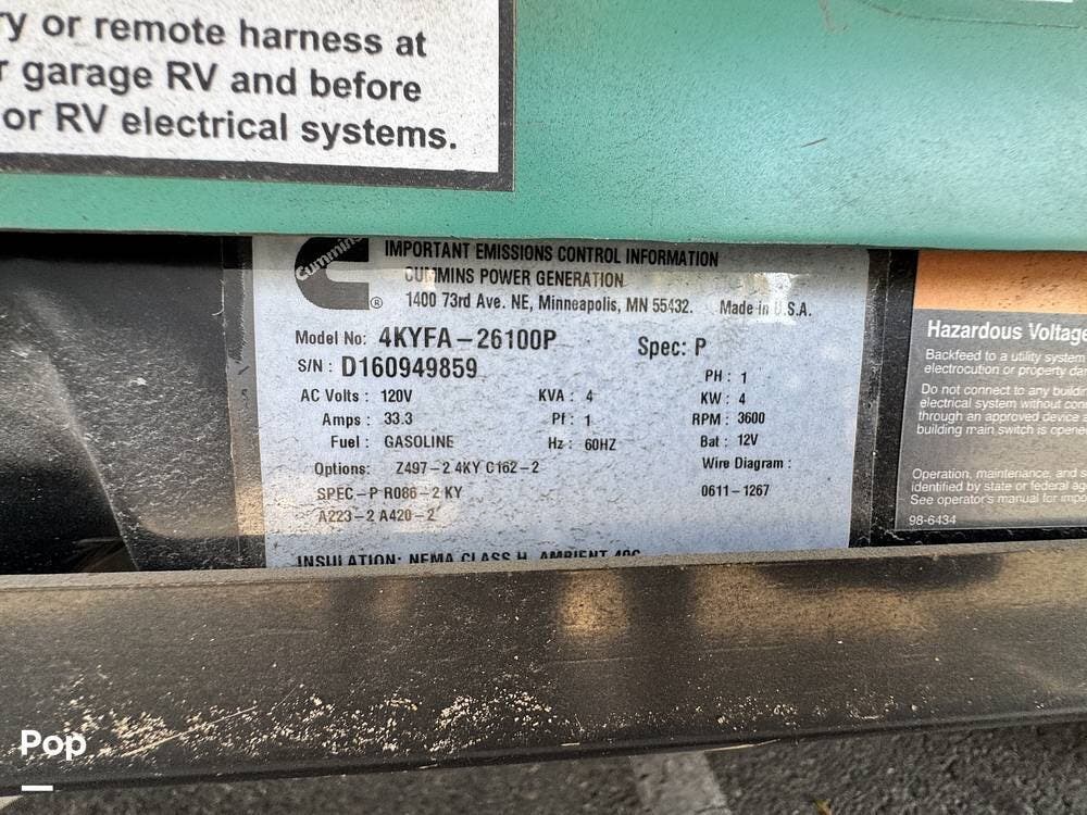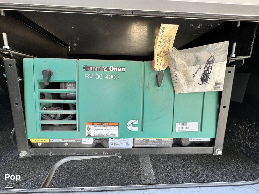 Utility highlights include a 4,000-watt Onan generator, a 77-gallon freshwater tank, a 40-gallon gray water tank, a 50-gallon black water tank, two 11,000 BTU ACs with an Energy Management system, and a 31,000-BTU furnace.