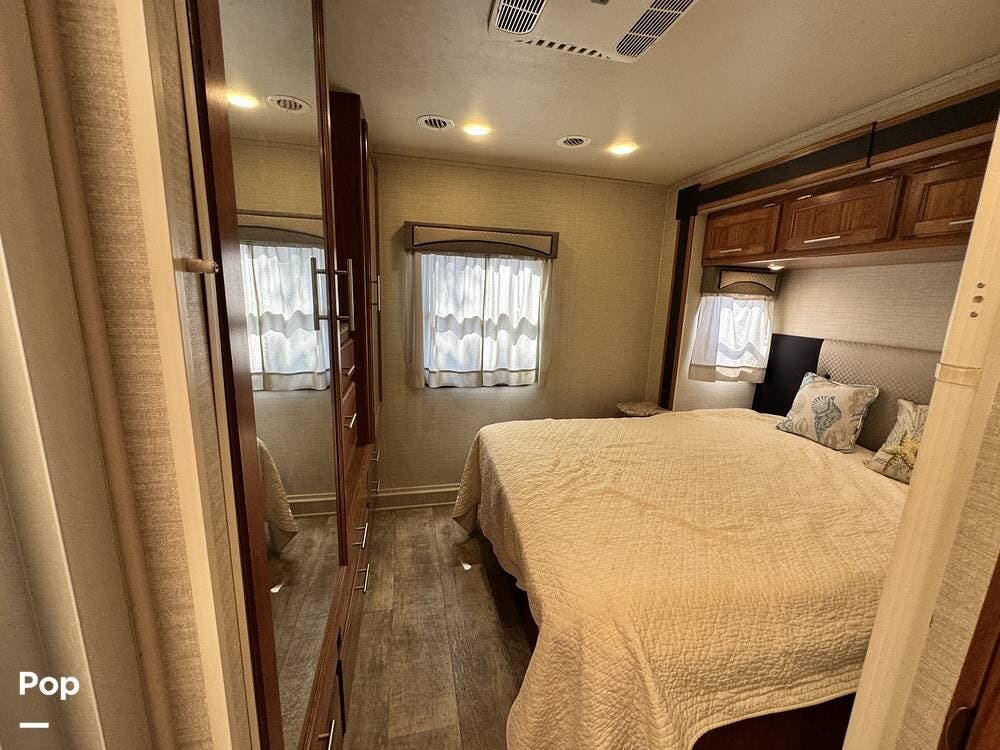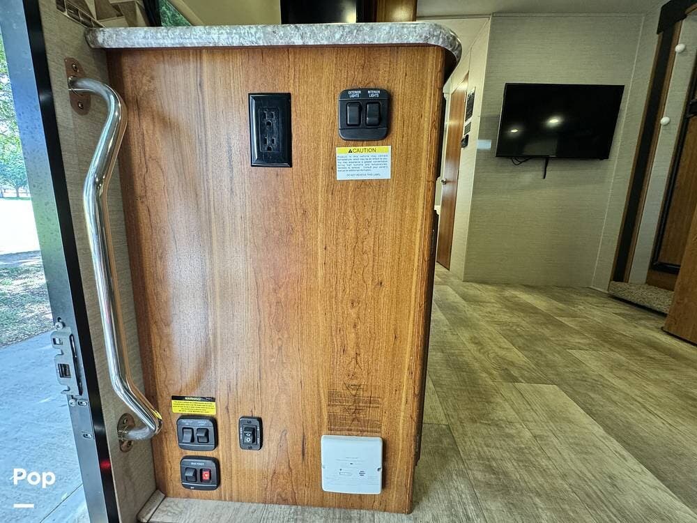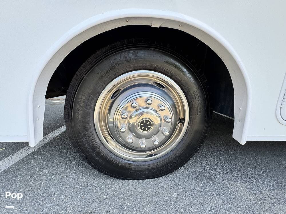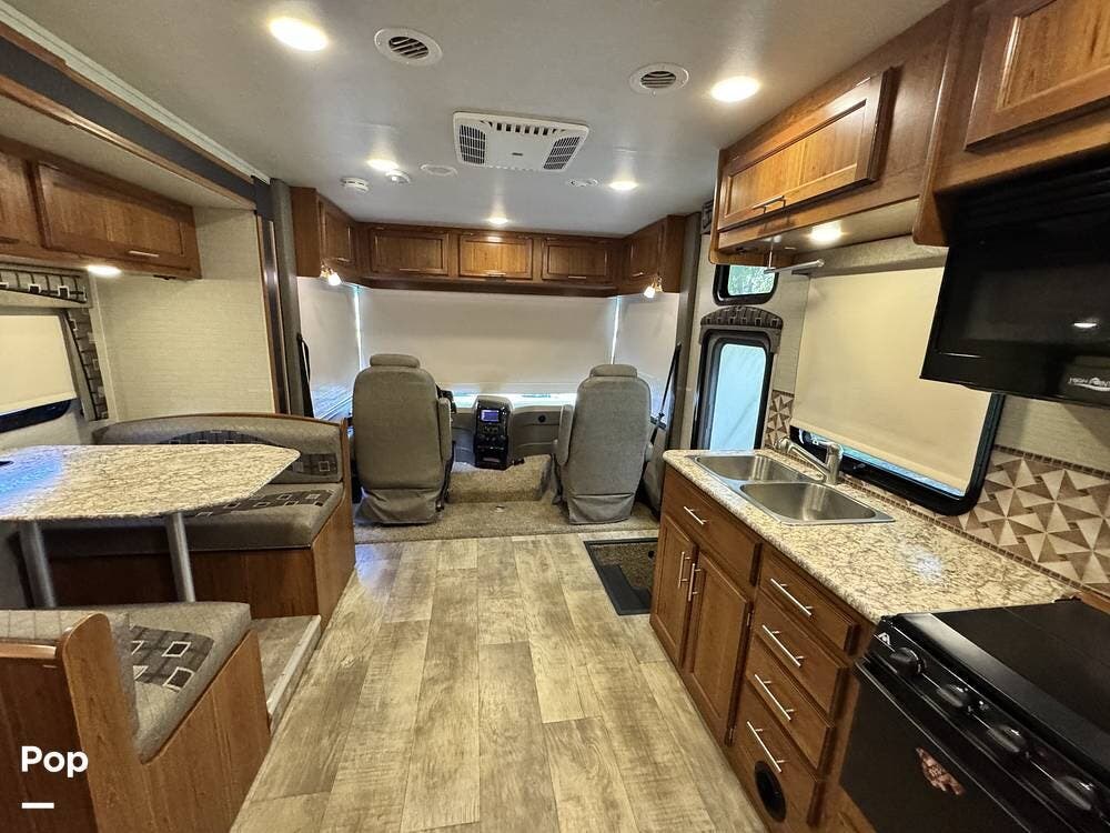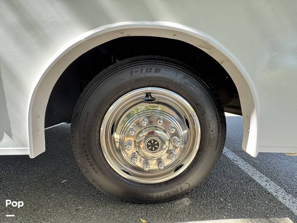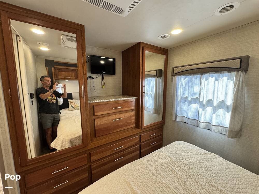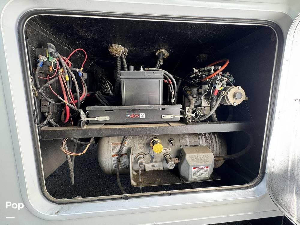 Utility highlights include a 4,000-watt Onan generator, a 77-gallon freshwater tank, a 40-gallon gray water tank, a 50-gallon black water tank, two 11,000 BTU ACs with an Energy Management system, and a 31,000-BTU furnace.