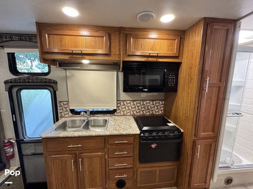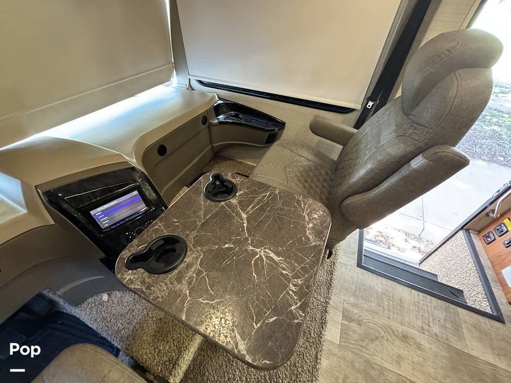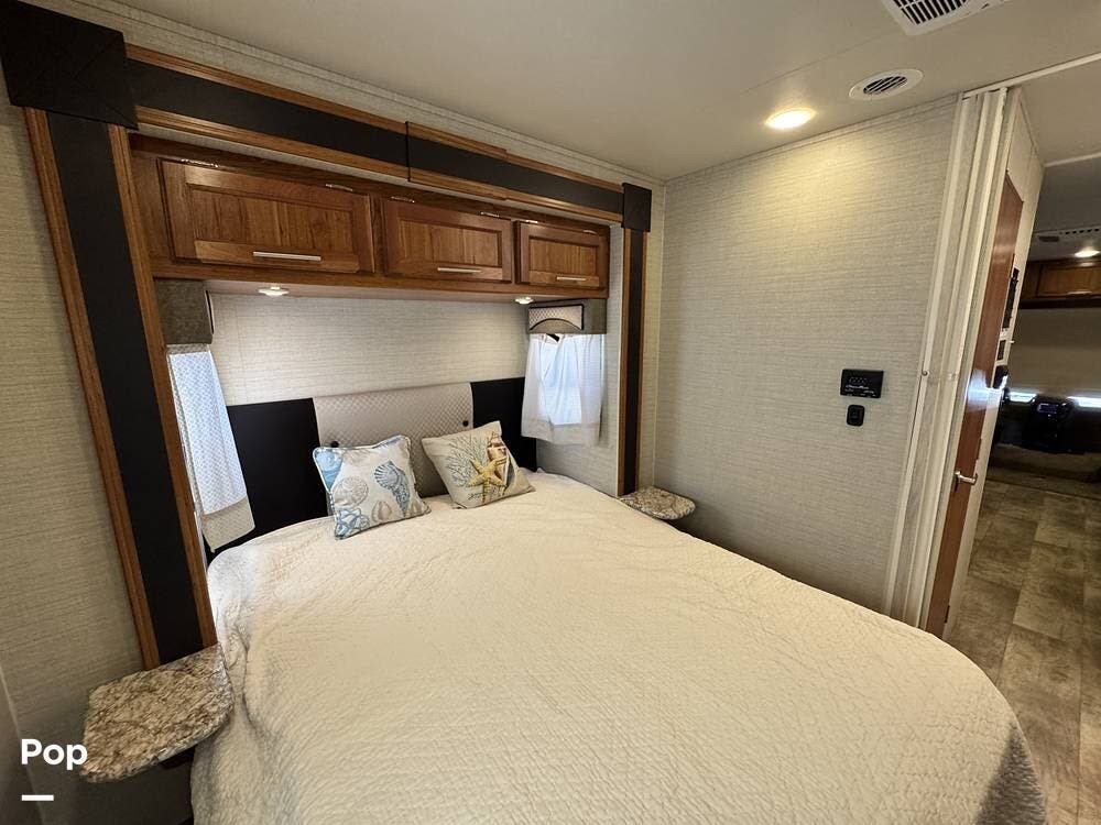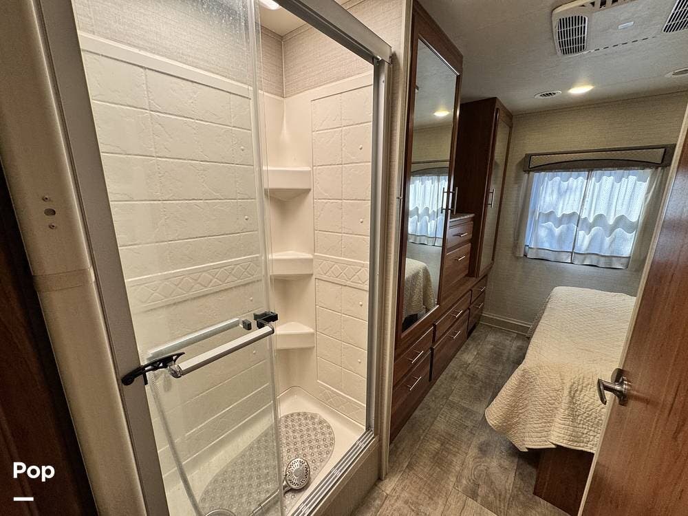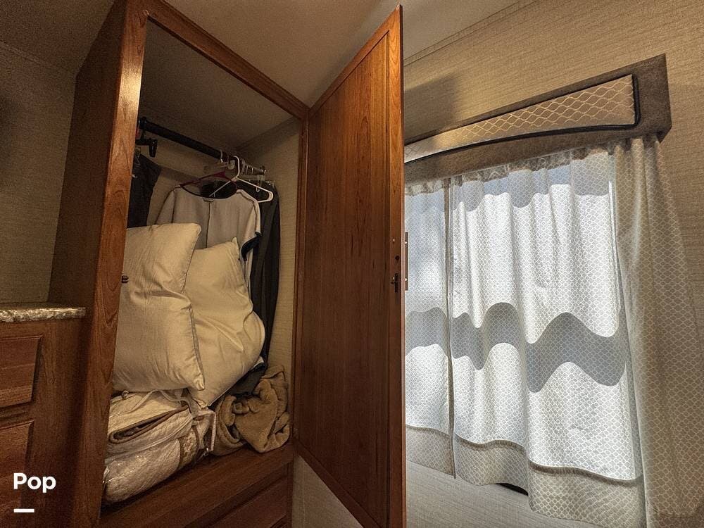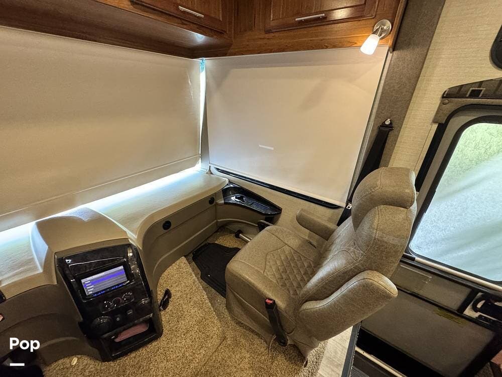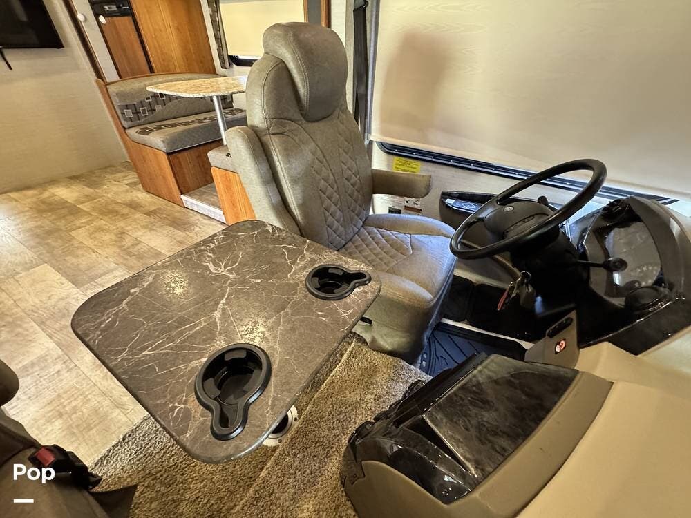Utility highlights include a 4,000-watt Onan generator, a 77-gallon freshwater tank, a 40-gallon gray water tank, a 50-gallon black water tank, two 11,000 BTU ACs with an Energy Management system, and a 31,000-BTU furnace.