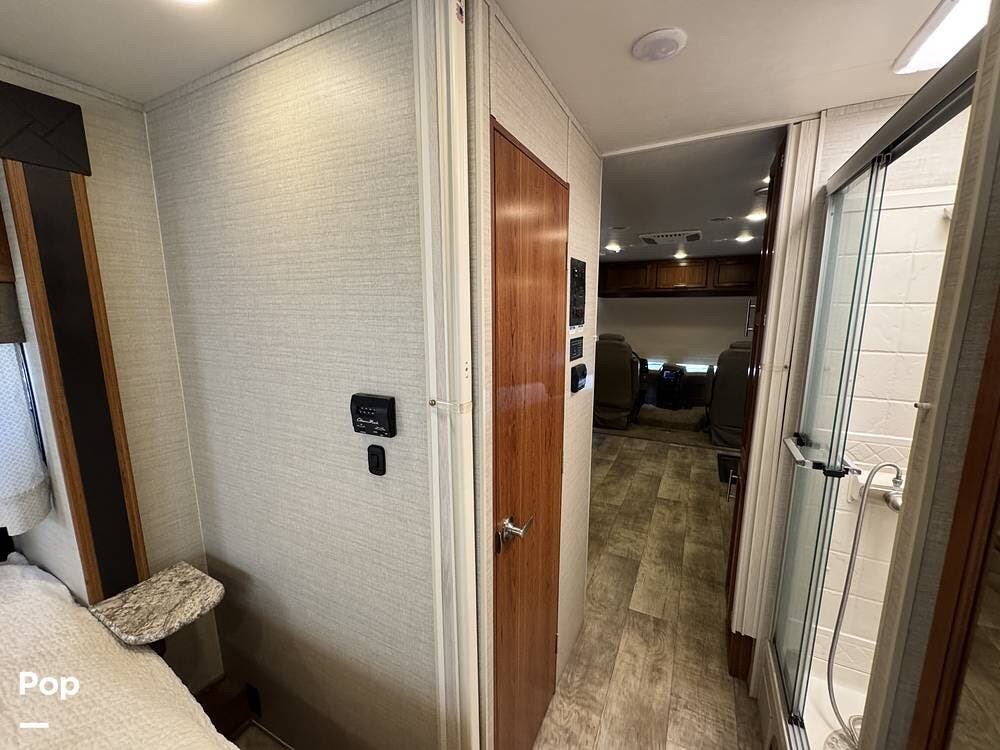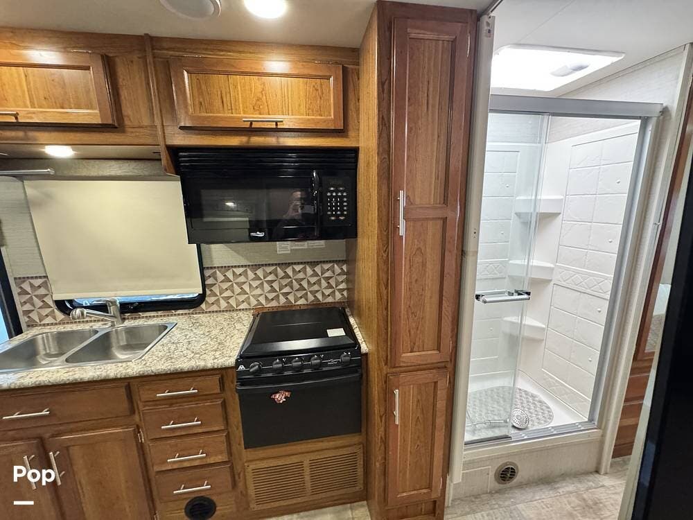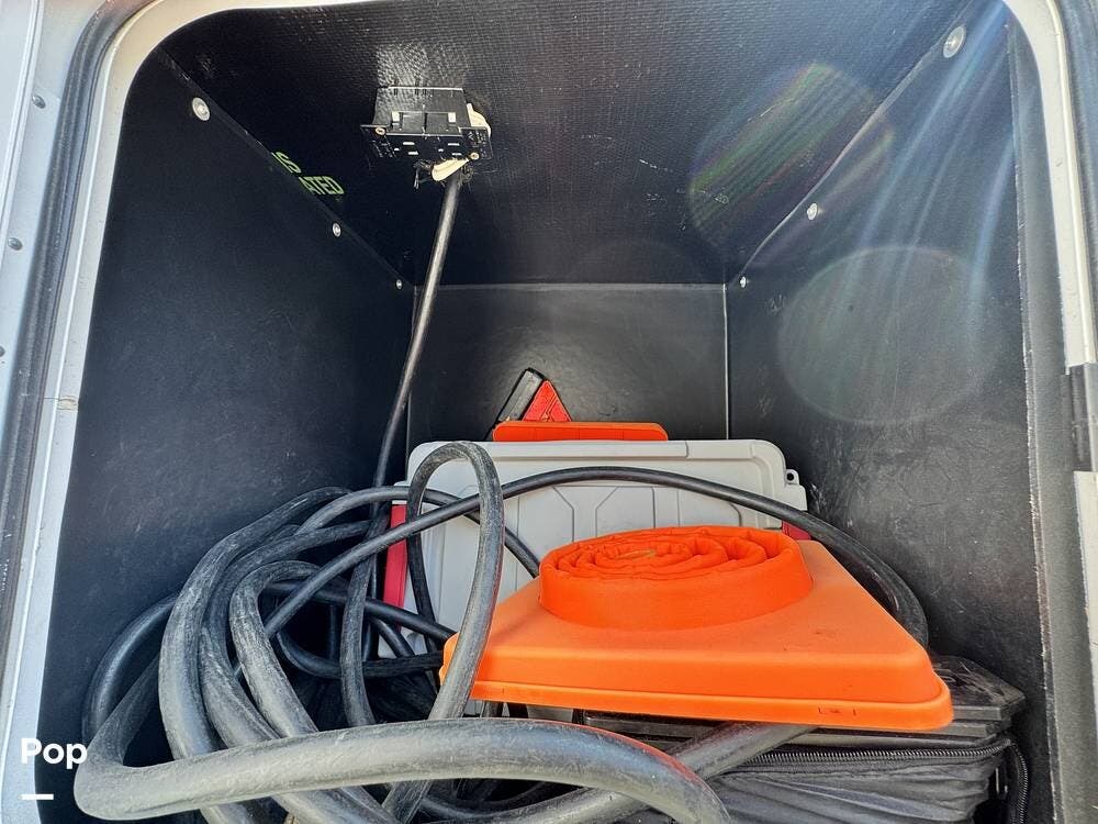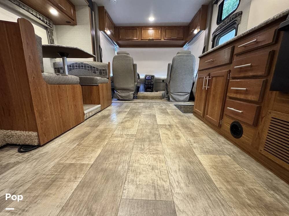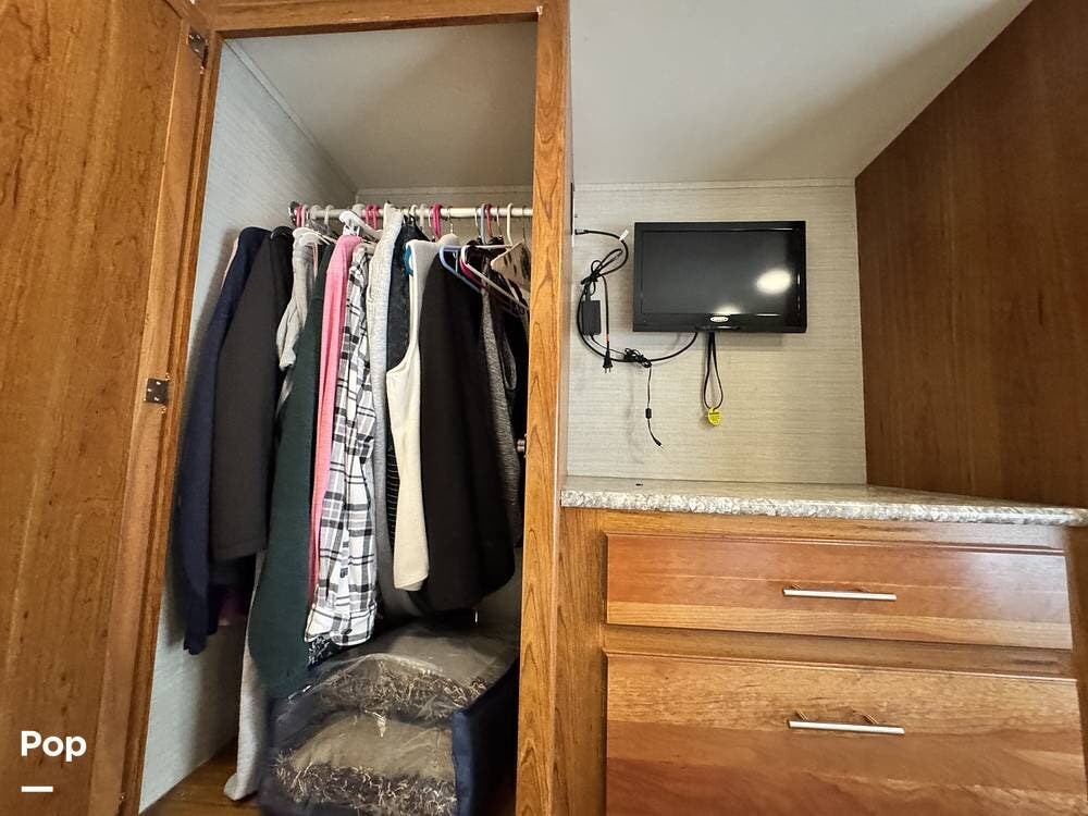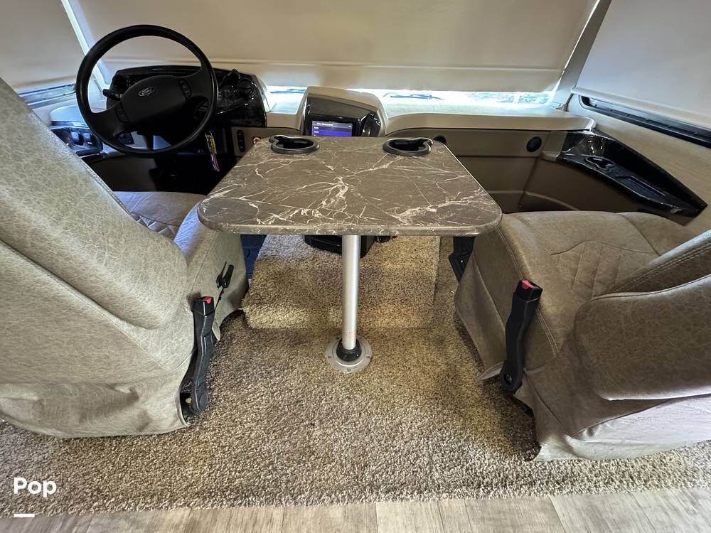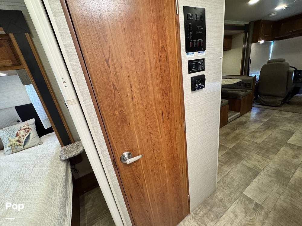 Utility highlights include a 4,000-watt Onan generator, a 77-gallon freshwater tank, a 40-gallon gray water tank, a 50-gallon black water tank, two 11,000 BTU ACs with an Energy Management system, and a 31,000-BTU furnace.