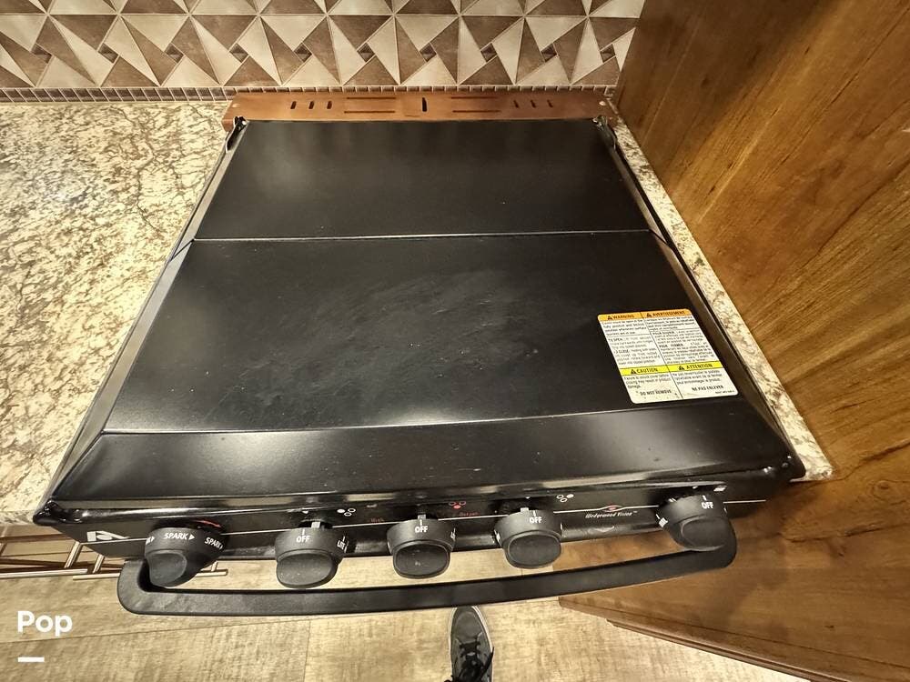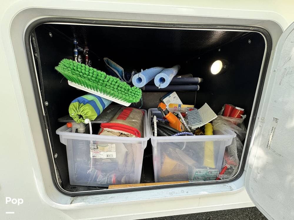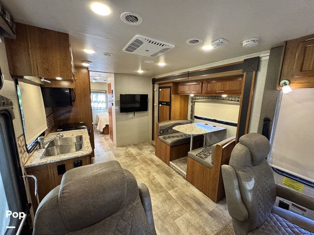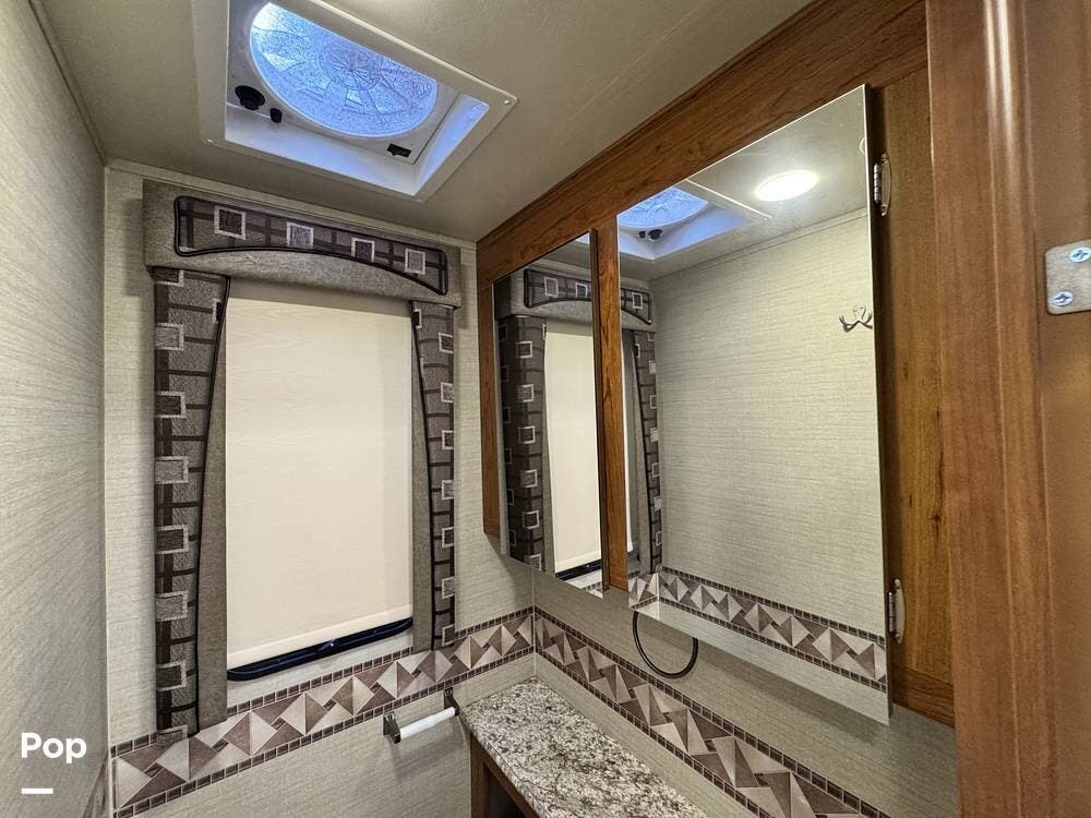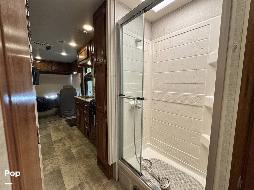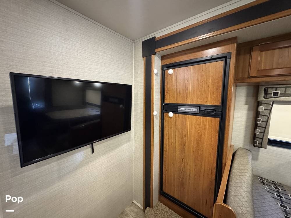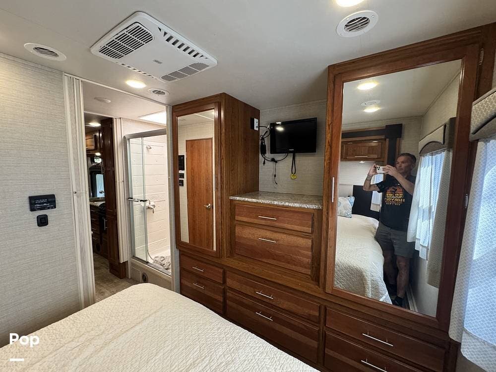 Utility highlights include a 4,000-watt Onan generator, a 77-gallon freshwater tank, a 40-gallon gray water tank, a 50-gallon black water tank, two 11,000 BTU ACs with an Energy Management system, and a 31,000-BTU furnace.
