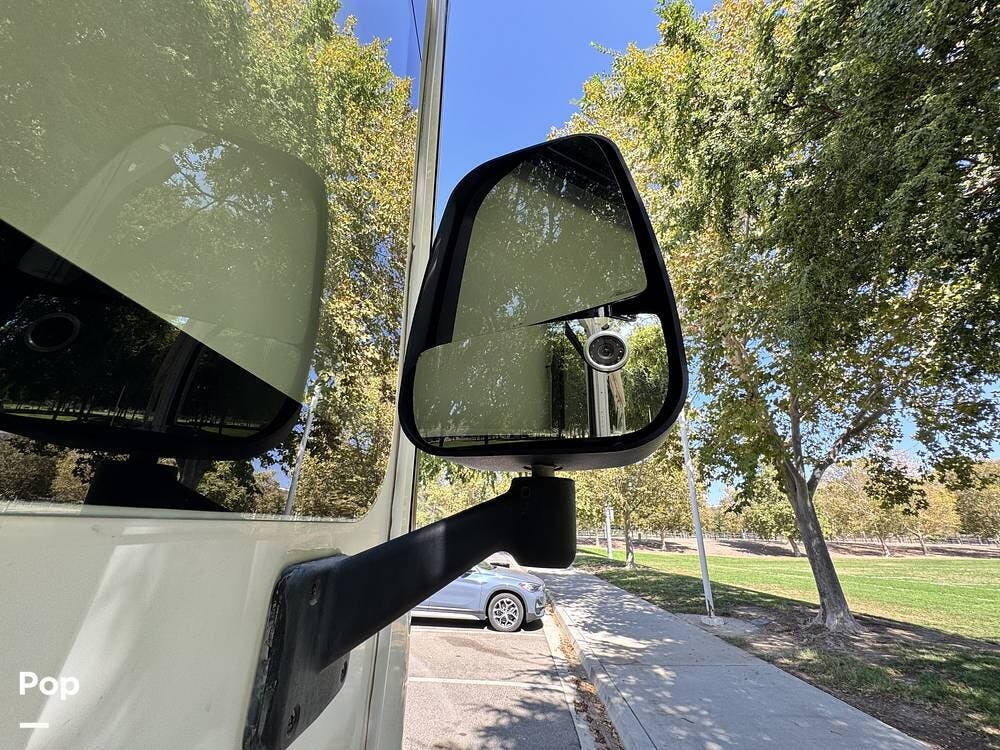 A few exterior highlights include a power awning with LED lights, side view cameras in the power mirrors, and a one-piece fiberglass roof.