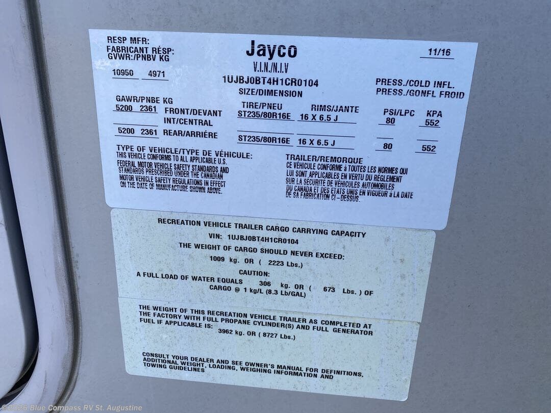 Request More Info on this 2017 Jayco Eagle 314BHDS Offered for sale by Blue Compass RV St. Augustine
