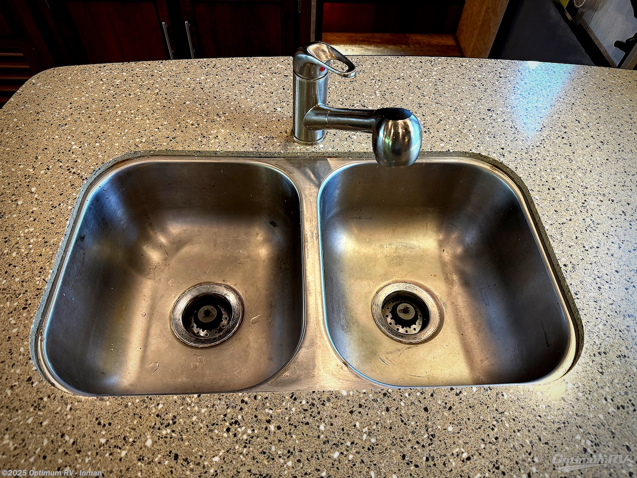 Enter through the main door and straight in front of you, along the interior wall there is an entertainment center with a fireplace option. Next to the entertainment center there is a wardrobe. The slide out has a hide-a-bed with an overhead cabinet above and a u-dinette. Across you will find a double kitchen sink, three burner range, microwave, overhead cabinet for dishes, refrigerator, and a pantry.