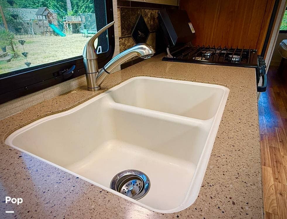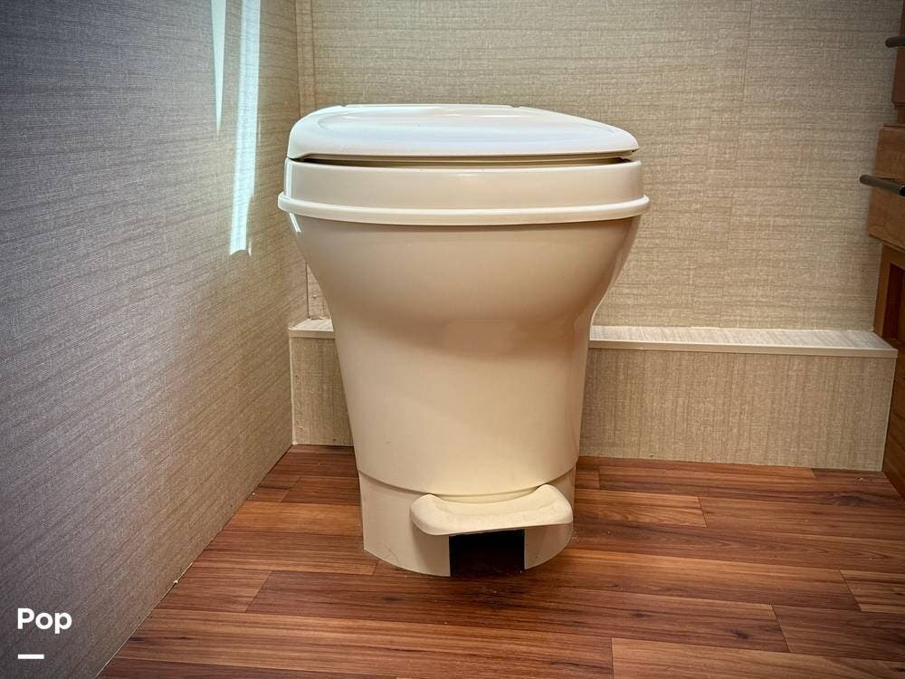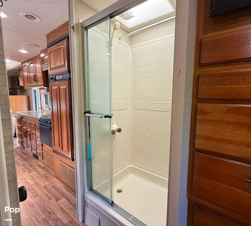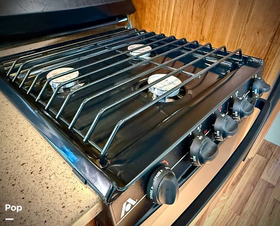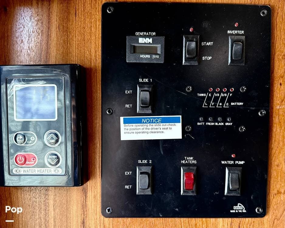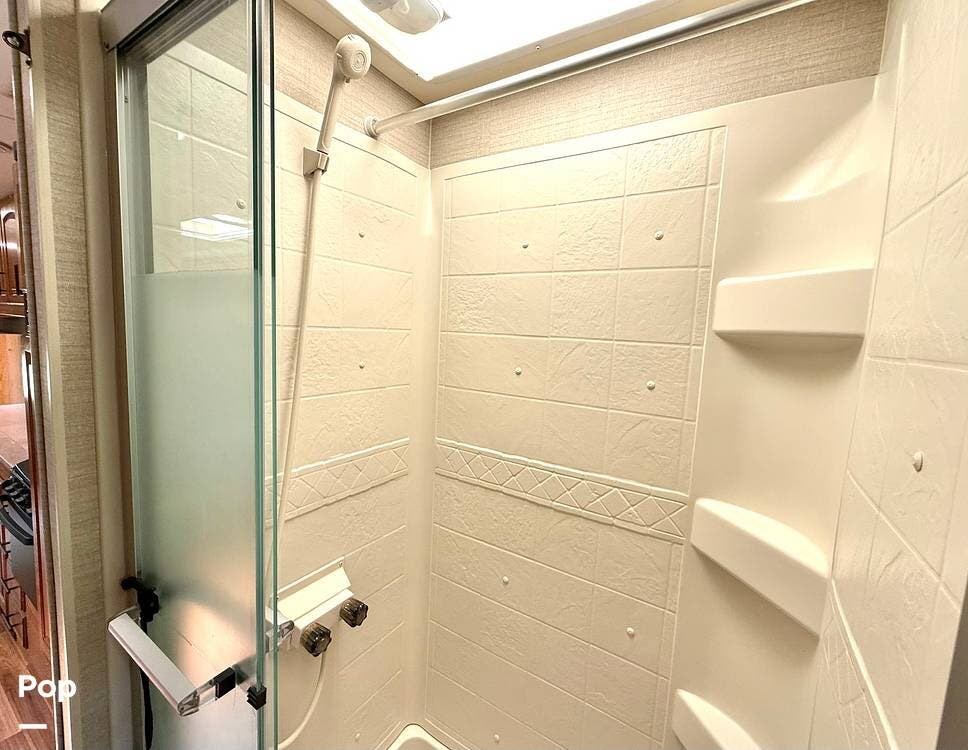 On the exterior, you'll find a one-piece fiberglass roof, Tuff-Shell vacuum-bonded construction, frameless windows, a 12V electric awning with LED lights, pass-through storage with Slam-latch doors, an Onan 4,000-watt generator, heated holding tanks, and keyless entry. This motorhome also includes a tankless water heater, inverter, slide-out battery tray, and a 56-pound propane tank to keep you powered and comfortable wherever you roam.