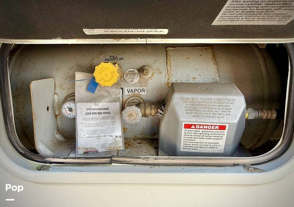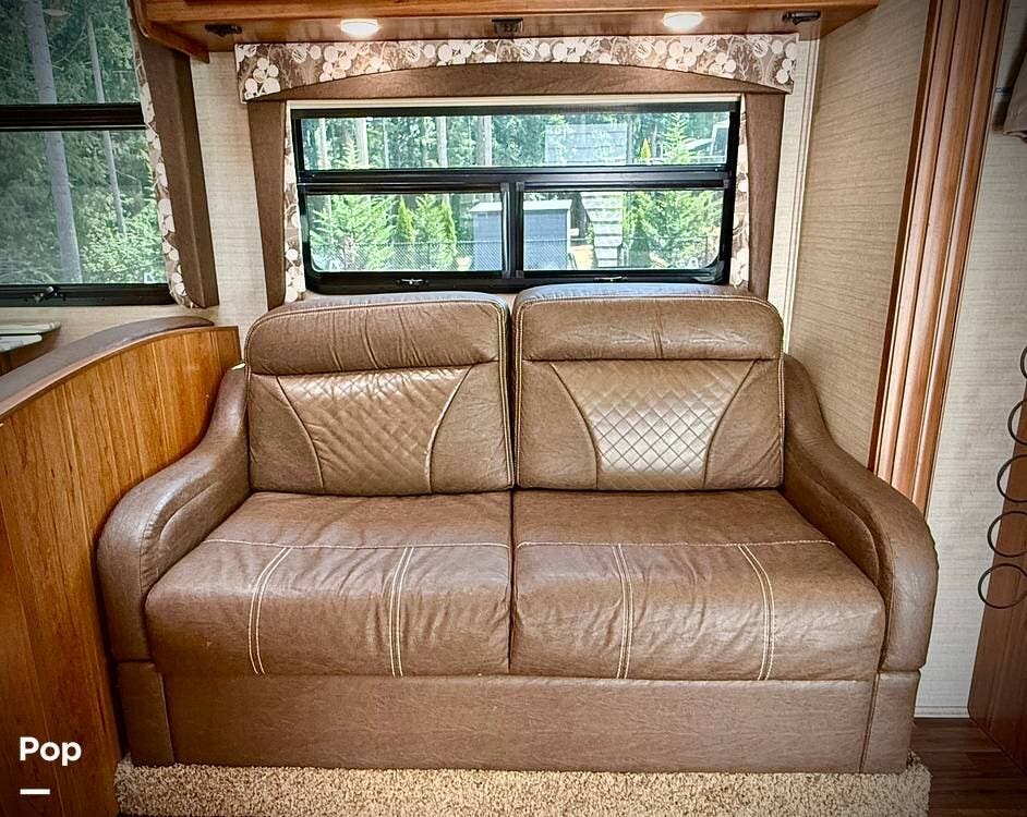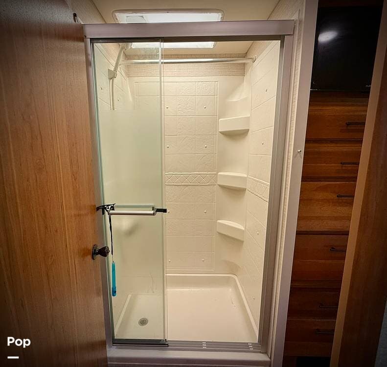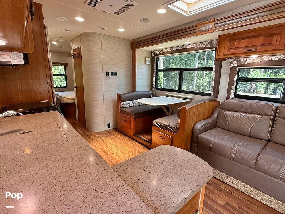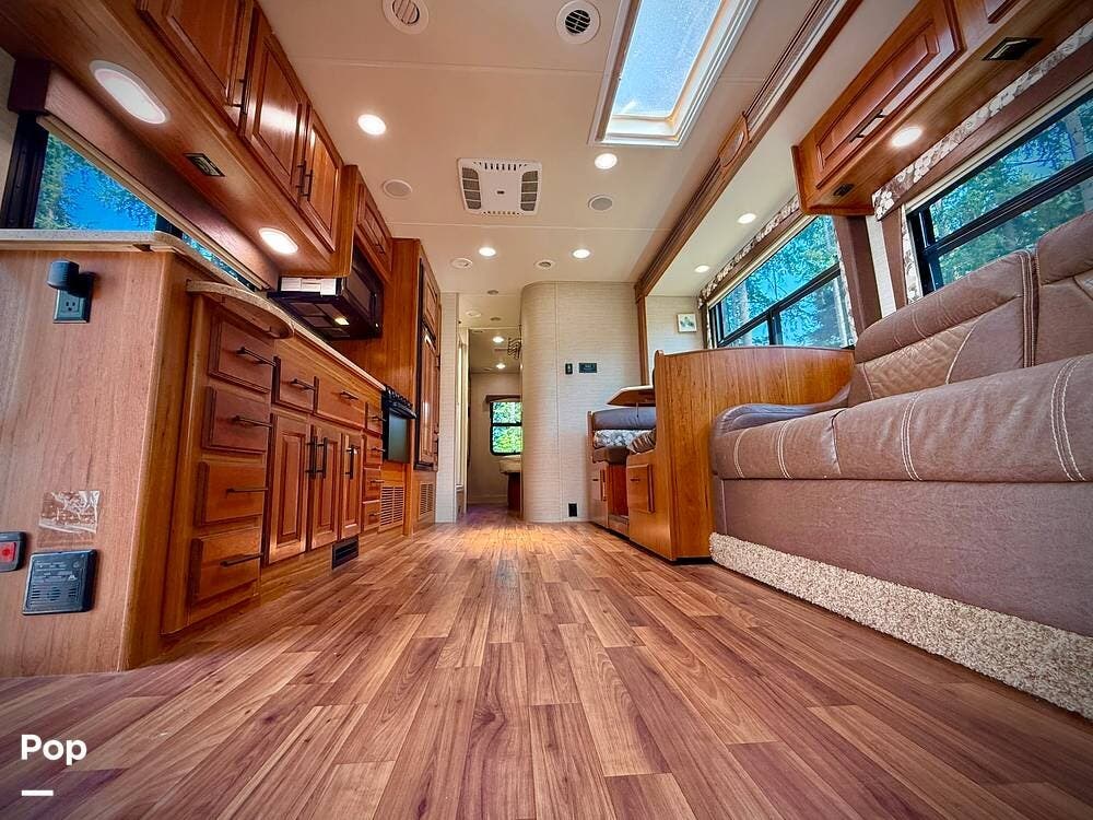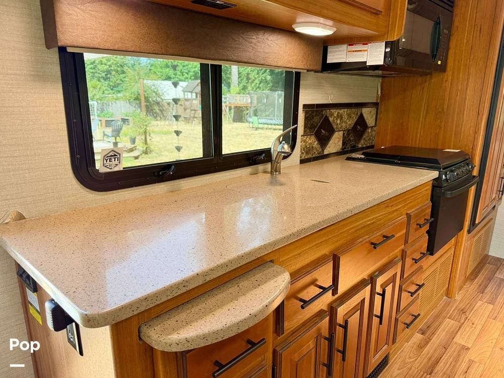 On the exterior, you'll find a one-piece fiberglass roof, Tuff-Shell vacuum-bonded construction, frameless windows, a 12V electric awning with LED lights, pass-through storage with Slam-latch doors, an Onan 4,000-watt generator, heated holding tanks, and keyless entry. This motorhome also includes a tankless water heater, inverter, slide-out battery tray, and a 56-pound propane tank to keep you powered and comfortable wherever you roam.