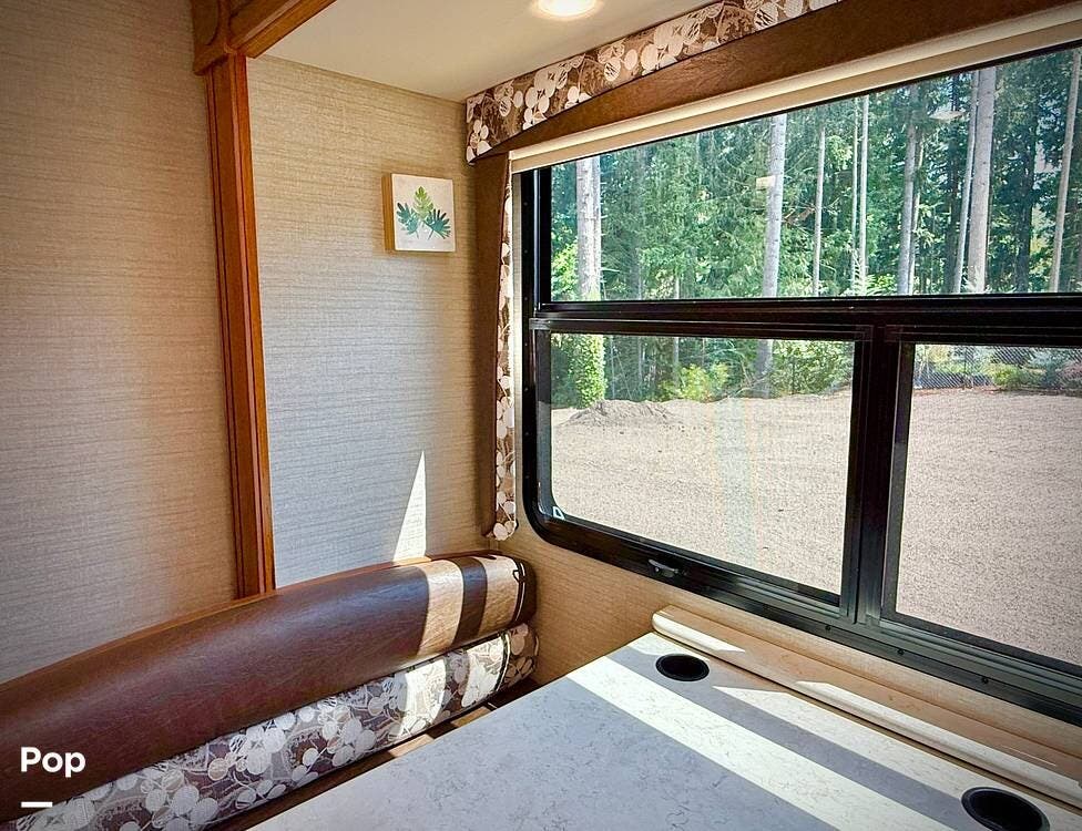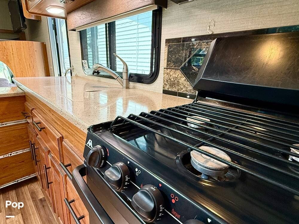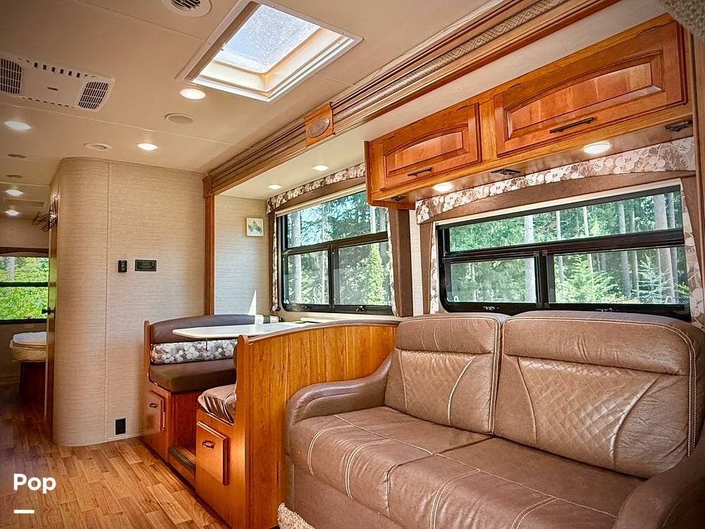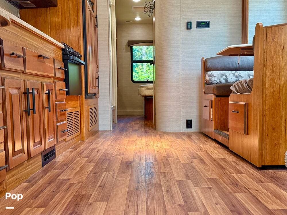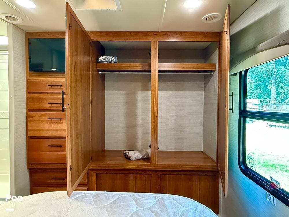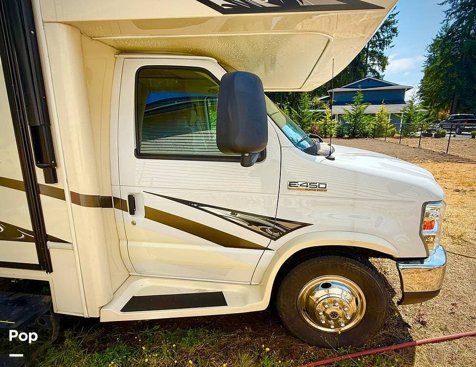 On the exterior, you'll find a one-piece fiberglass roof, Tuff-Shell vacuum-bonded construction, frameless windows, a 12V electric awning with LED lights, pass-through storage with Slam-latch doors, an Onan 4,000-watt generator, heated holding tanks, and keyless entry. This motorhome also includes a tankless water heater, inverter, slide-out battery tray, and a 56-pound propane tank to keep you powered and comfortable wherever you roam.