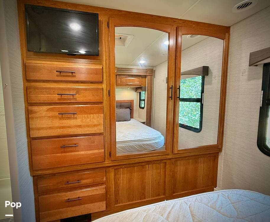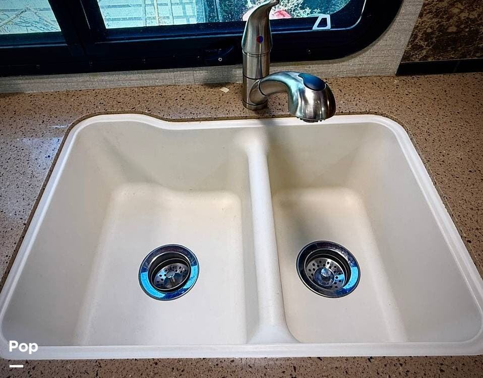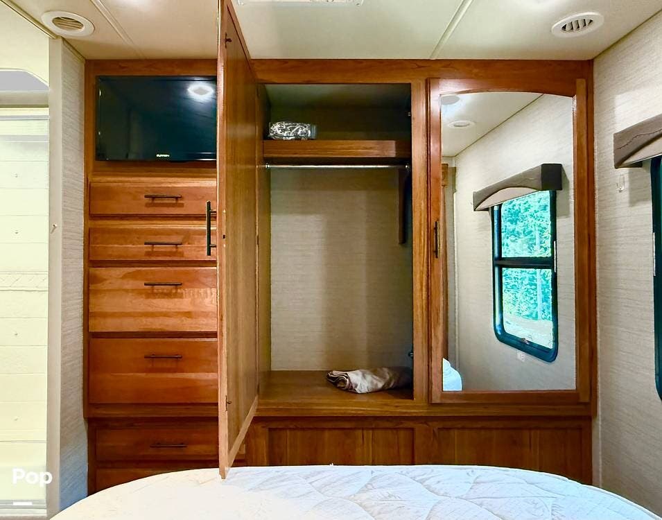 The hydraulic leveling jacks, backup and side-view cameras, and remote-controlled heated mirrors make setup and driving a breeze, while the 7,500-pound hitch with the Road Master tow system opens the door to towing your toys or a small vehicle.