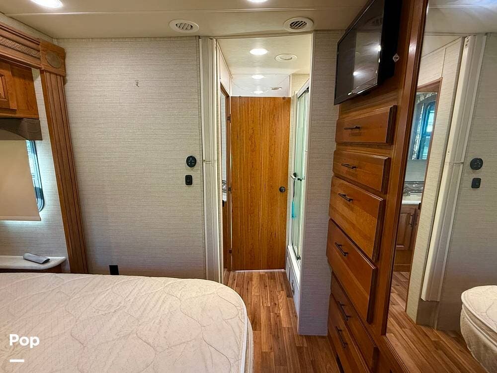 The rear bedroom features a slide-out with a queen bed and nightstands, plus a wardrobe and TV cabinet.