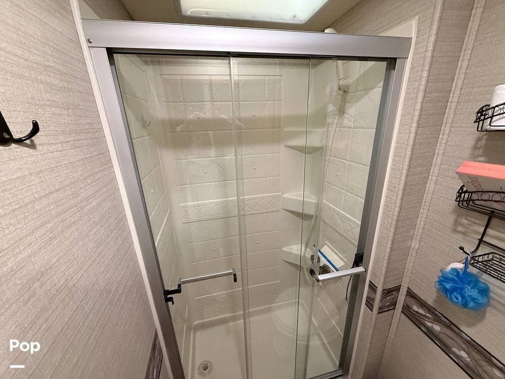 Always stored covered, the full-body paint exterior remains stunning and shiny, turning heads at any campground.