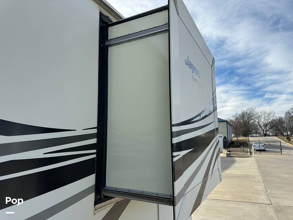 Outside, the Greyhawk continues to impress with its strong Jayco construction and thoughtful details that make setup quick and easy. The large power awning creates a perfect shaded area for relaxing or entertaining, and the exterior storage bays give you room for camping chairs, grills, and all your adventure gear.