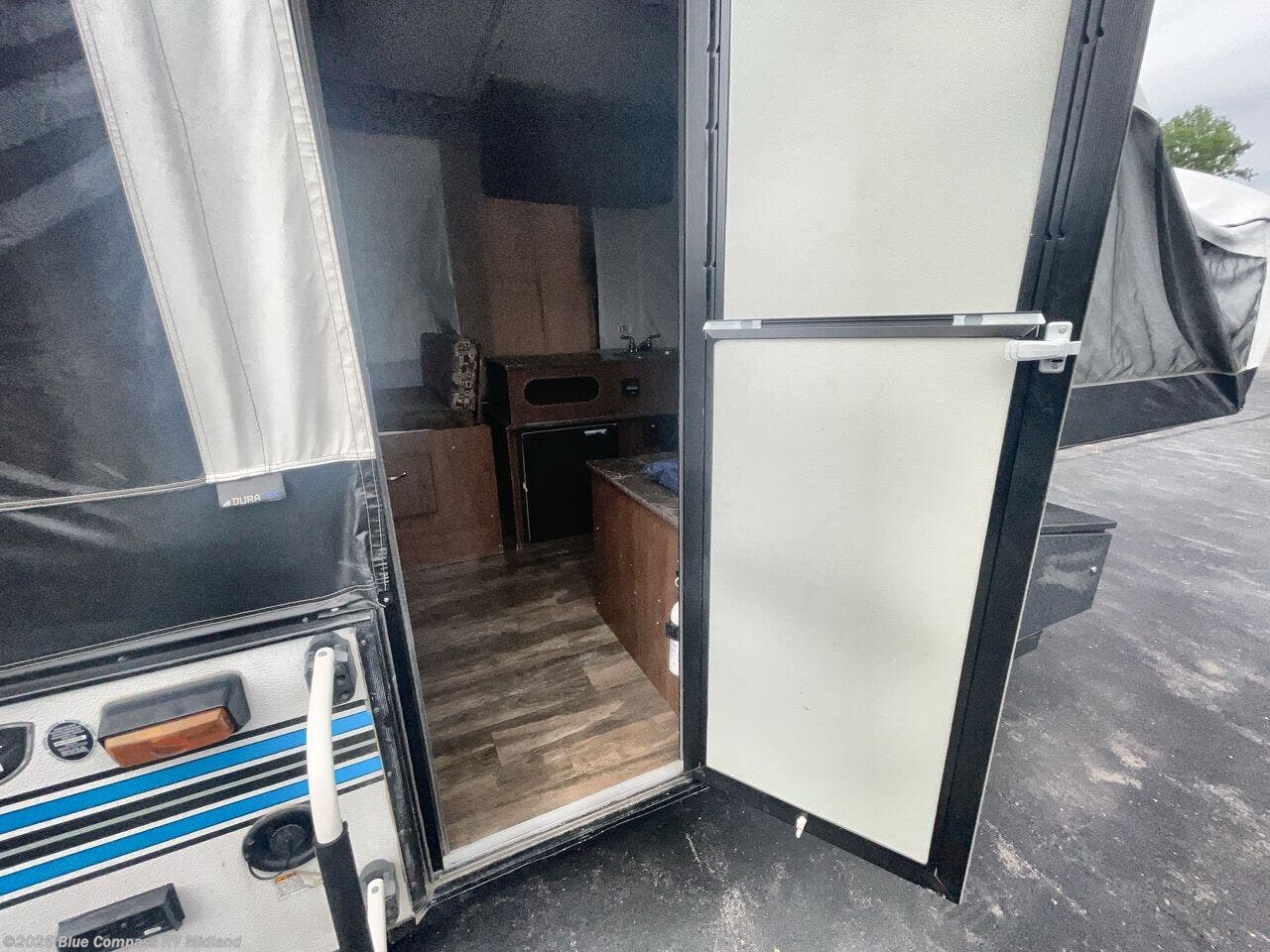 Enjoy the sleeping space that the rear queen tent bed and front king tent bed offers. As you enter this model, to the left there is a sofa which can easily convert at night for additional sleeping spots. To the right of the entrance you will find a storage cabinet.
