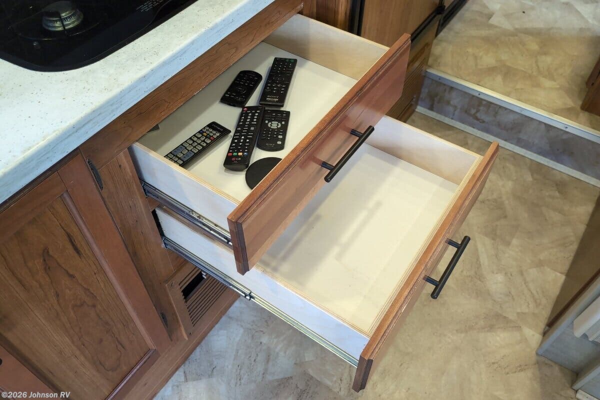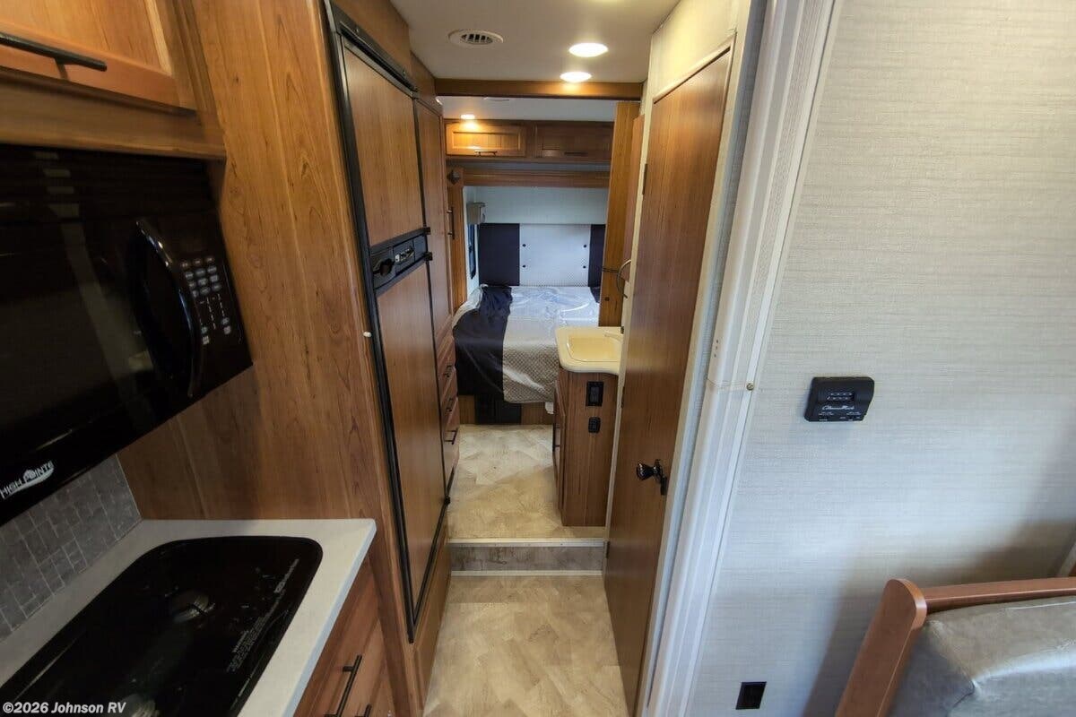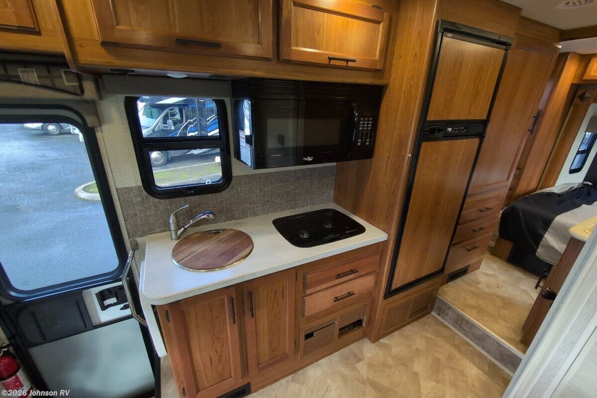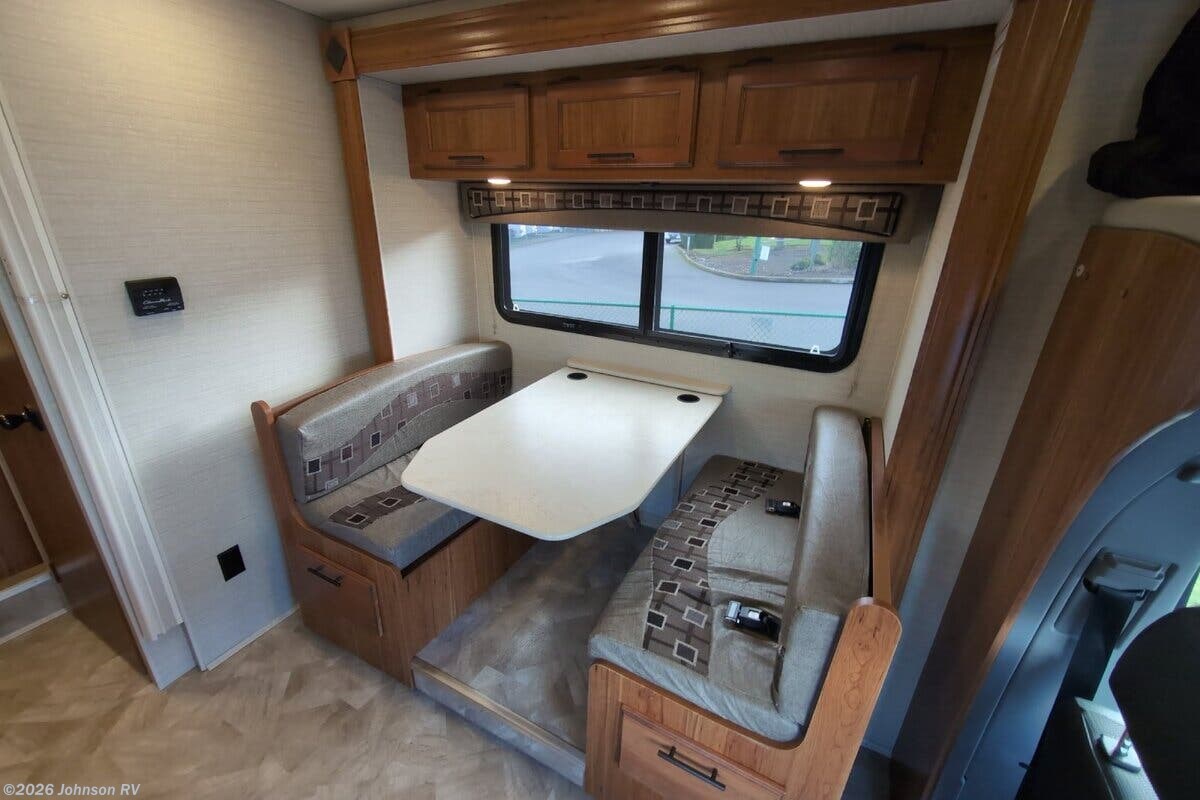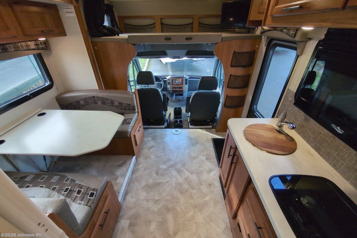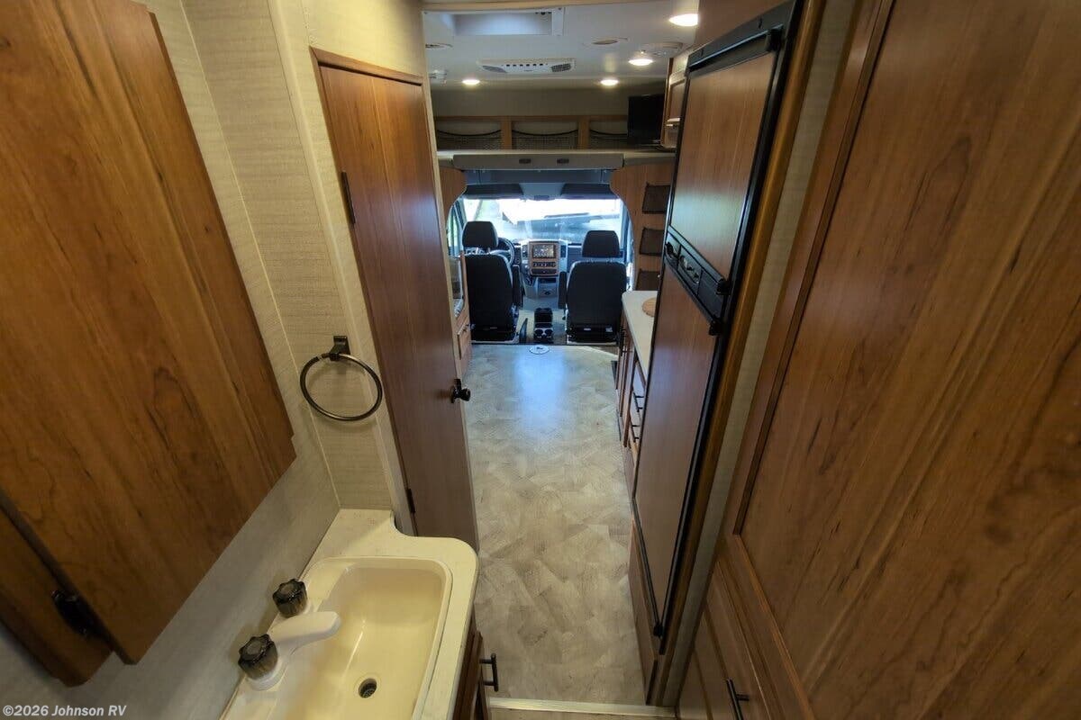Features Include: 170-inch Wheelbase, V6 Turbo EFI Diesel, 220-Amp Alternator, Swivel Cab Seats, Running Boards, Power Entry Step, Keyless Cab Entry, 83-inch High Ceiling, Soft Vinyl Ceiling, Linoleum Flooring, Frameless Windows, Wooden Sink Cover, 2-Burner Cooktop, Flush Range Cover, Entertainment System, Satellite Dish Prep, Glass Shower Door, 12v House Battery, 60-Amp Converter, 13.5k AC, TPO Laminate Roof, Stabilizer Jacks