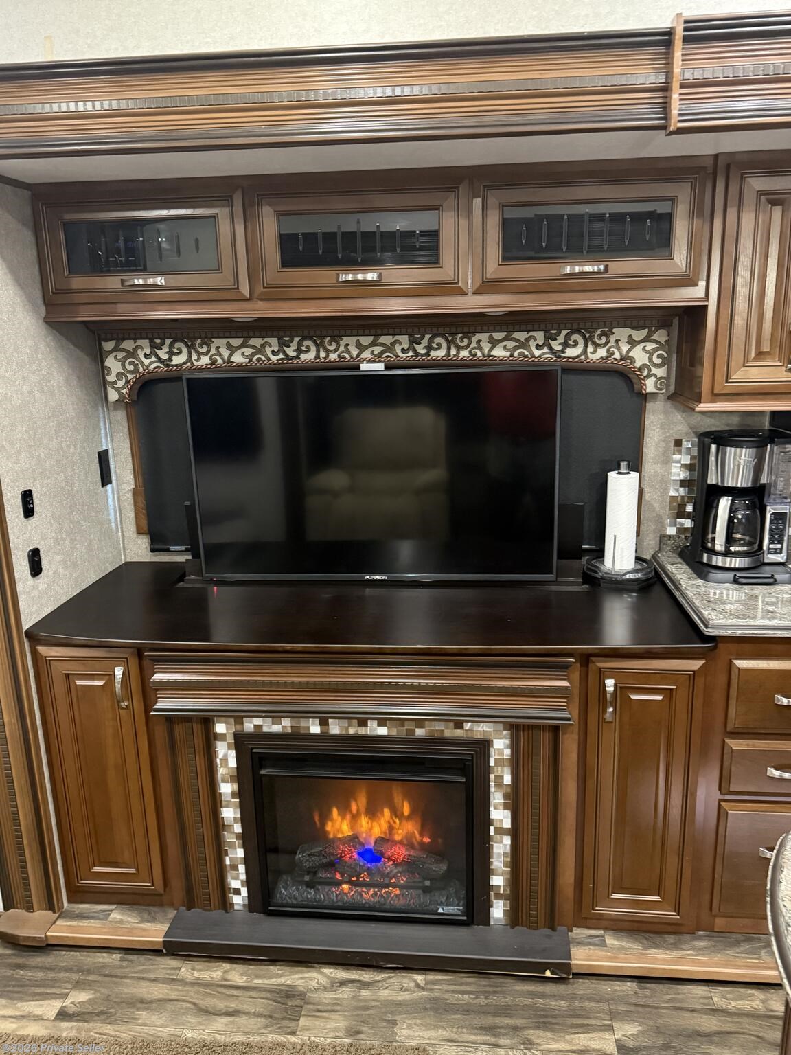 Unit was bought brand new. It has factory painted exterior (no stick on decals). It has five brand new 16 ply tires including spare with less than 500 miles on them. Rear Den area has been remodeled using Lazyboy recliners and reclining sofa to replace original love seat and sofa. Lots of beautiful cabnetry arond entite den for staorage. Fireplace, residential refrigerator, built in vacuum system, two TV's, Temperpudic bed topper for King Size bed. Large Master Bath with twin vanities, large closet, and Floor to ceiling cabinet for towels, sheets, etc. Half bath located midway RV with toilet, vanity and two cabinets. Portable pellet grill and all sewage hoses and fittings will be included. Twin Awnings, large side Storage area that is see thru from both sides, additional front storage with full width acess door.