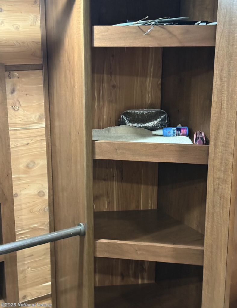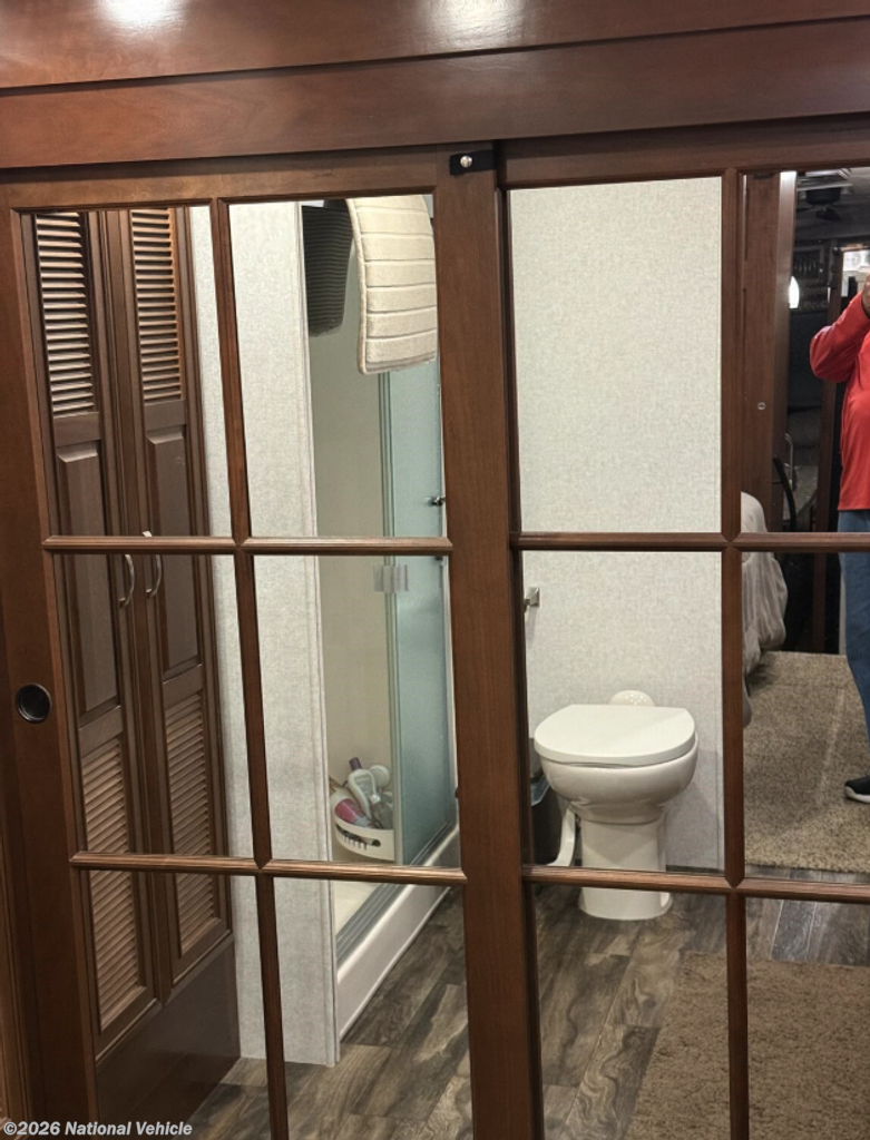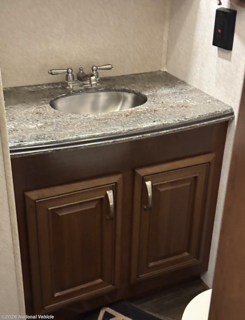 Midway through the coach you?ll find a convenient half bath, complete with toilet, vanity, and two storage cabinets, making it perfect for guests without needing to enter the master suite.