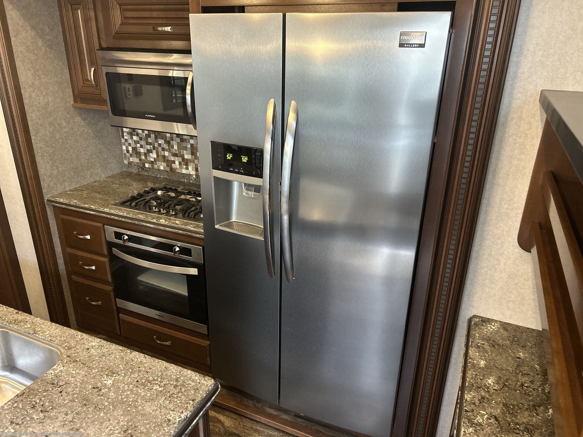 Looking for lots of space? Then you will find it inside this FIVE slide Jayco Pinnacle 38FLSA fifth wheel with dual entries, plus a full wall entertainment center with a TV and Ledgestone surround fireplace.