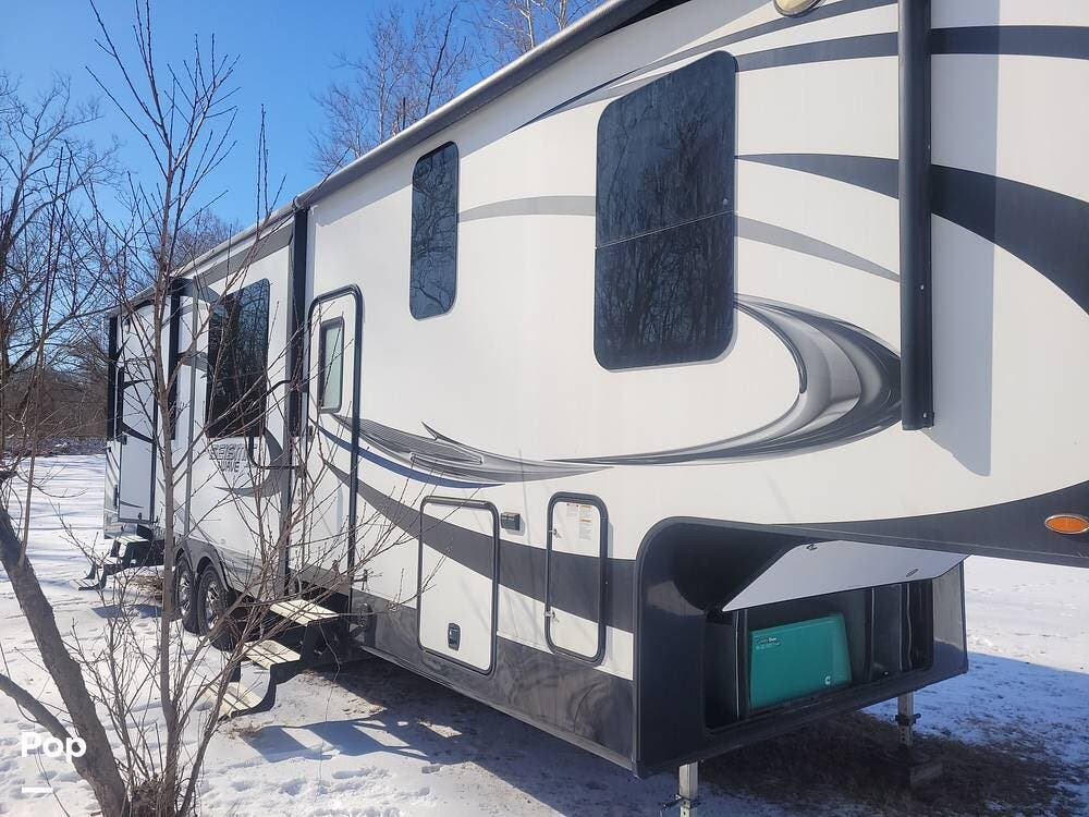 2017 Seismic Wave 355 5th Wheel Toy Hauler with 12.5' garage and 1.5 baths.