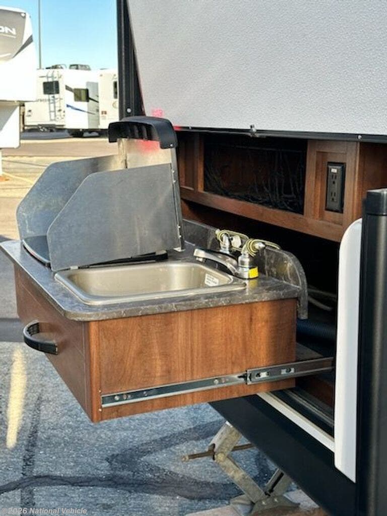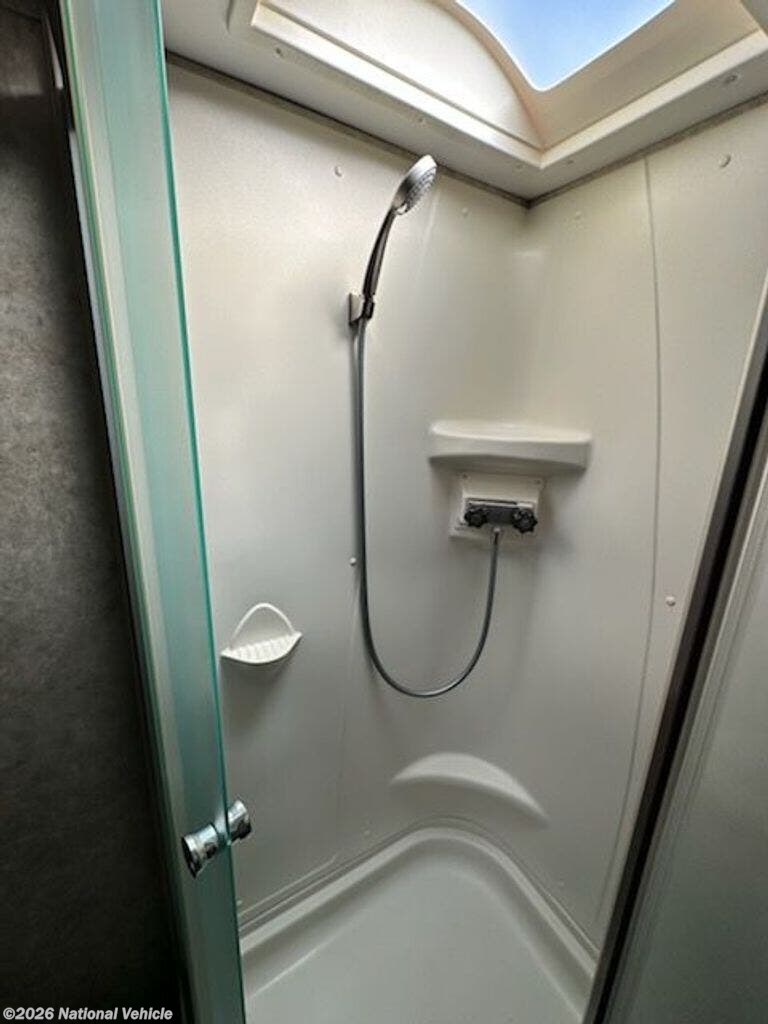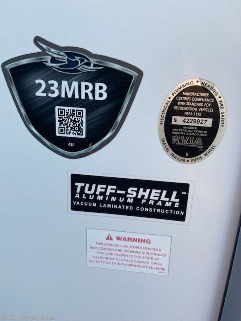 Inside, the 23MRB features a versatile Murphy bed floorplan?giving you the comfort of a full walk-around bed at night and a roomy sofa during the day. This clever setup opens the living area, creating a bright, comfortable space for relaxing or entertaining. The rear bathroom spans the full width of the trailer, offering a large shower, ample storage, and generous counter space rarely found in a unit this size.