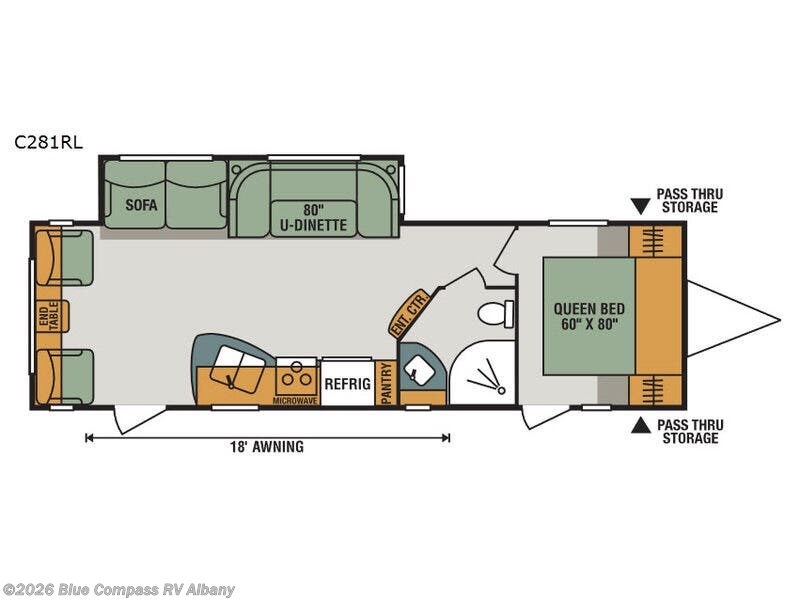 You are sure to enjoy the exterior 18' awning, and the front exterior pass though storage compartment for your outdoor gear.
