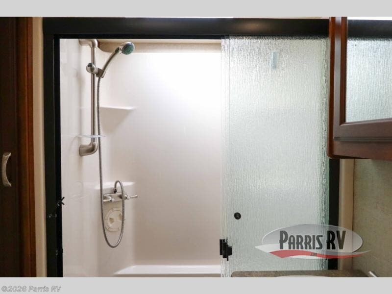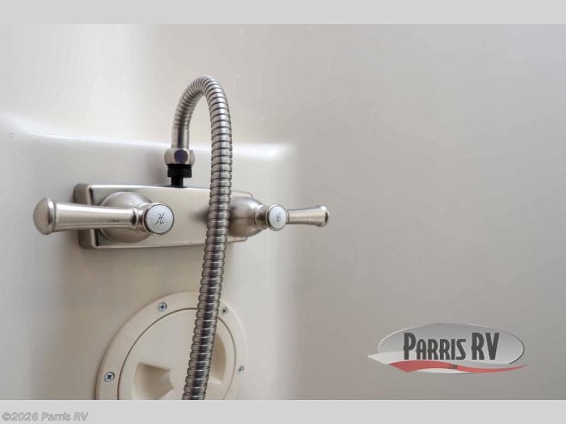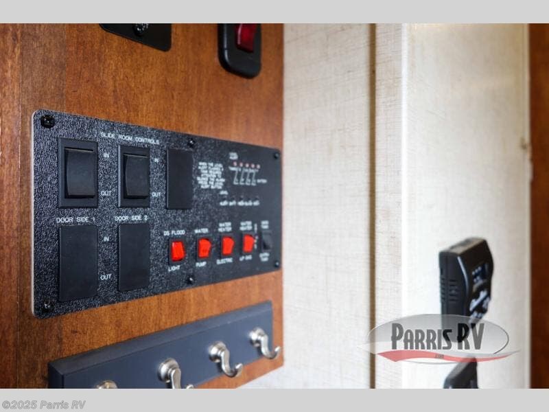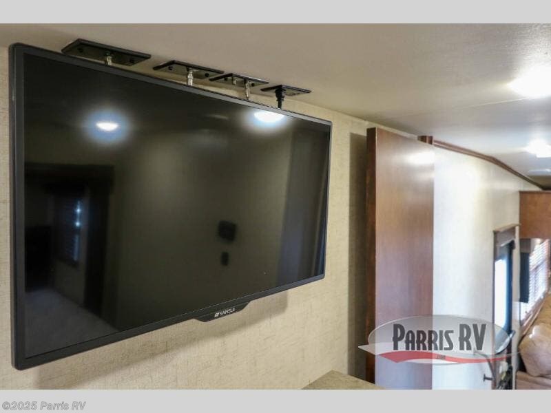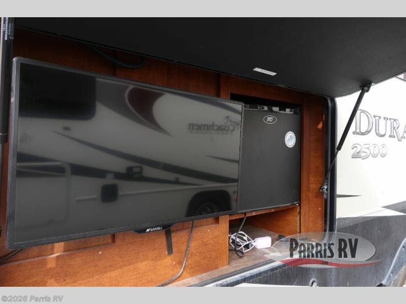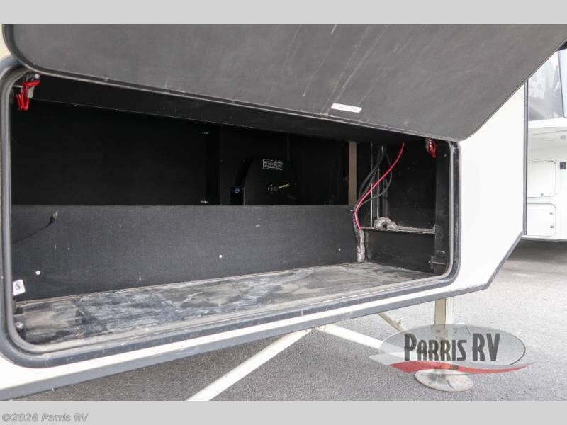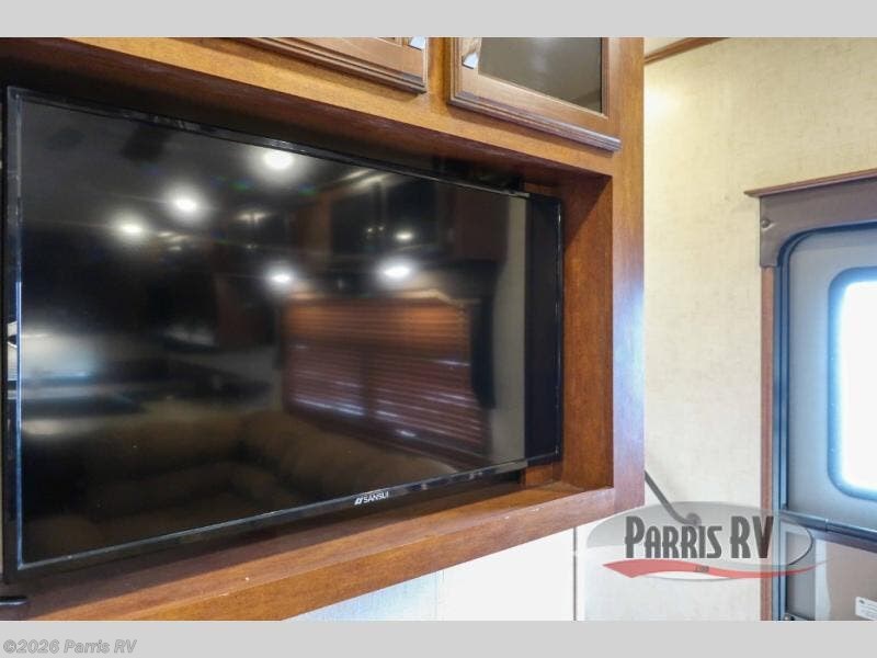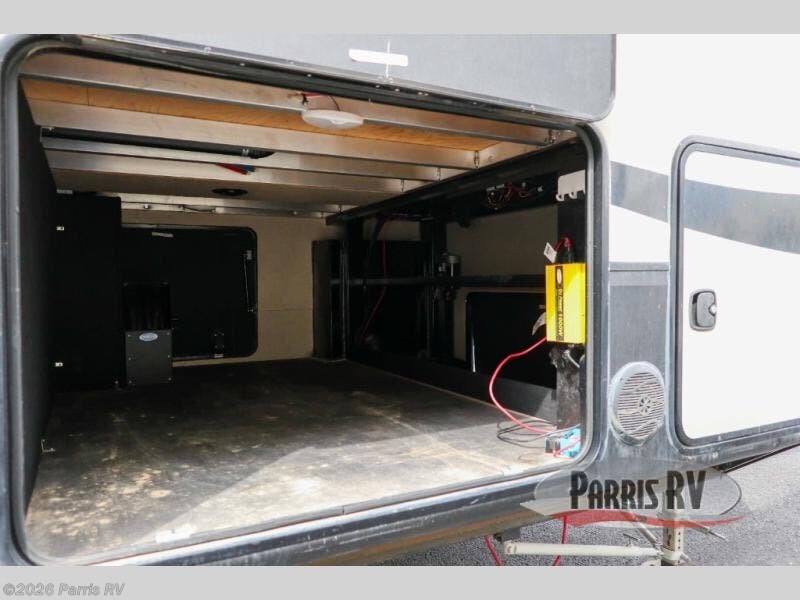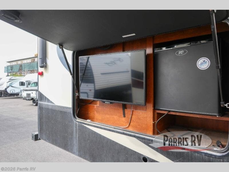 Outside there is an entertainment center with a 32" TV and refrigerator. Let your next tail gate party start here! You will also find extra storage with the pass through compartment, and much more!