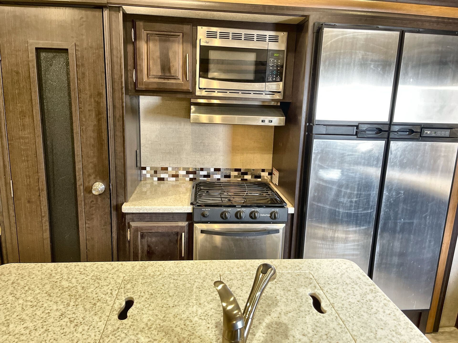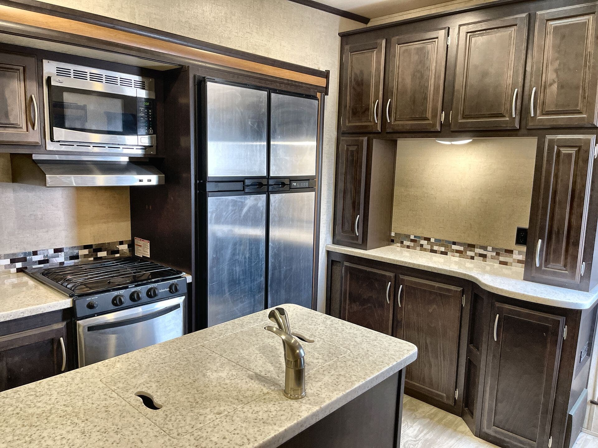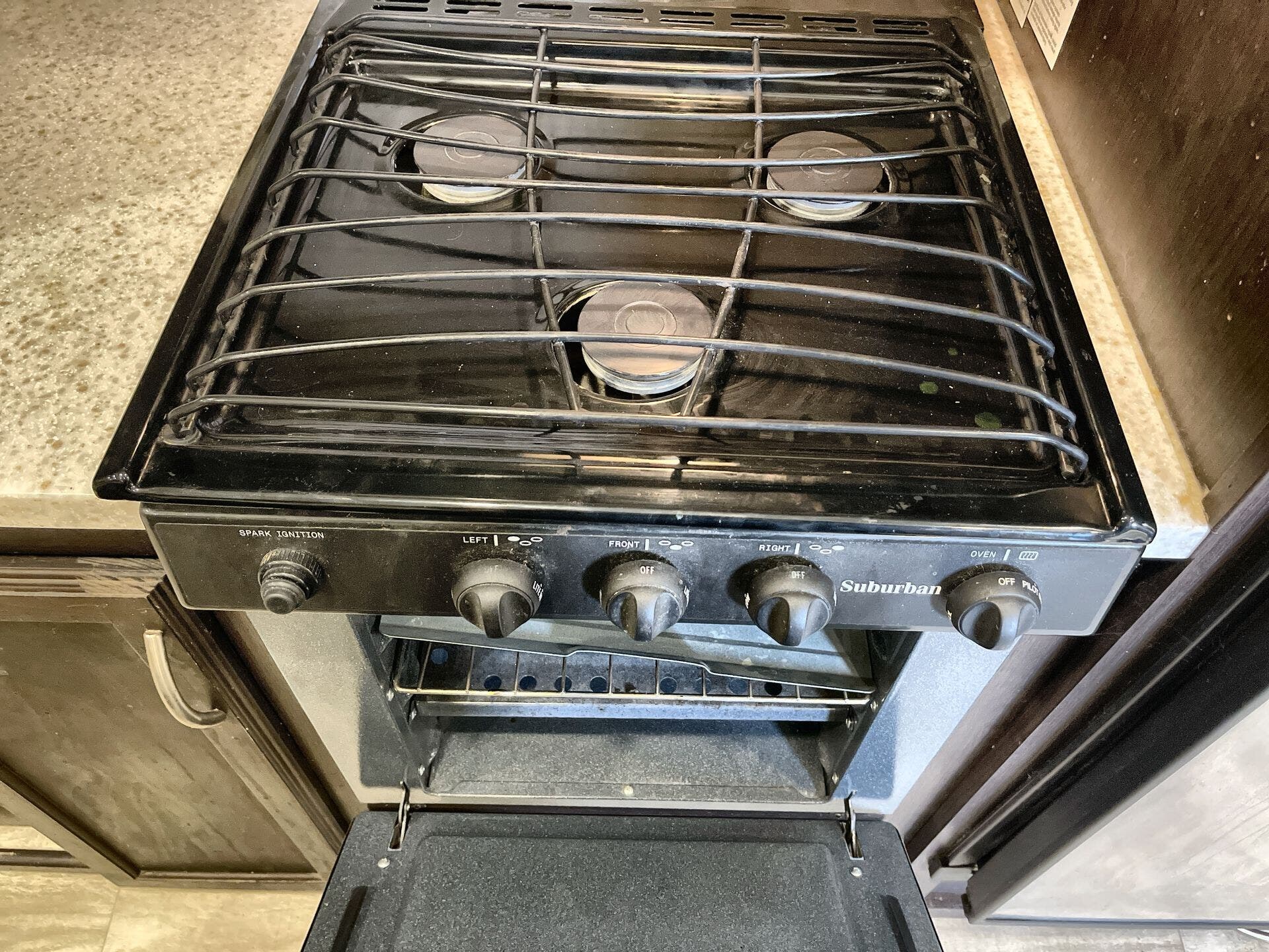 - Full kitchen amenities: microwave, oven, refrigerator, and stove top burner for home-style cooking on the go.