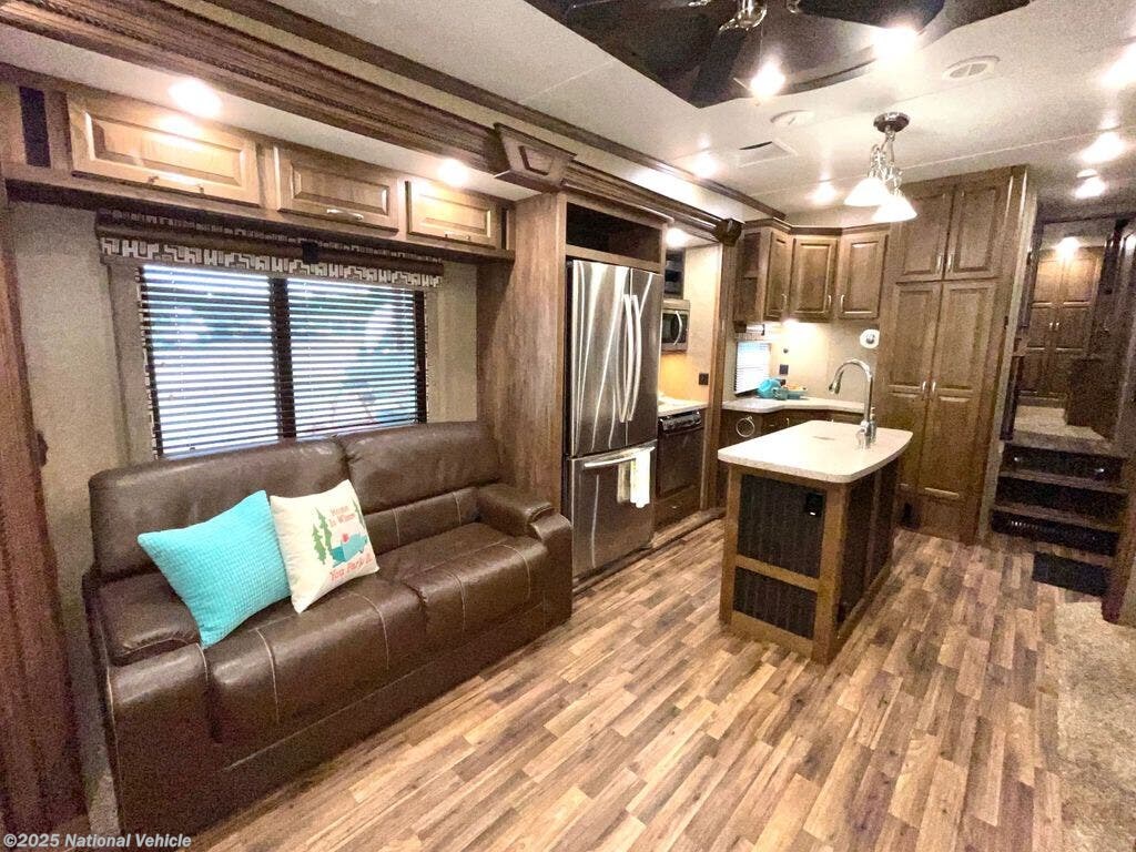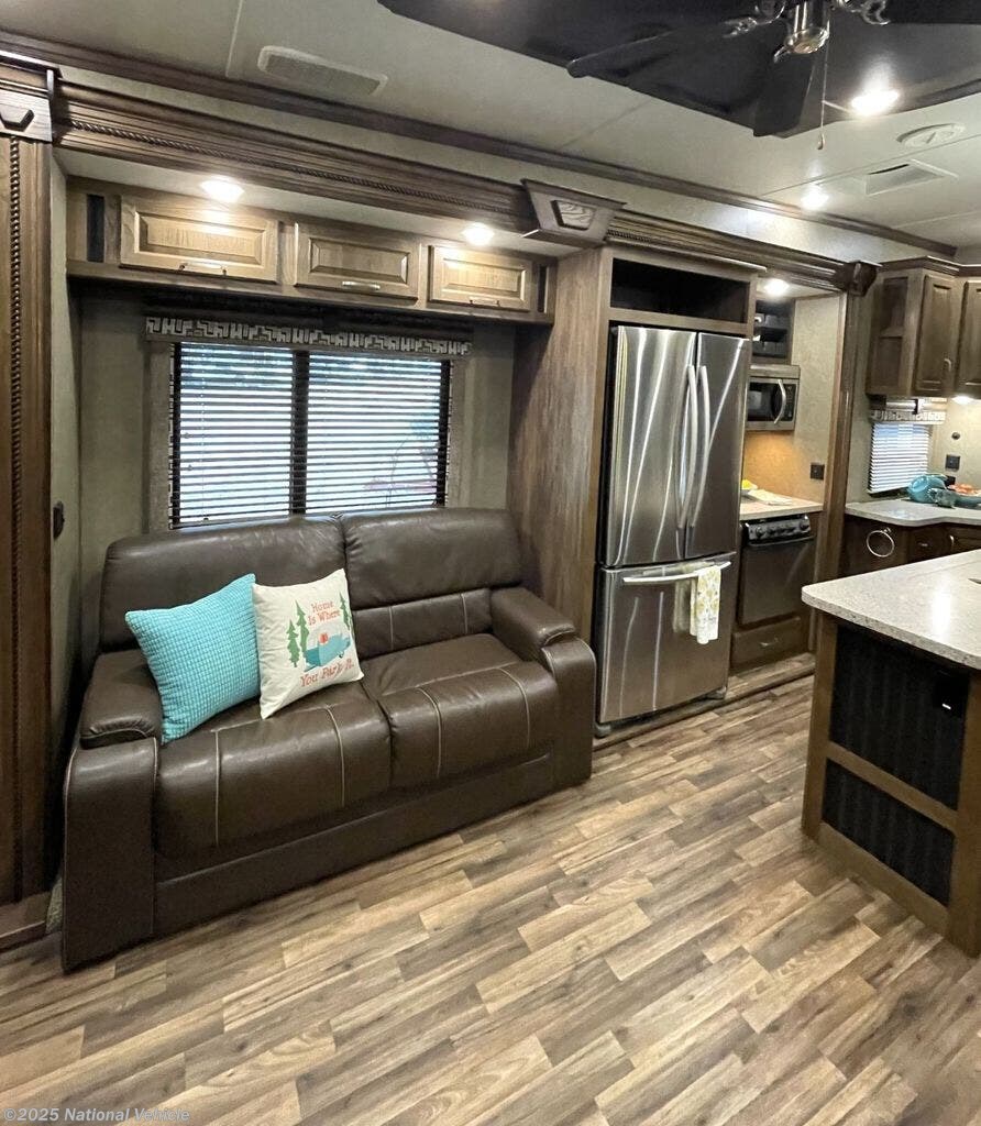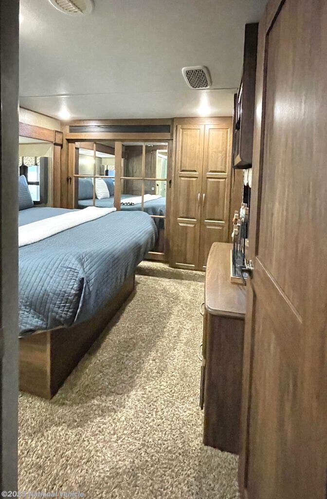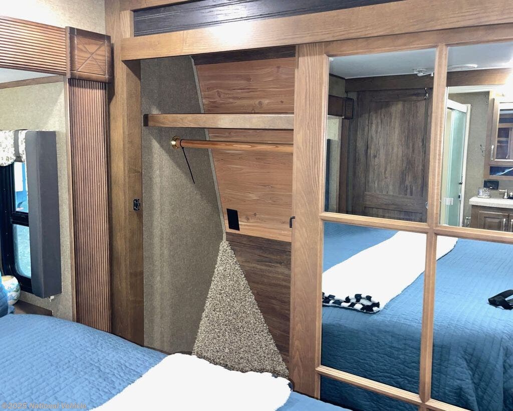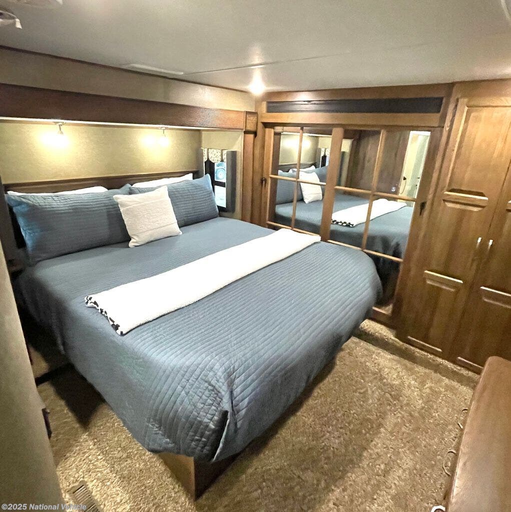 Original owner, lightly used, and always stored covered, this pre-Covid luxury 5 th wheel is quality built and has been meticulously maintained. It is ready to camp with new tires, batteries, brakes, and Jensen In-Command System as well as a recently serviced 5500 Onan generator. Immaculately clean, feel the spaciousness in this open floor plan. Opposing slides allow for a large living area, kitchen island, and 18cubic foot refrigerator. A third bedroom slide provides space for a king bed, large, full-sized, cedar-lined closet, dresser, and washer/dryer hookups. This camper is ideal for full-time and four season living.