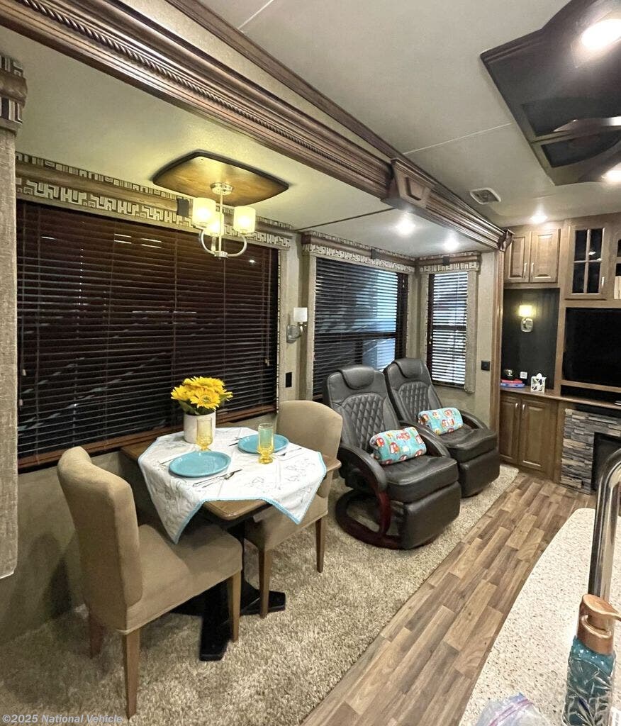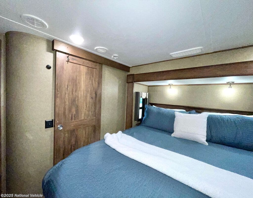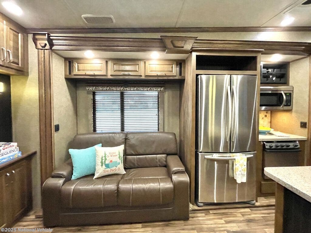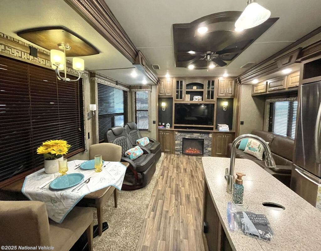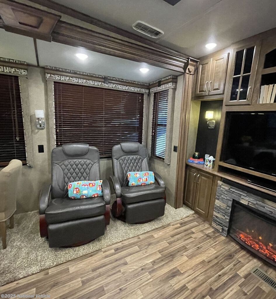 Original owner, lightly used, and always stored covered, this pre-Covid luxury 5 th wheel is quality built and has been meticulously maintained. It is ready to camp with new tires, batteries, brakes, and Jensen In-Command System as well as a recently serviced 5500 Onan generator. Immaculately clean, feel the spaciousness in this open floor plan. Opposing slides allow for a large living area, kitchen island, and 18cubic foot refrigerator. A third bedroom slide provides space for a king bed, large, full-sized, cedar-lined closet, dresser, and washer/dryer hookups. This camper is ideal for full-time and four season living.
