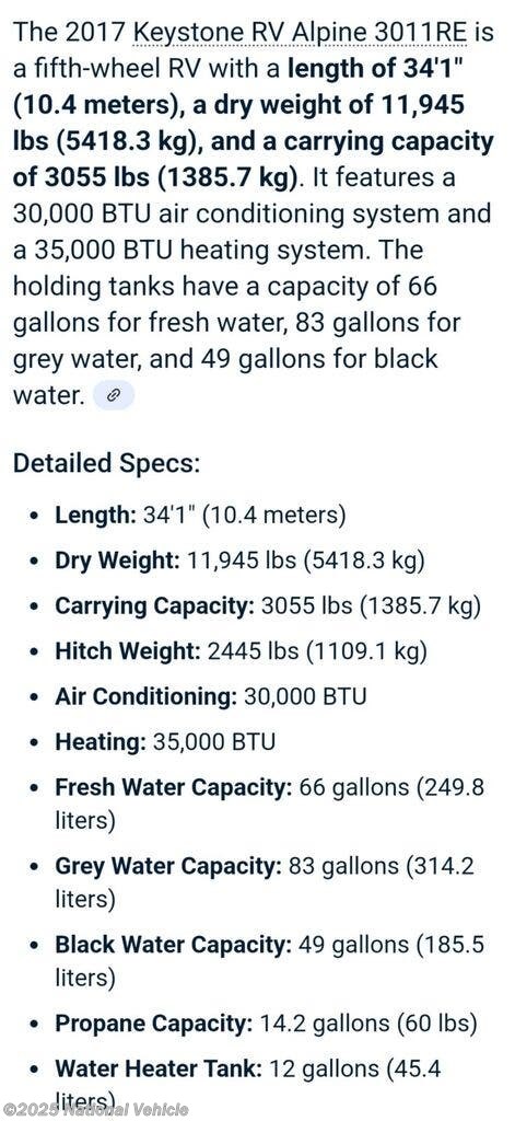 Looking to buy a 2017 Keystone Alpine Fifth Wheel RV?