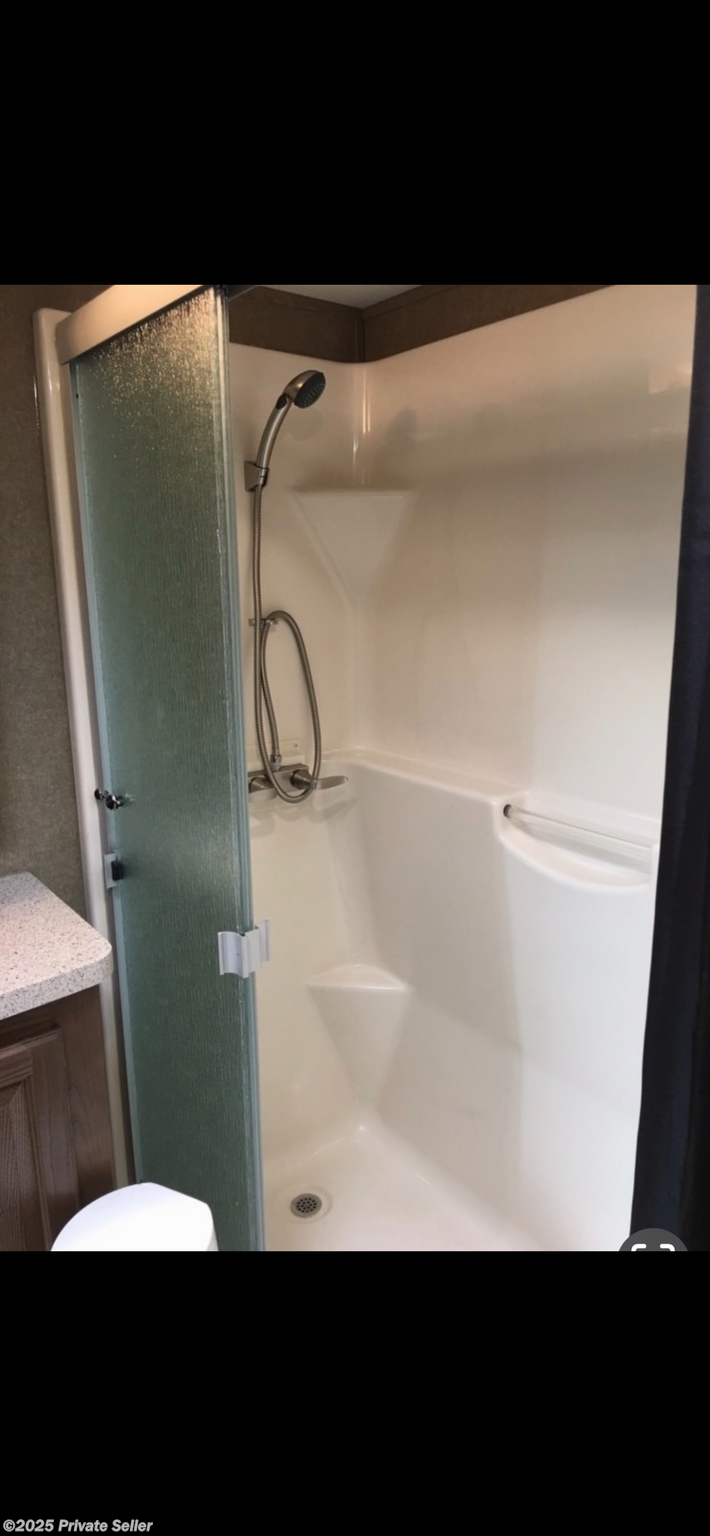 Ceiling Fan, Fireplace, Glass Shower Door, Heated Floor, Hide-A-Bed, Island Kitchen, Leather Furniture, Living Quarters, Medicine Cabinet, Mini Blinds, Overhead Cabinetry, Pantry, Queen Bed, Queen Mattress, Self Contained, Shower, Sofa Bed, Toilet, Vanity, Washer/Dryer Prep