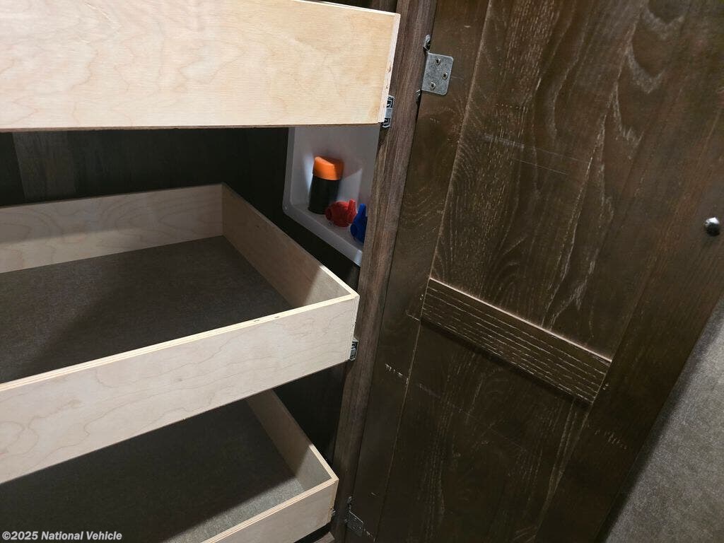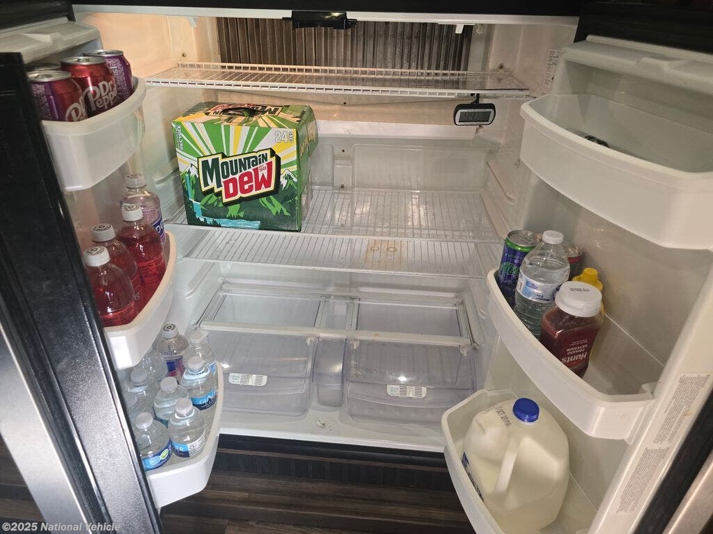 Inside, you?ll find solid Corian countertops, a kitchen island with double sink, 3-burner stovetop, oven, microwave, and a large refrigerator/freezer. There are washer/dryer hookups, plenty of cabinetry, and day/night shades throughout.