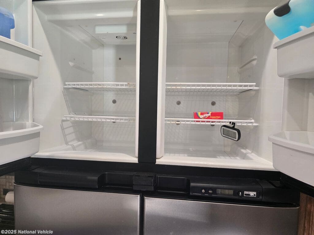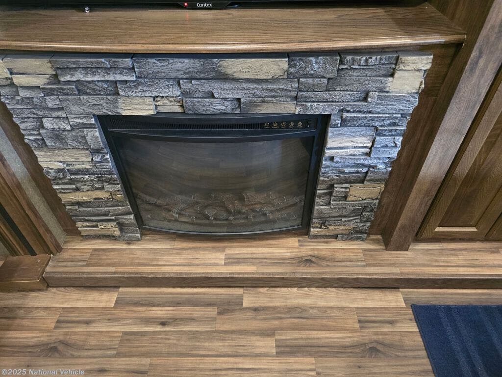 Equipped with auto power leveling, four spacious slide outs, and a new power retractable awning, this coach is designed for easy setup and exceptional comfort. The dual A/C units and furnace ensure climate control in all seasons, while the electric fireplace provides both cozy heat and ambient lighting for a home-like feel.