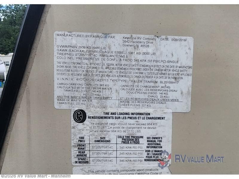 Request More Info on this 2017 Keystone Bullet Crossfire 2510BH Offered for sale by RV Value Mart - Manheim
