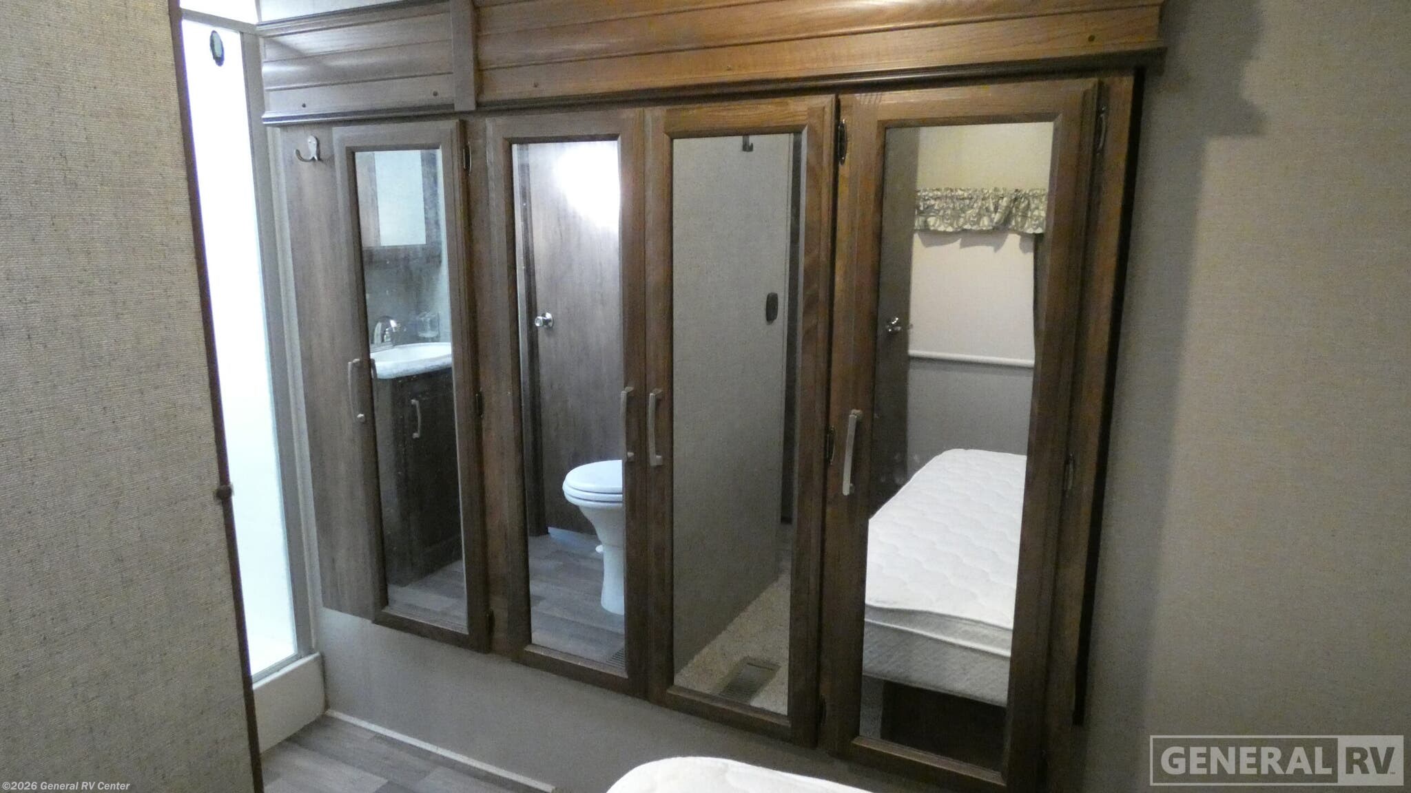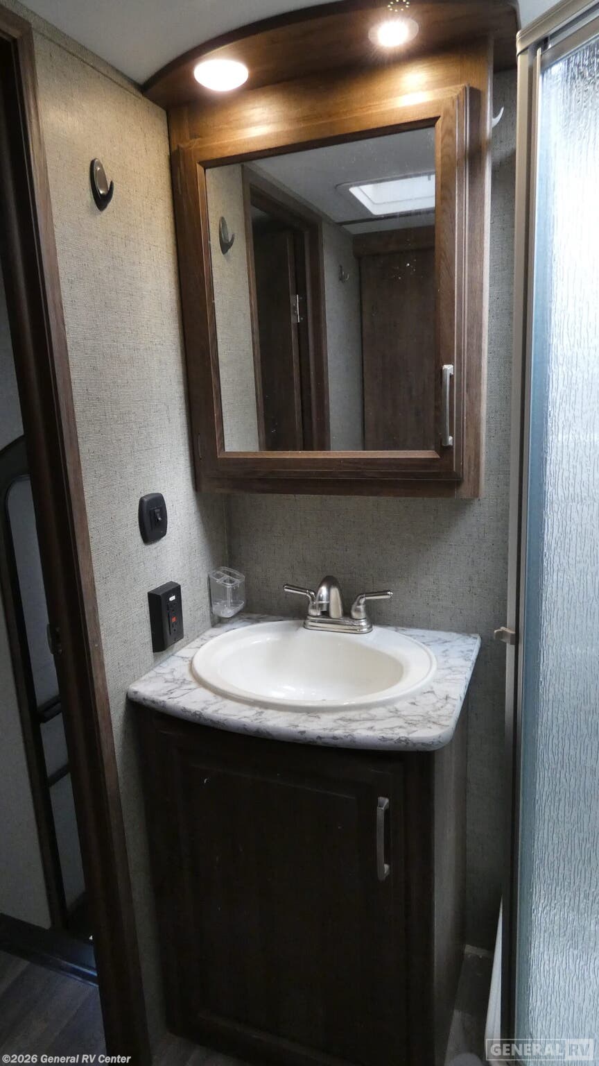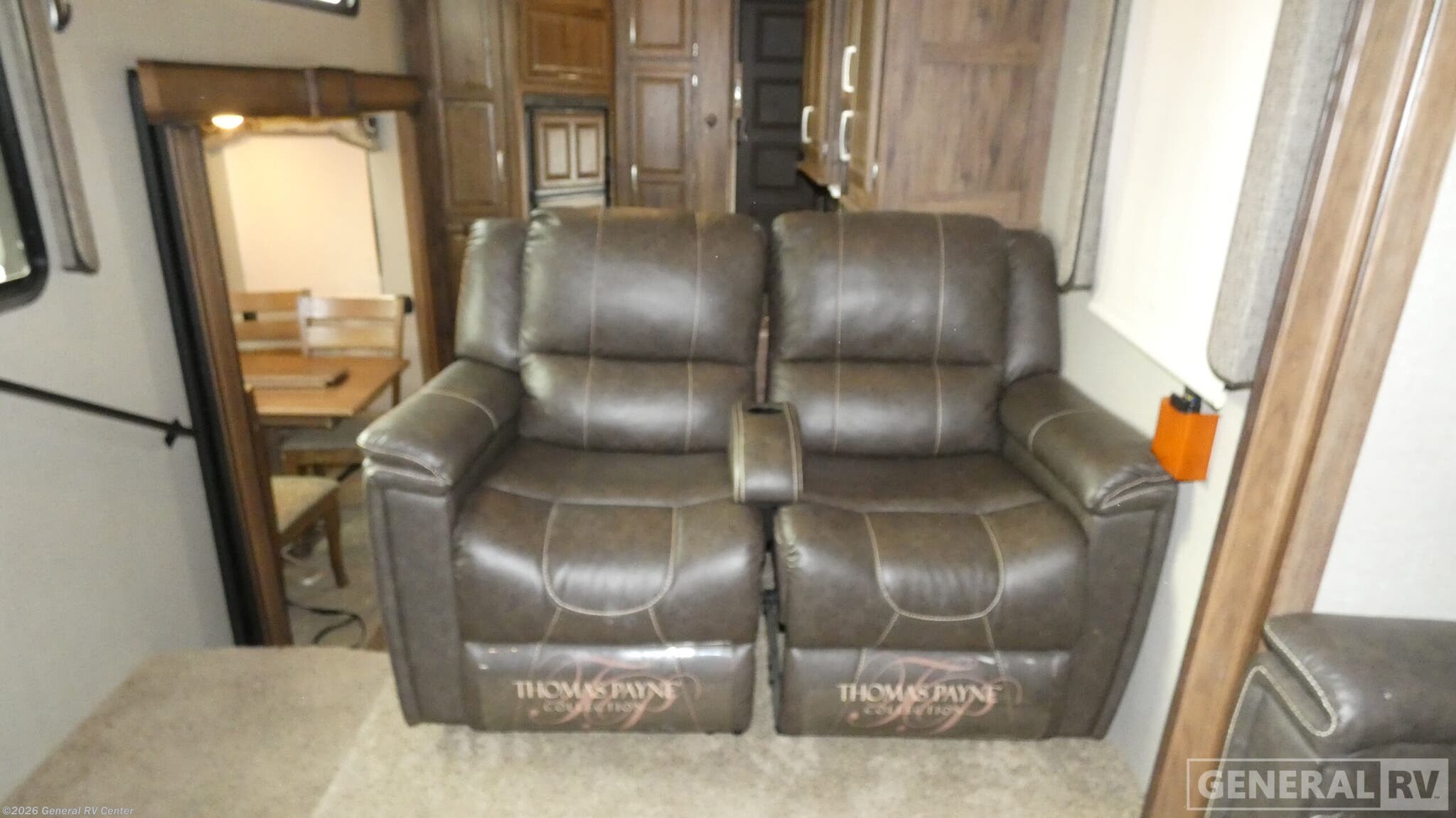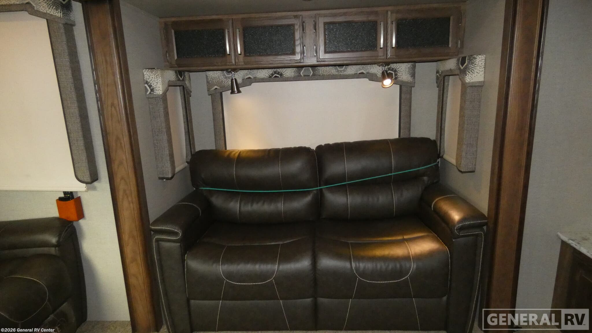 If you enjoy time away from home, you will love your time away in this Keystone Cougar 326RDS fifth wheel. This model features quad slides, a rear entertainment center, and plenty of room to entertain guests. As you enter the fifth wheel, to your left there is counter space for food prep, overhead cabinets, three burner range, and double kitchen sink. On the opposite side the road side slide has a free-standing dinette. Adjacent to the slide there is a pantry, refrigerator, and an additional pantry. Step up to the bathroom and bedroom area. The side aisle bathroom is on your left. Inside the bathroom you will find a sink, medicine cabinet, neo-angled shower, and a toilet. There is a sliding door that separates the bathroom from the bedroom. In the bedroom there is a queen bed, nightstand, wardrobe, overhead storage, and a slide with a wardrobe and linen cabinet. You can also access the linen cabinet from the bathroom. Located in the rear of this model is the living area. Here you will find dual opposing slides with tri-fold sleeper sofas and overhead cabinets. There are also theater seats with cup holders, and along the rear wall enjoy the entertainment center, and more!