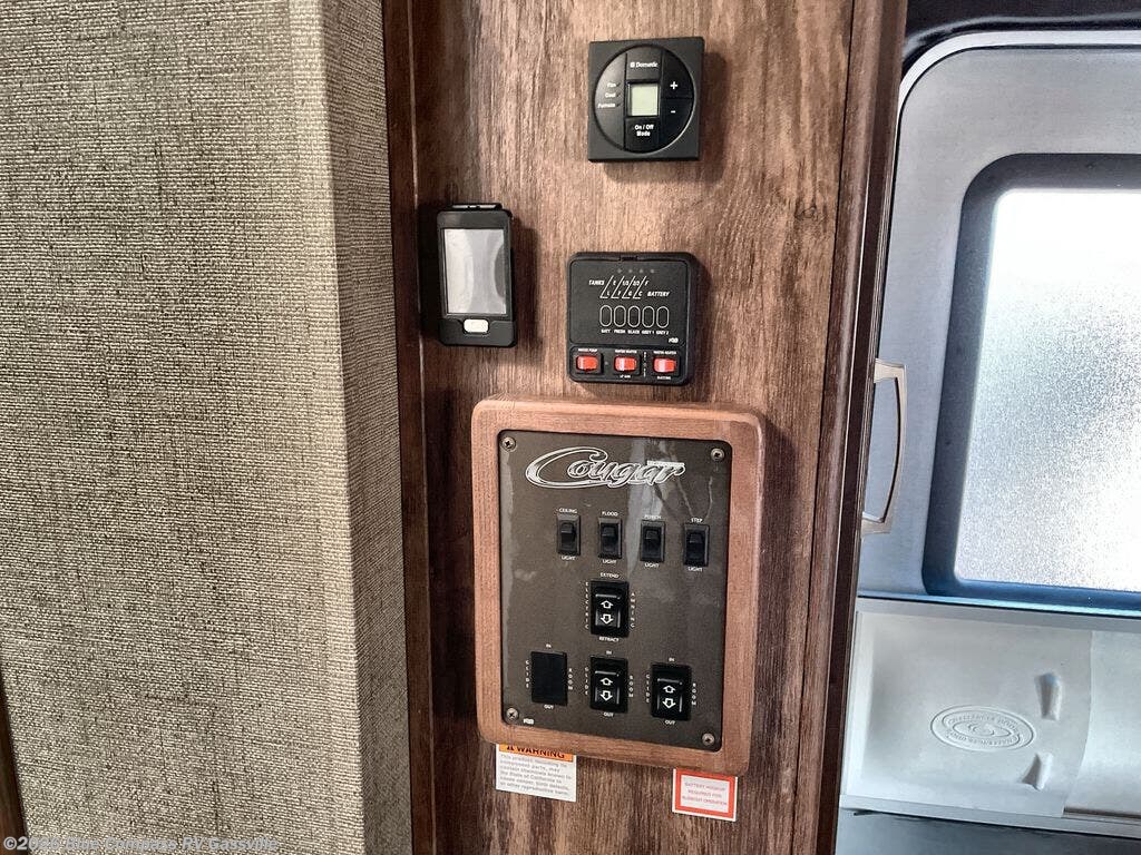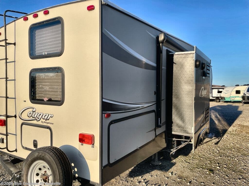This Cougar X-Lite fifth wheel 28DBI by Keystone RV features a rear bunkhouse, dual slides, a walk-thru bath, and an outside kitchen.