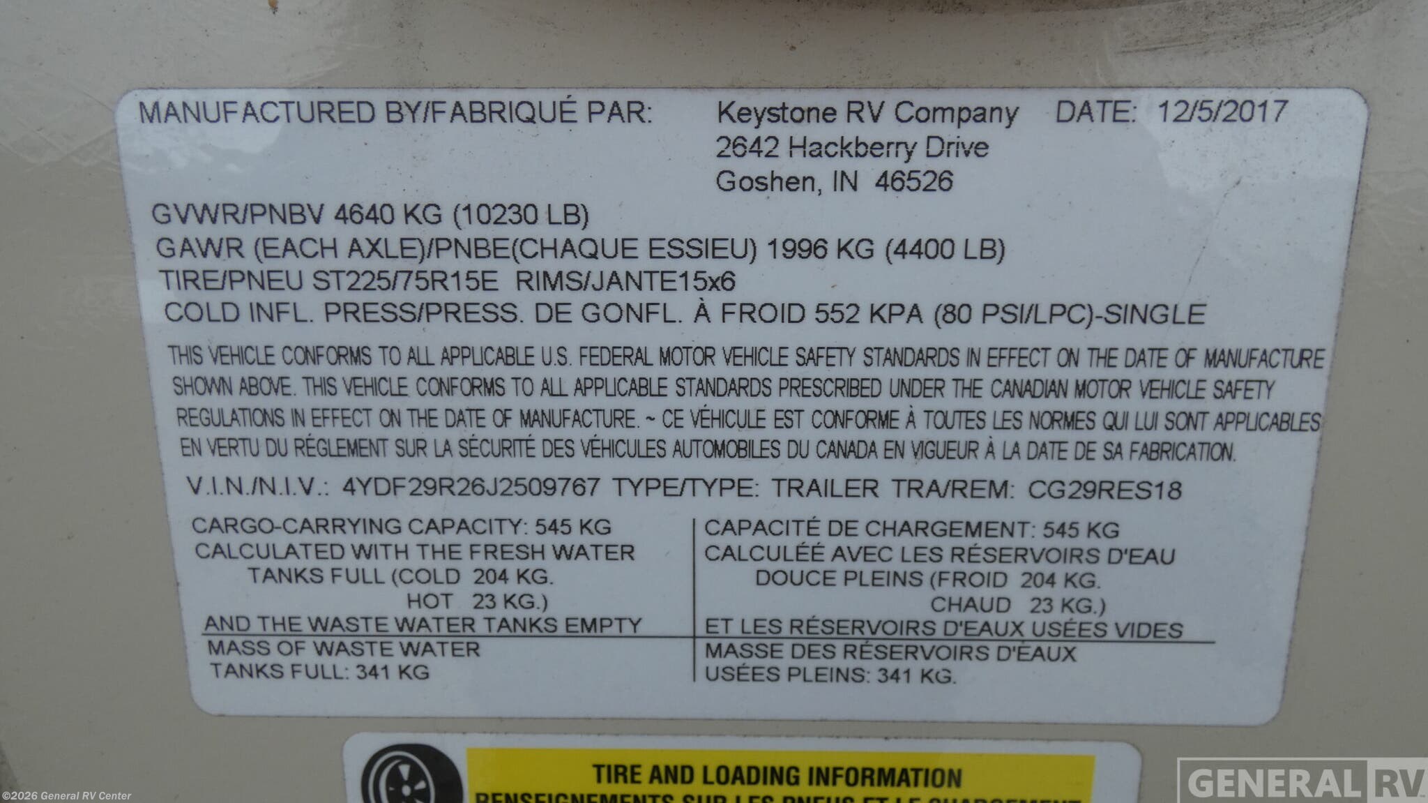 - VIN4YDF29R26J2509767