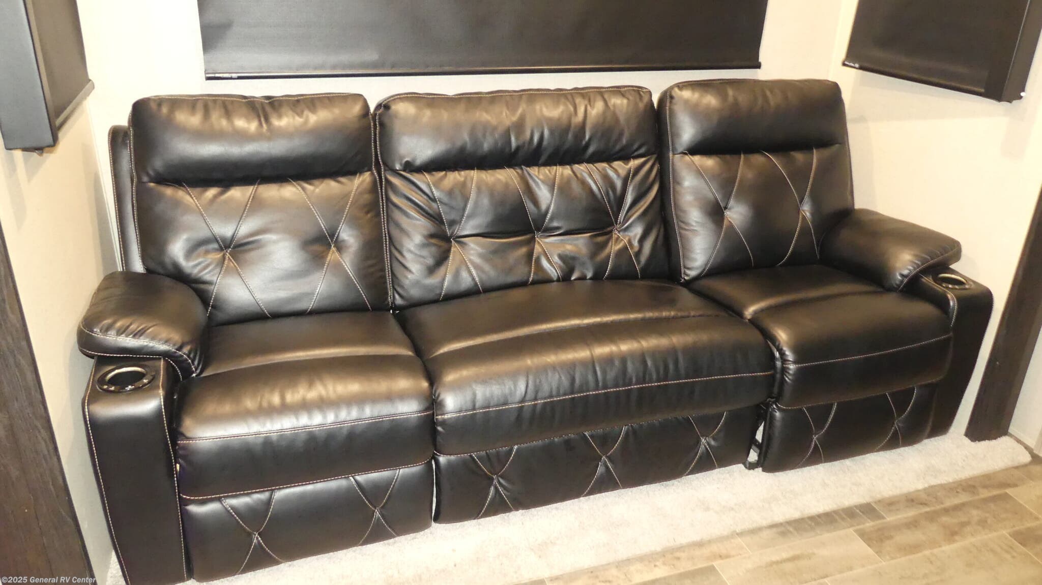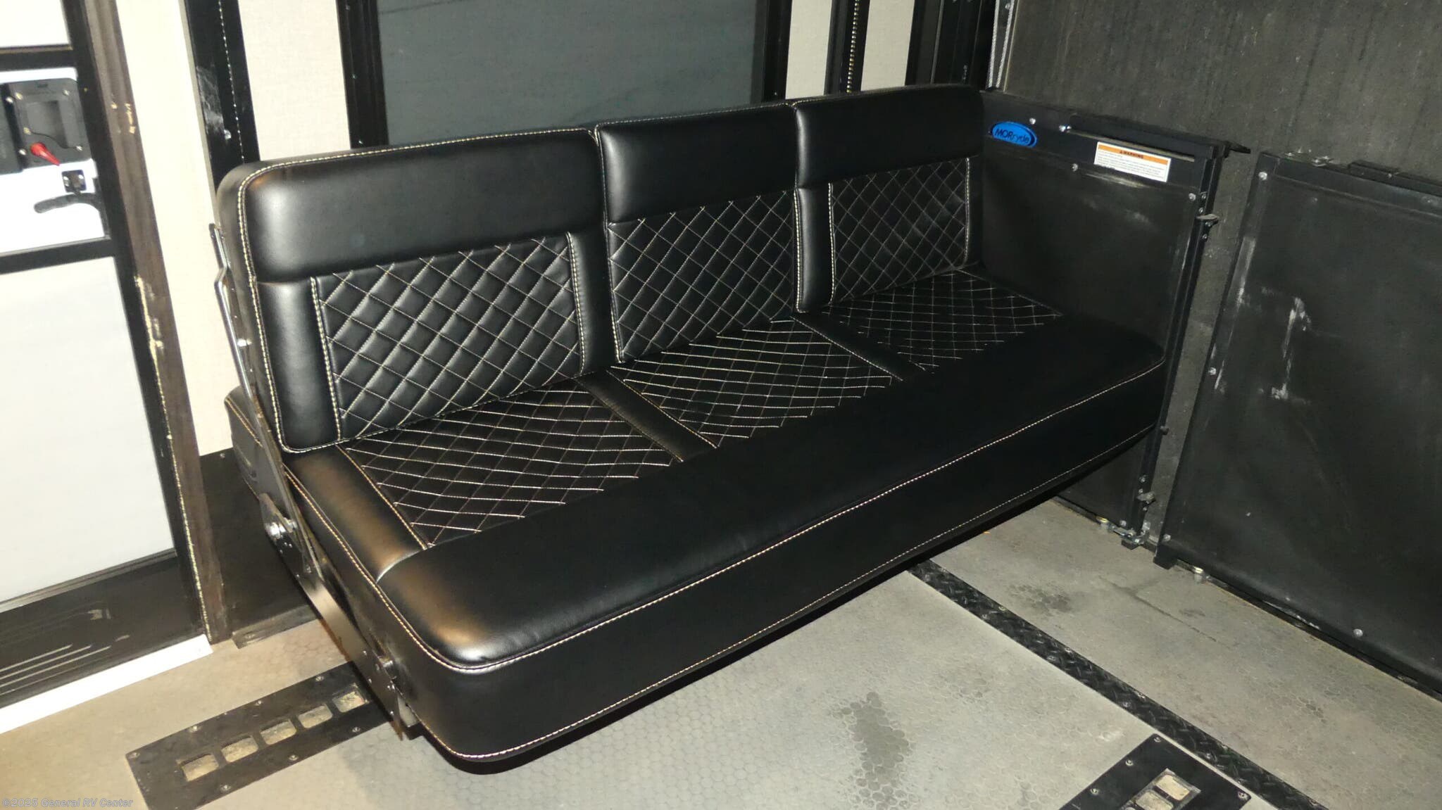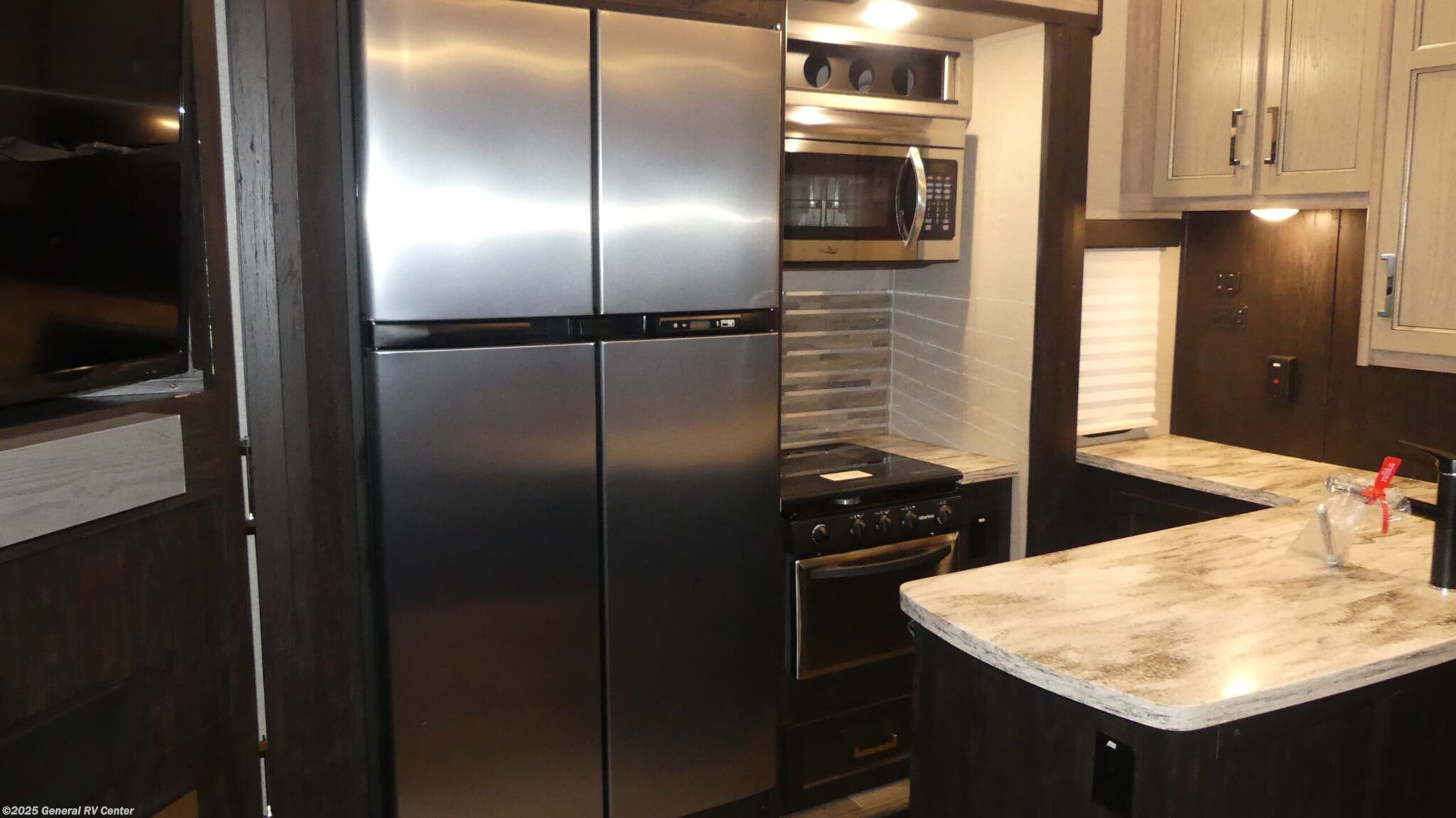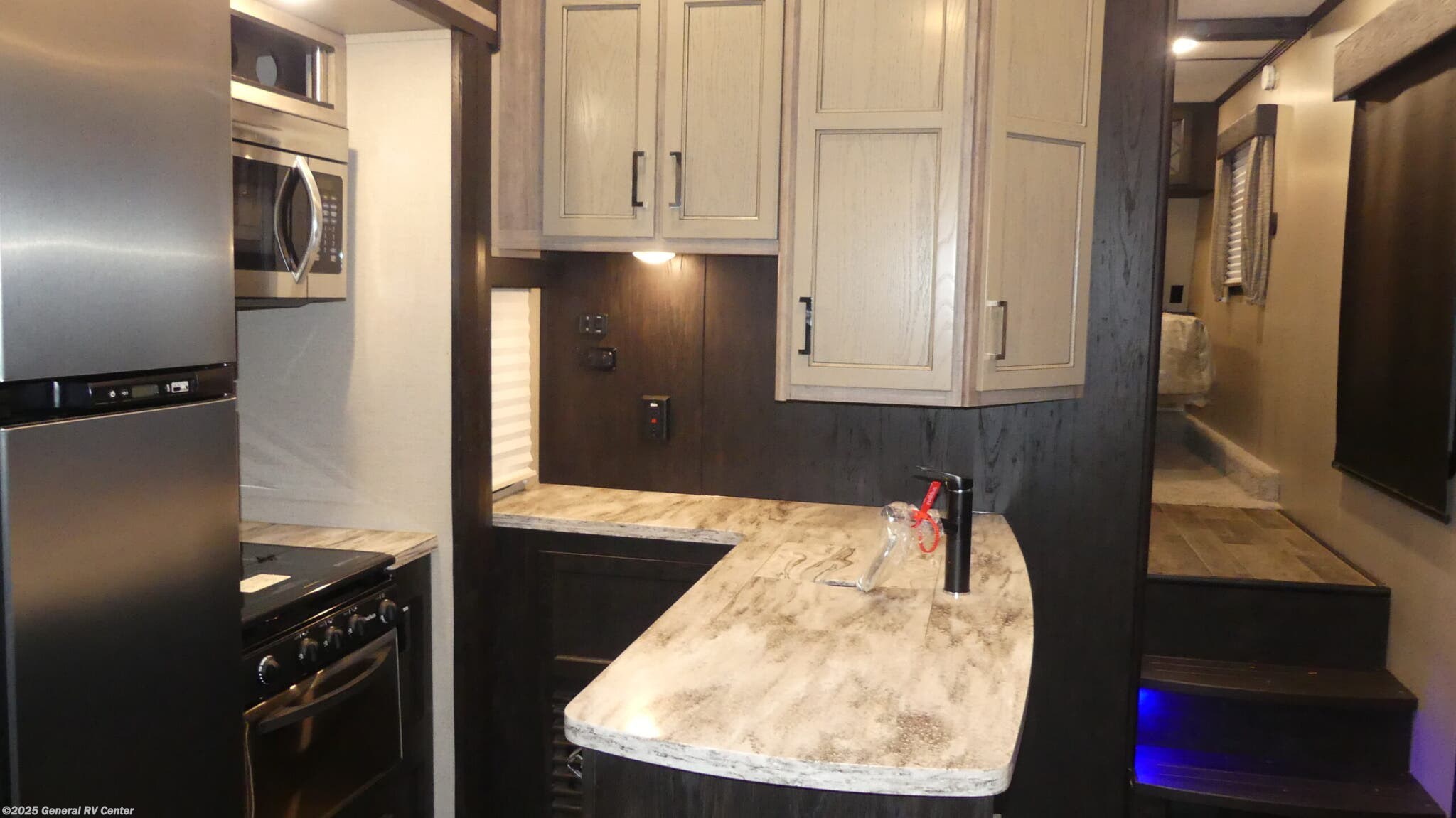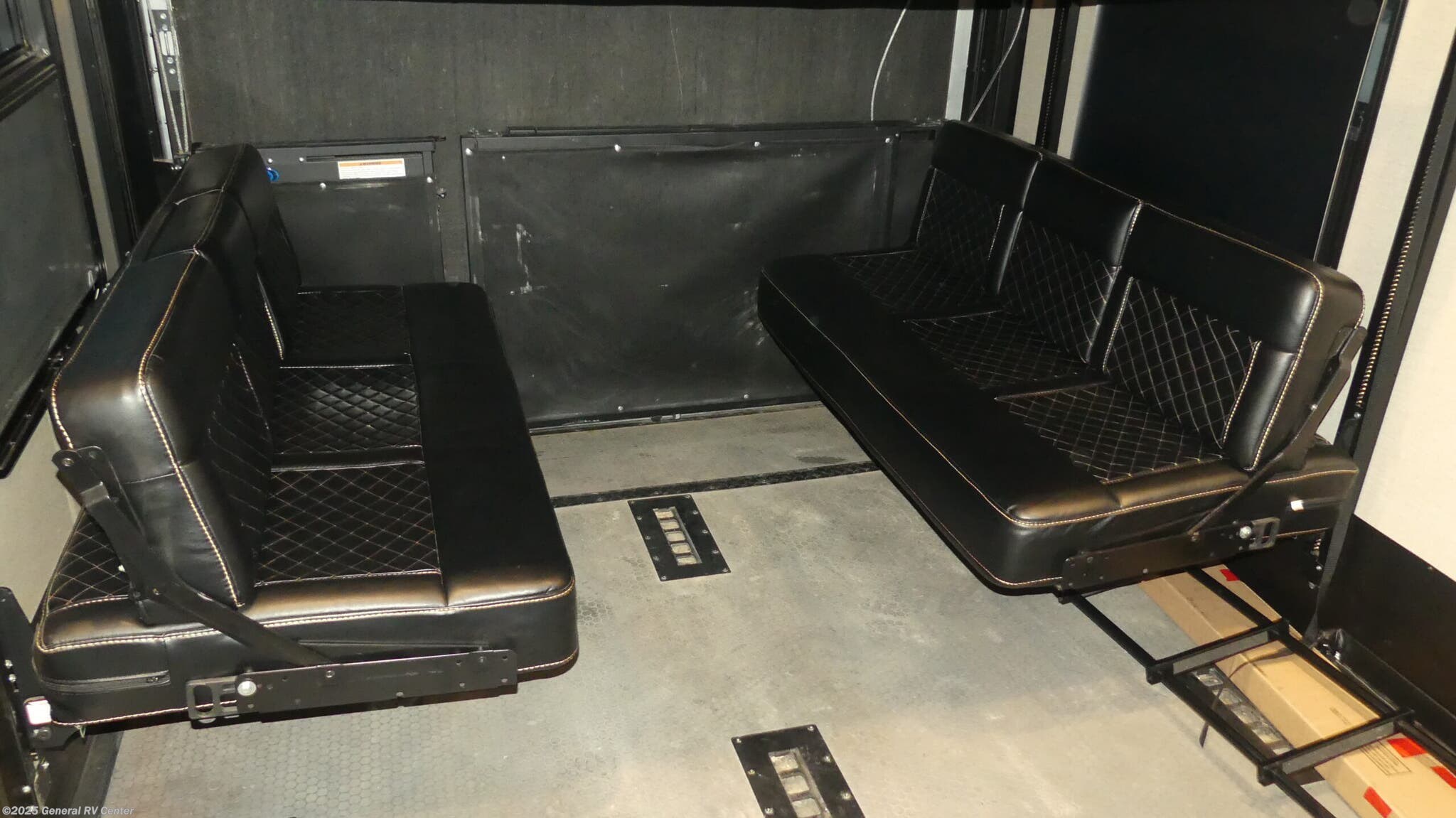 This 371 Keystone Fuzion toy hauler fifth wheel is exactly what you need for a comfortable and convenient get-a-way to the playground of your choice. That's right, pack up the big toys and head to the trails, dunes, or lakeside retreat! This unit features an 11' garage space with plenty of room for toys and a few extra friends too. Loading and unloading is a cinch with the 8' garage door. Once you are at your destination and the toys are removed the garage becomes a part of the living space with dual opposing sofas and a top queen bed that lowers from the ceiling for more sleeping space inside. There is also a loft area towards the front of the garage space that the kids will surely love. Enjoy the convenience of a half bath in the cargo, a 40" LED TV, overhead cabinets, and washer and dryer prep also. Through the door in the cargo or using the second entry door from outside you can enter the main living space with a combined kitchen and living room including two slides. The curb side slide has a large sofa. A LED TV, entertainment center, and fireplace are on the outer angled wall of the cargo half bath. The opposite slide features an 18 cu. ft. gas/electric RV refrigerator and three burner range. Next to the slide, you will find an l-shaped counter with double kitchen sink and plenty of overhead cabinets and counter area for food prep. There is also a pantry next to the refrigerator. Head up the steps to the front bed and bath. The side aisle bath features a residential shower, toilet and vanity with sink, plus a linen cabinet. The front bedroom provides a comfortable residential queen bed or choose an optional Fuzion king. There is storage on either side of the bed plus overhead cabinets too. You are sure to enjoy the flat screen TV mounted on the wall opposite the bed. You will find plenty of additional storage with a slide out wardrobe that includes drawers for more camping clothes. A 30 gallon fuel tank outside will keep everyone on the move, and there is plenty of exterior storage and dual awnings along the door side, plus so much more!