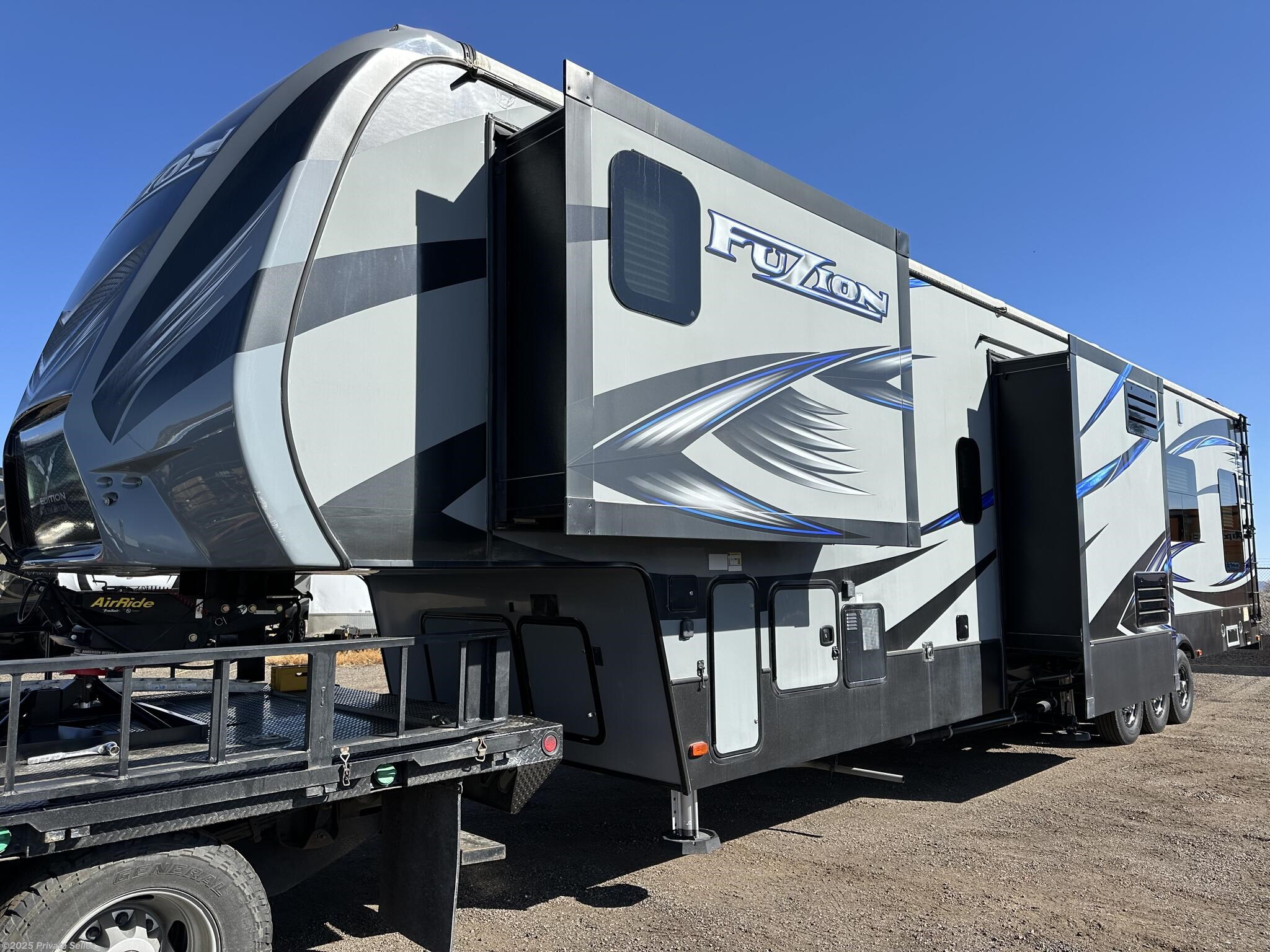 High quality 2017 Keystone Fuzion 417 10th Anniversary Edition fifth wheel toy hauler.