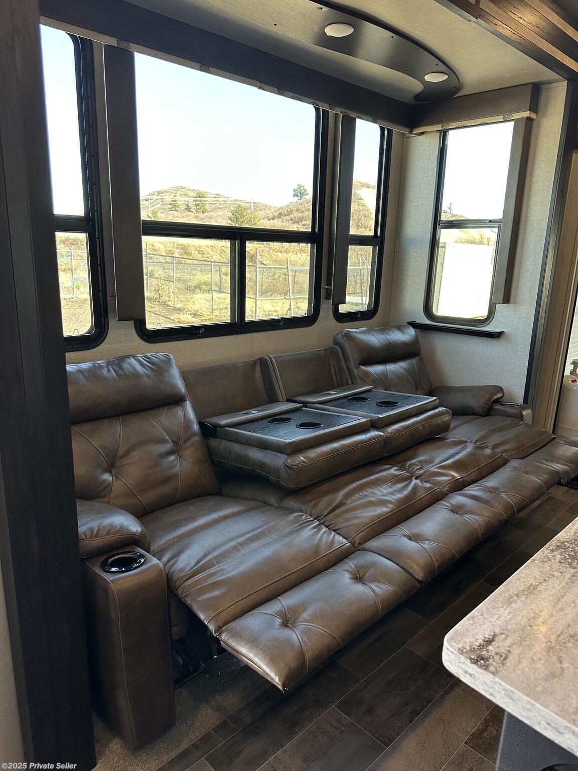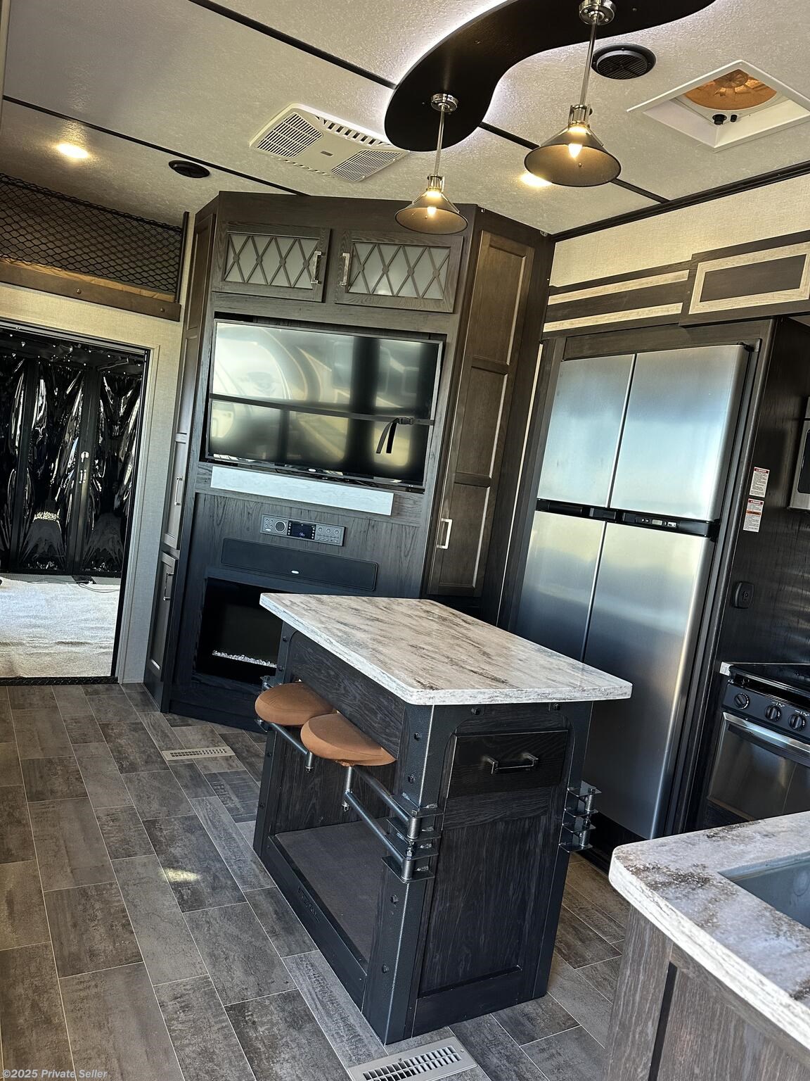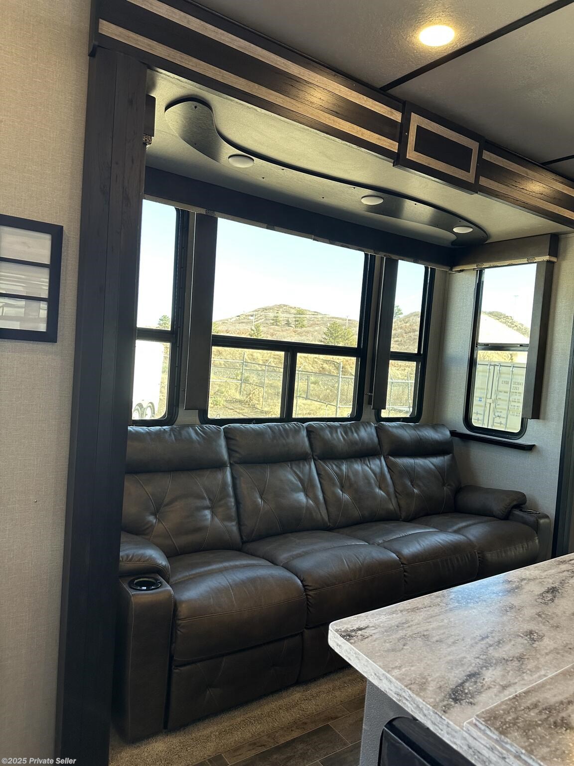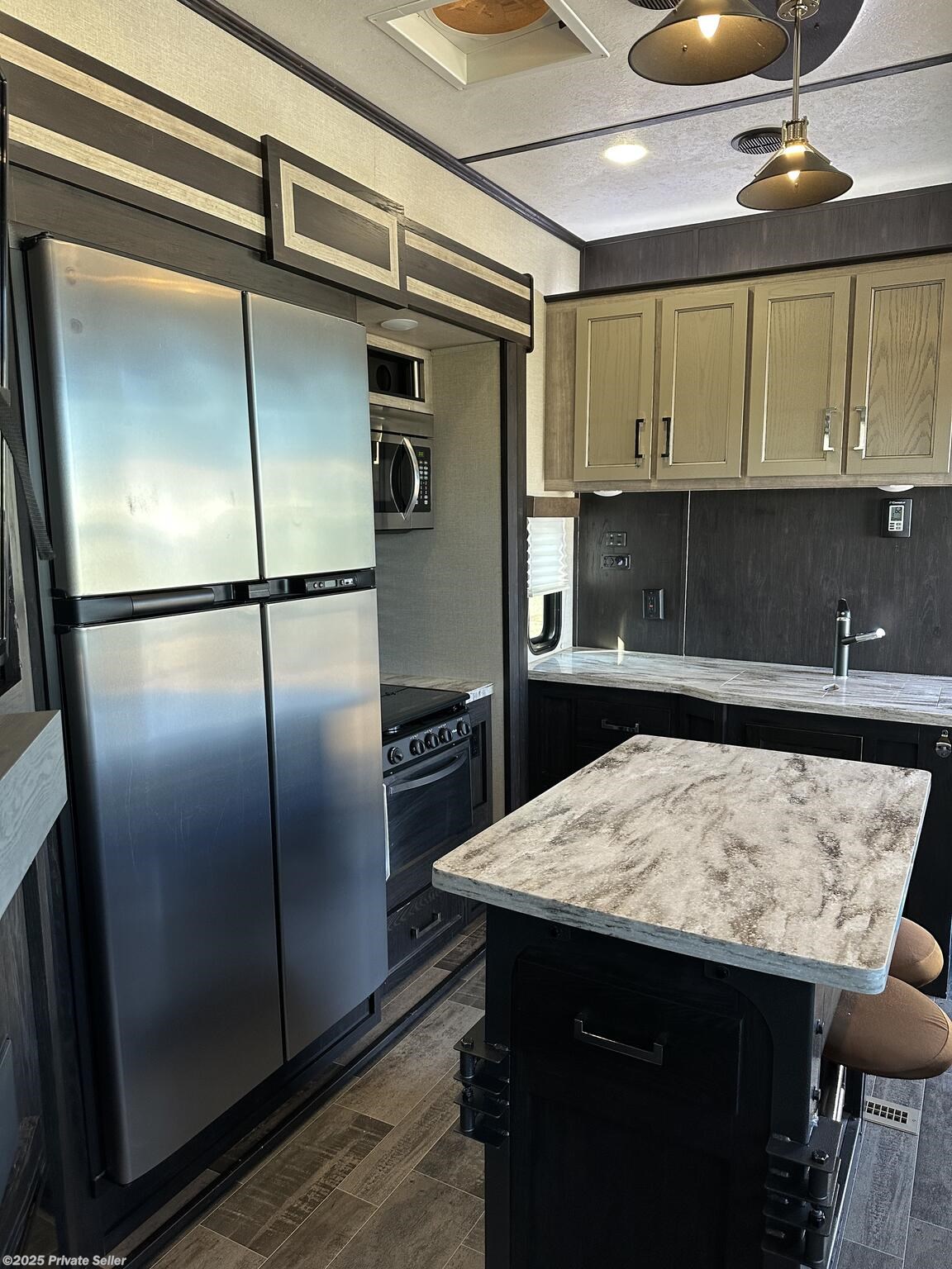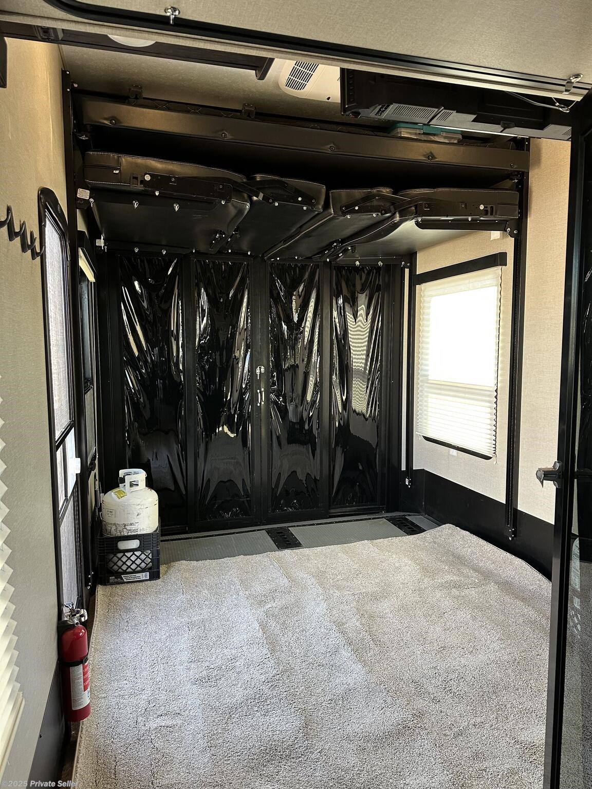 Keystone Fuzion is a versatile and robust toy hauler, designed to cater to the adventurous spirit of RV enthusiasts. This used model is a fifth-wheel toy hauler, offering a perfect blend of comfort, functionality, and ruggedness, making it ideal for those who love to travel with their toys, such as Side-by-side, ATVs or motorcycles. Its exterior is finished in a clean and classic black and grey, giving it a timeless and appealing look. The Keystone Fuzion is equipped with a range of features that enhance both its utility and comfort. Here are some of the standout features: - MORryde CRE3000 suspension system, which provides a smoother ride by reducing road shock. - 16-inch aluminum wheels that are both durable and stylish. - Crank-down spare tire for easy access and replacement. - Aluminum framing, which ensures a lightweight yet sturdy construction. - Hydraulic leveling system for easy setup and stability on uneven terrain. - allowing for off-grid adventures. - Utility center for convenient access to essential hookups. - 50-amp service cord and 100-amp converter, ensuring ample power supply for all your needs. - 3 15,000 BTU air conditioners and a 35,000 BTU furnace, providing comfort in any climate. - Outdoor shower, perfect for rinsing off after a day of adventure. - LED lighting throughout, offering energy-efficient illumination. - Roller shades for privacy and light control. - Kitchen amenities include a sink cover, refrigerator, 22-inch oven, and microwave, making meal preparation a breeze. - Shower skylight and power vent in the bathroom for added ventilation and natural light. The garage area of the Fuzion is particularly noteworthy, designed to accommodate your recreational vehicles and gear: - Ducted AC and heat in the garage, ensuring comfort for both guests and equipment. - Garage TV for entertainment on the go. - 8-foot ramp door for easy loading and unloading of toys. - Garage screen, allowing you to enjoy the outdoors while keeping insects at bay. - Tuff-Ply flooring, providing a durable and easy-to-clean surface. Whether you're heading to the mountains, beach, or desert, this toy hauler is ready to take you there in style and comfort. Text Jay at 303-886-1660 (tel:303-886-1660). Thanks for looking.