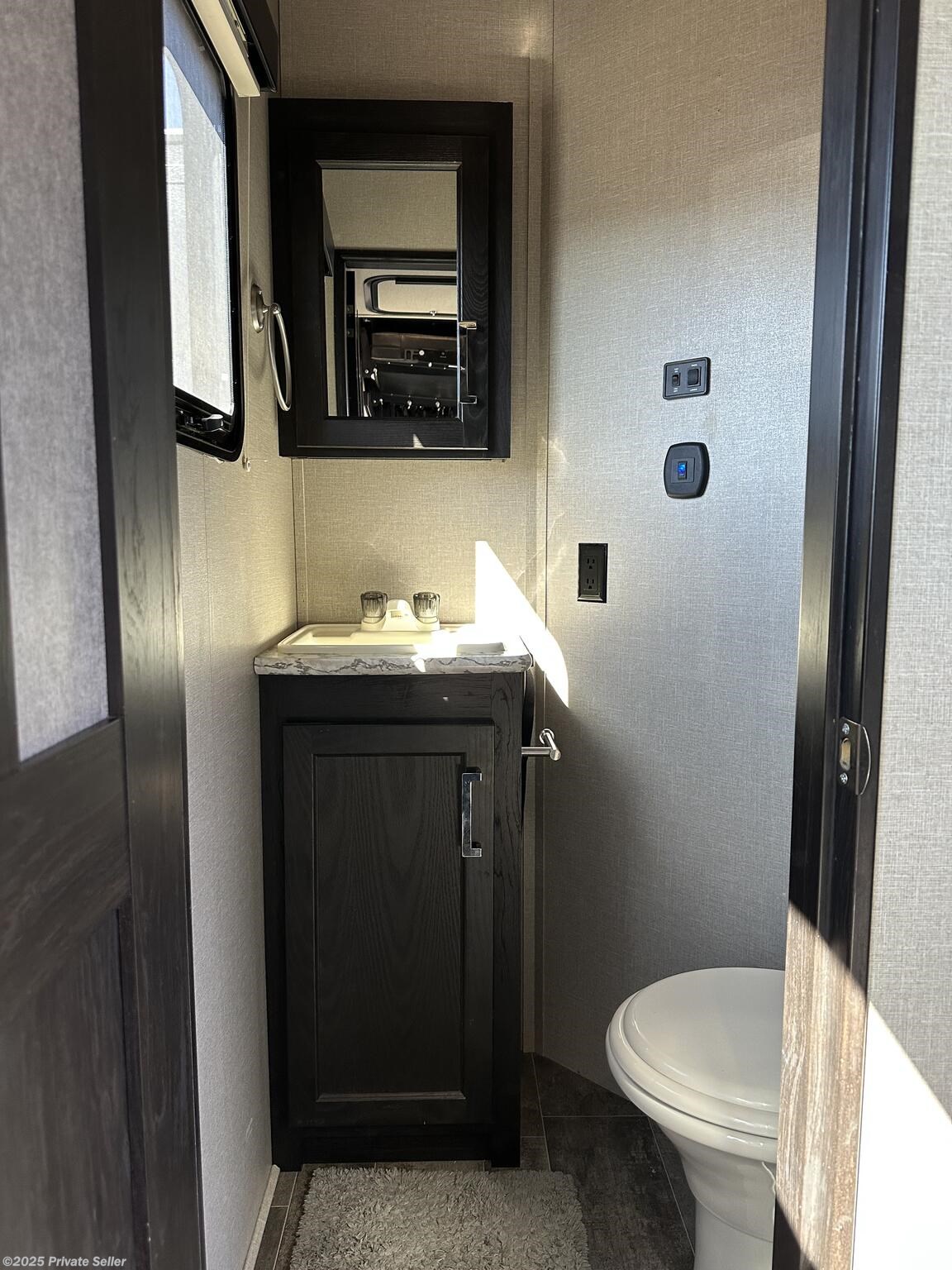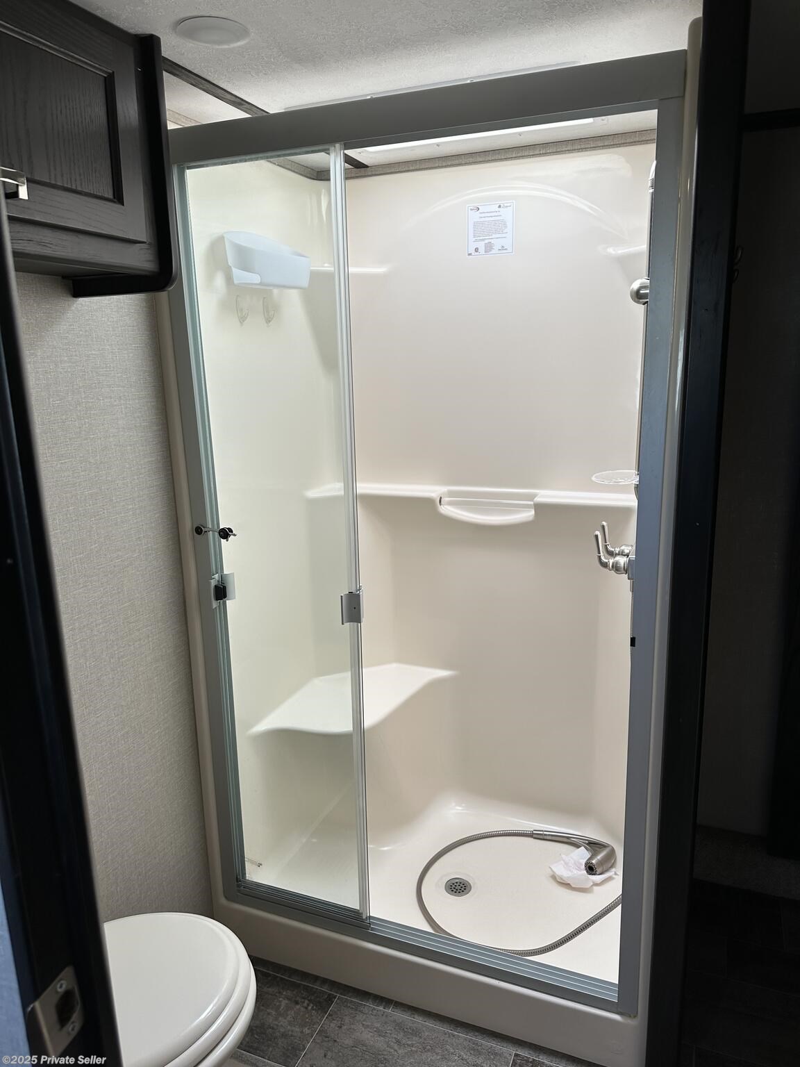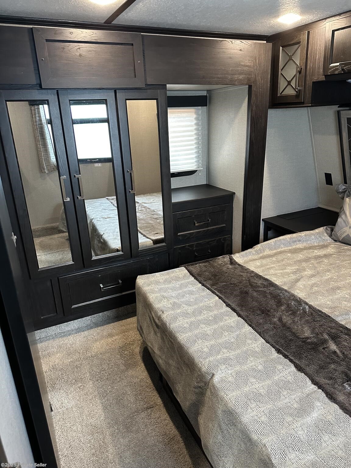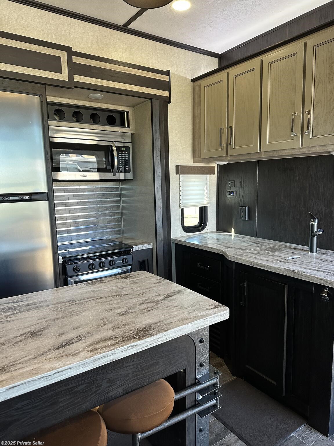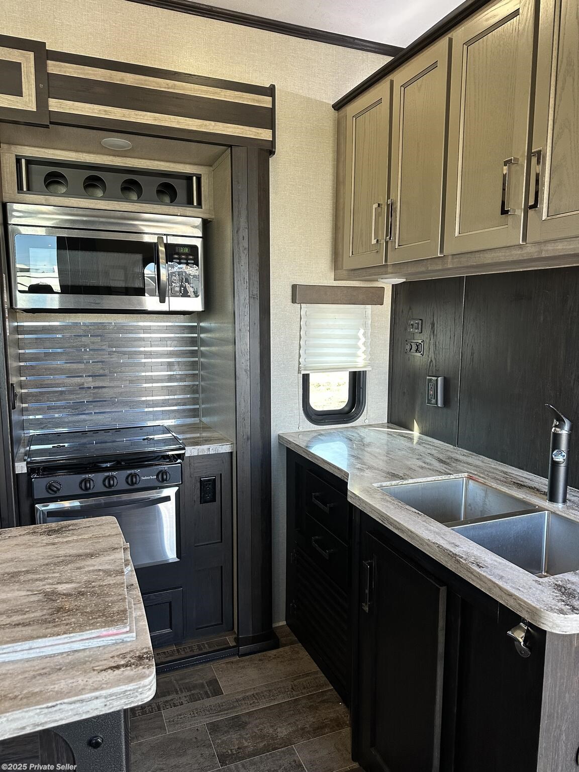 Keystone Fuzion is a versatile and robust toy hauler, designed to cater to the adventurous spirit of RV enthusiasts. This used model is a fifth-wheel toy hauler, offering a perfect blend of comfort, functionality, and ruggedness, making it ideal for those who love to travel with their toys, such as Side-by-side, ATVs or motorcycles. Its exterior is finished in a clean and classic black and grey, giving it a timeless and appealing look. The Keystone Fuzion is equipped with a range of features that enhance both its utility and comfort. Here are some of the standout features: - MORryde CRE3000 suspension system, which provides a smoother ride by reducing road shock. - 16-inch aluminum wheels that are both durable and stylish. - Crank-down spare tire for easy access and replacement. - Aluminum framing, which ensures a lightweight yet sturdy construction. - Hydraulic leveling system for easy setup and stability on uneven terrain. - allowing for off-grid adventures. - Utility center for convenient access to essential hookups. - 50-amp service cord and 100-amp converter, ensuring ample power supply for all your needs. - 3 15,000 BTU air conditioners and a 35,000 BTU furnace, providing comfort in any climate. - Outdoor shower, perfect for rinsing off after a day of adventure. - LED lighting throughout, offering energy-efficient illumination. - Roller shades for privacy and light control. - Kitchen amenities include a sink cover, refrigerator, 22-inch oven, and microwave, making meal preparation a breeze. - Shower skylight and power vent in the bathroom for added ventilation and natural light. The garage area of the Fuzion is particularly noteworthy, designed to accommodate your recreational vehicles and gear: - Ducted AC and heat in the garage, ensuring comfort for both guests and equipment. - Garage TV for entertainment on the go. - 8-foot ramp door for easy loading and unloading of toys. - Garage screen, allowing you to enjoy the outdoors while keeping insects at bay. - Tuff-Ply flooring, providing a durable and easy-to-clean surface. Whether you're heading to the mountains, beach, or desert, this toy hauler is ready to take you there in style and comfort. Text Jay at 303-886-1660 (tel:303-886-1660). Thanks for looking.