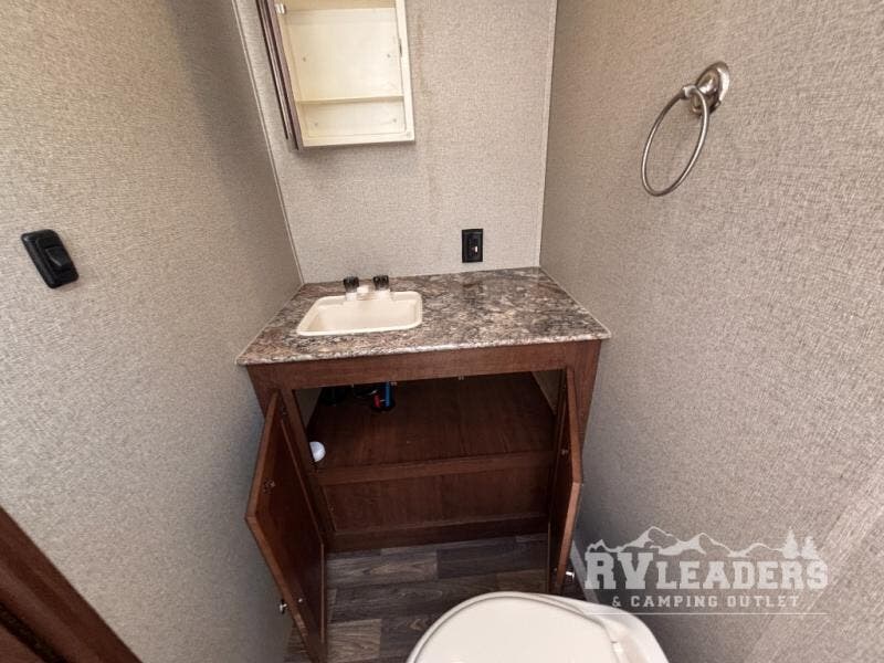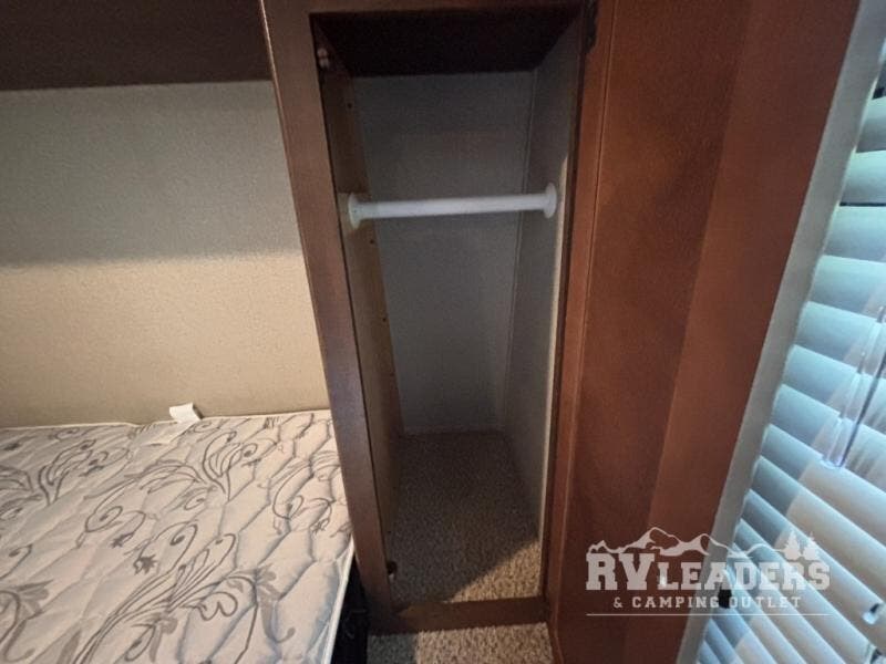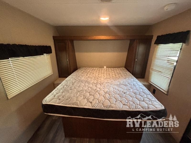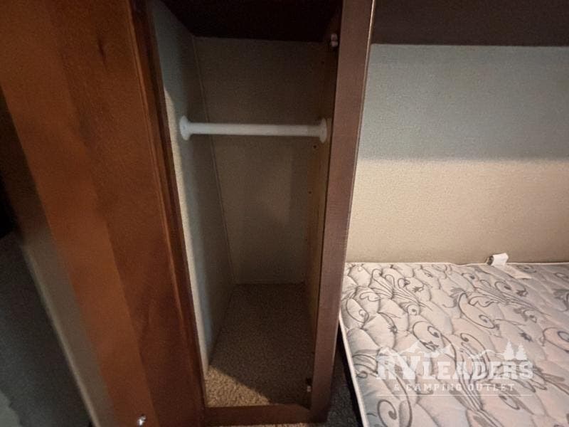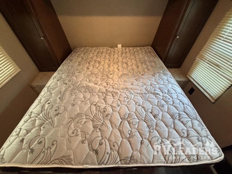 Enjoy the space you find inside this unit with a queen bed including dual closets, plus overhead storage as well. Beneath the front bed there is a spacious pass-through storage compartment for all of your outdoor camping gear to be neatly stowed away.