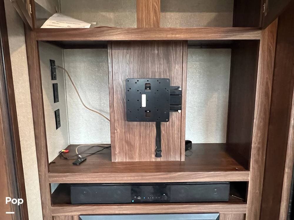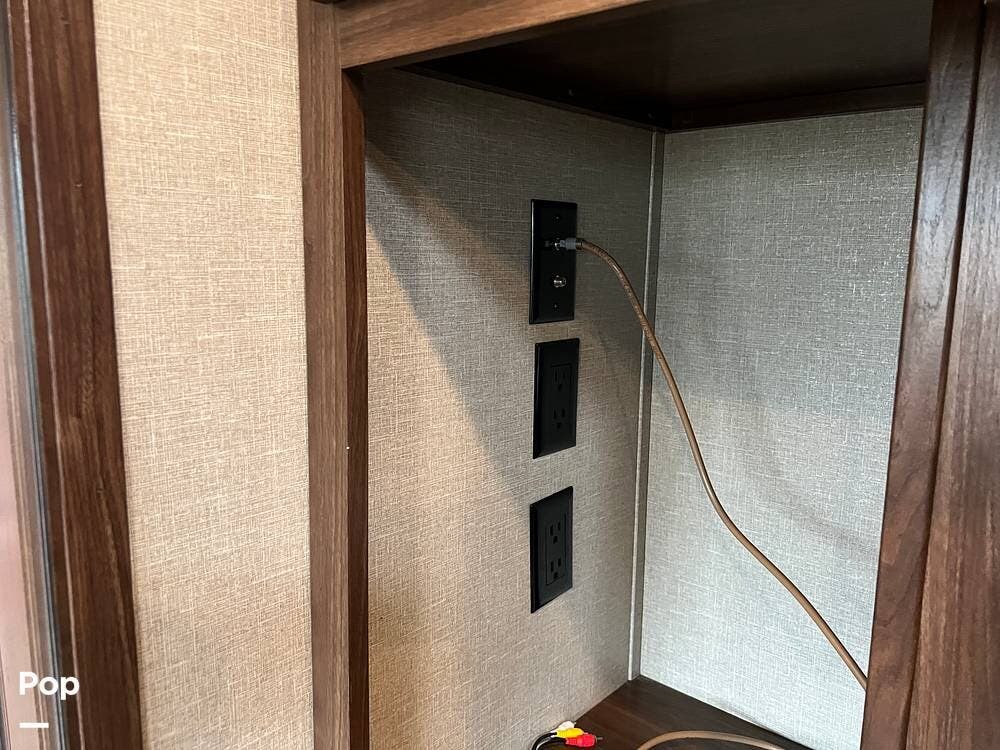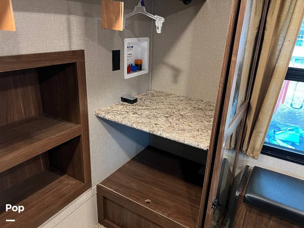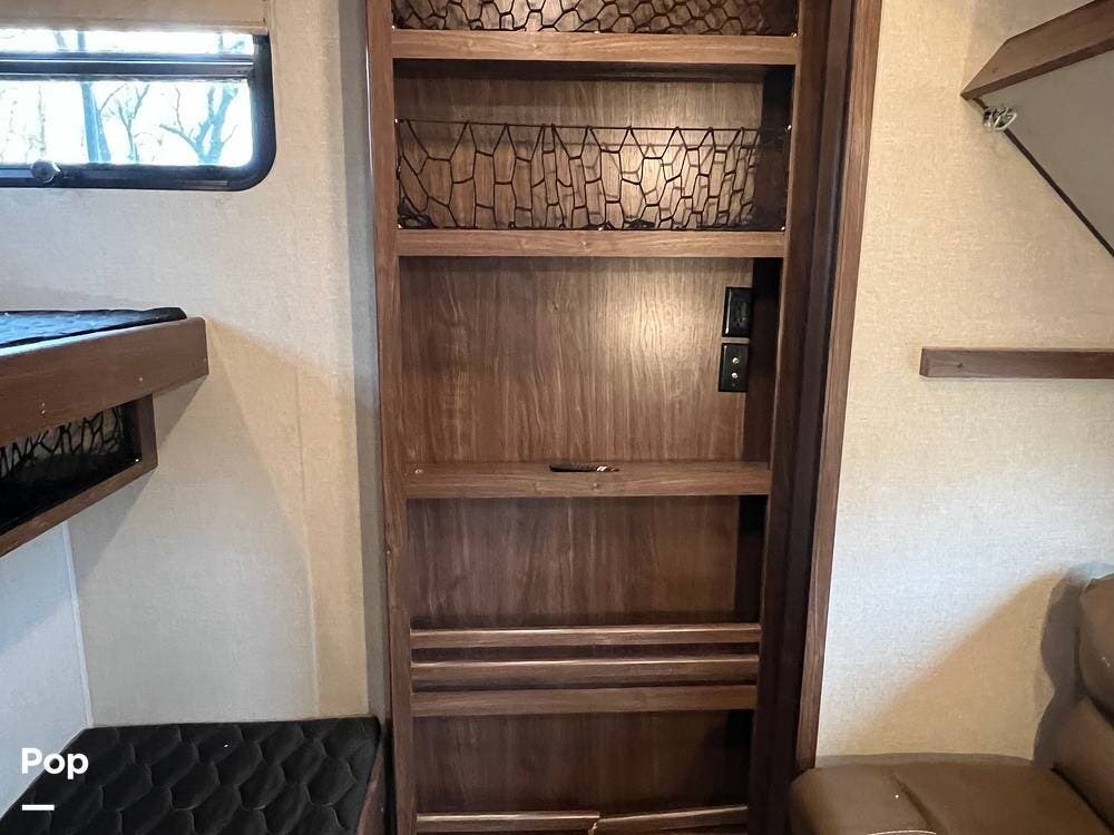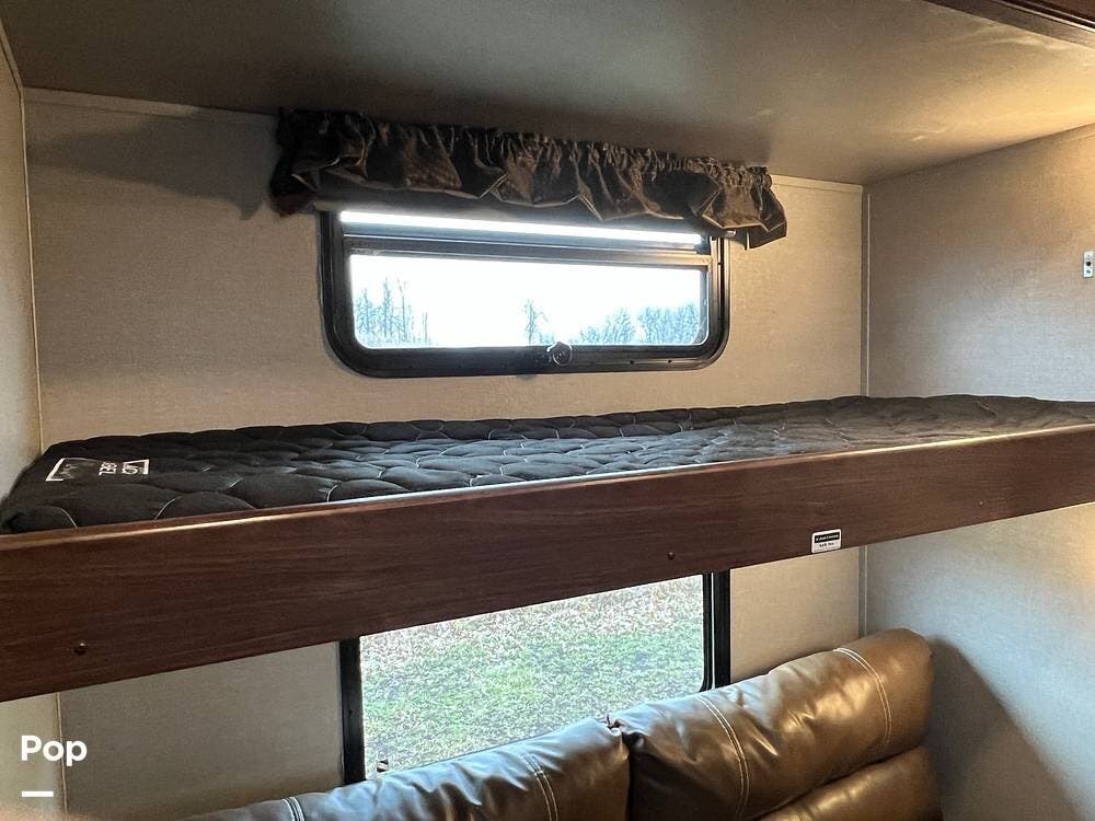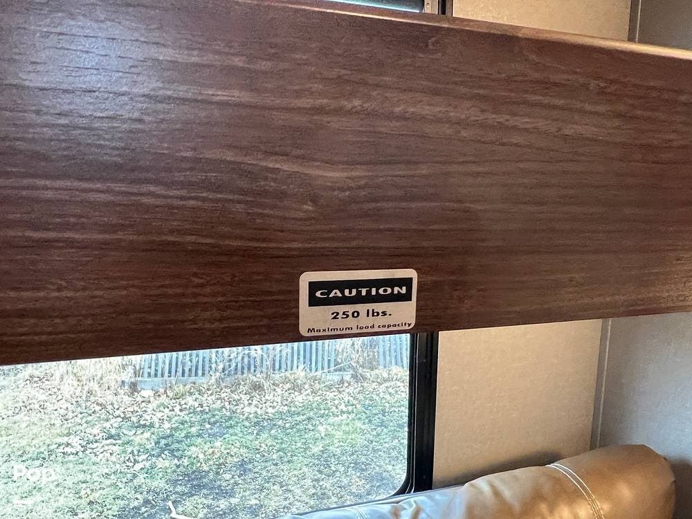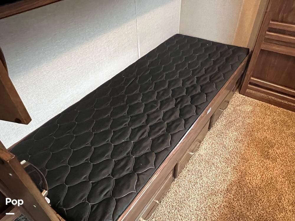 To the rear of the coach, the dedicated bunkhouse makes this floor plan perfect for families or those who frequently host guests. It includes multiple sleeping areas, including bunks and a sleeper sofa, along with built-in drawers, cabinets, and a space for a television or gaming setup. This private room creates a perfect hideaway for kids, teens, or visitors who appreciate having their own space within the unit.