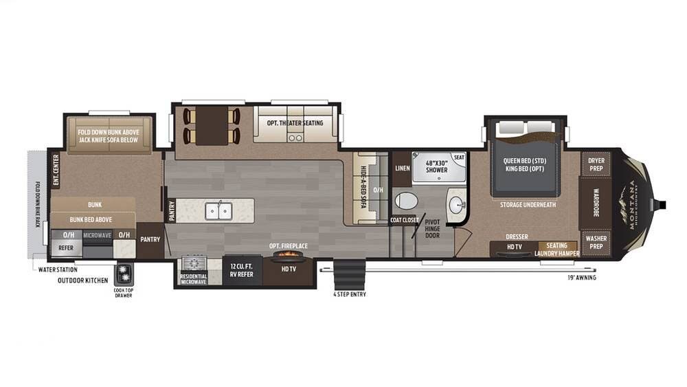 This 2017 Montana High Country 340BH by Keystone is a well-crafted fifth wheel that blends durable construction with residential comfort.