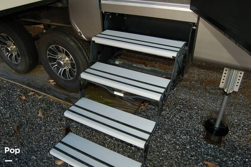 This Fifth Wheel is the home away from home. Luxury cannot even begin to describe this RV. As soon as you step inside you are just in awe at how it looks like an apartment instead of a camper. From the stainless steel full size fridge to the king size bed then the heated recliners that are in front of the TV and electric fireplace. The sofa makes out into a queen bed so there is plenty of sleeping space.